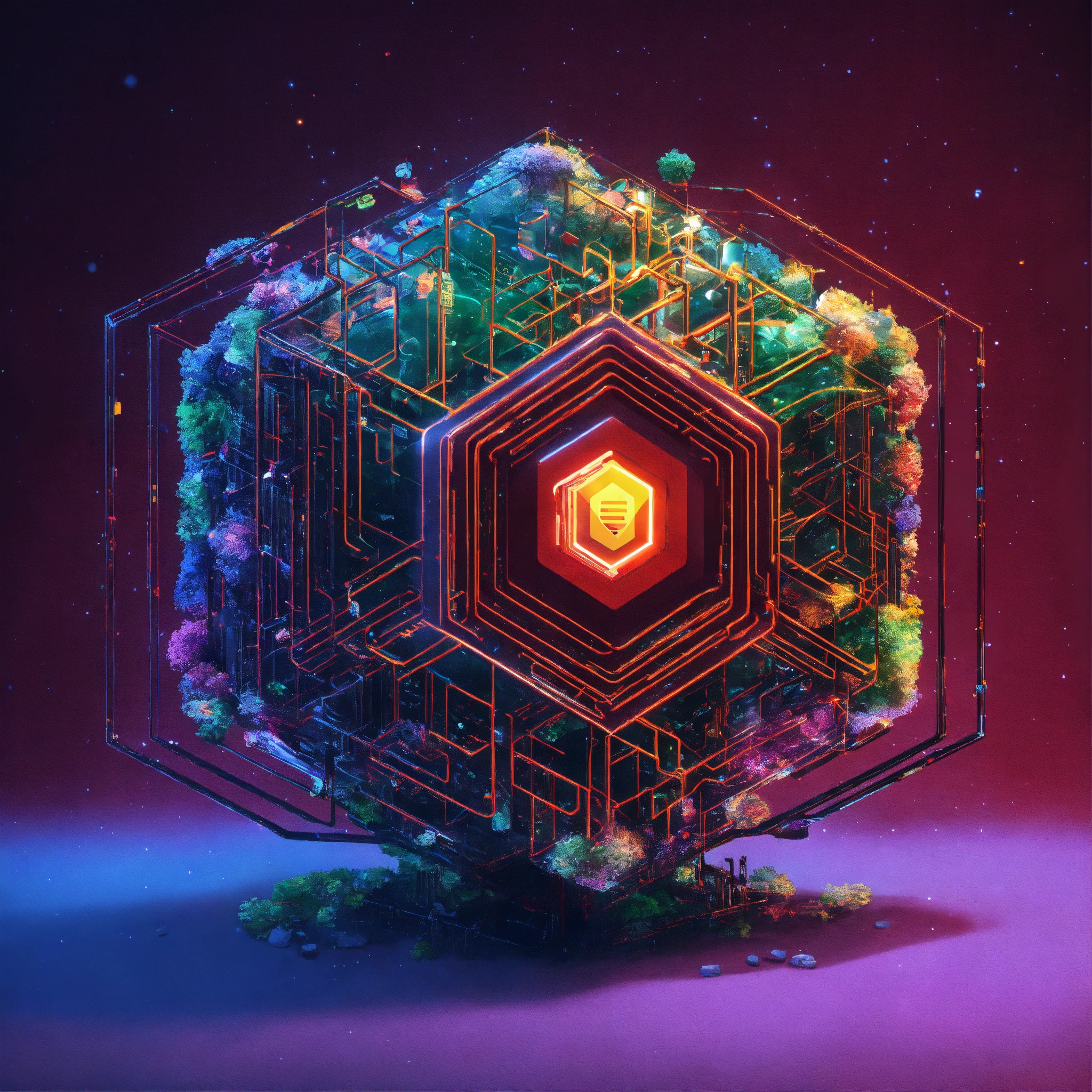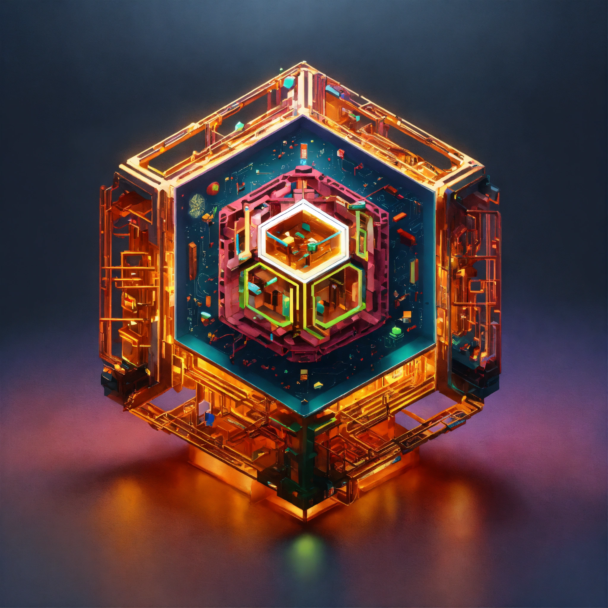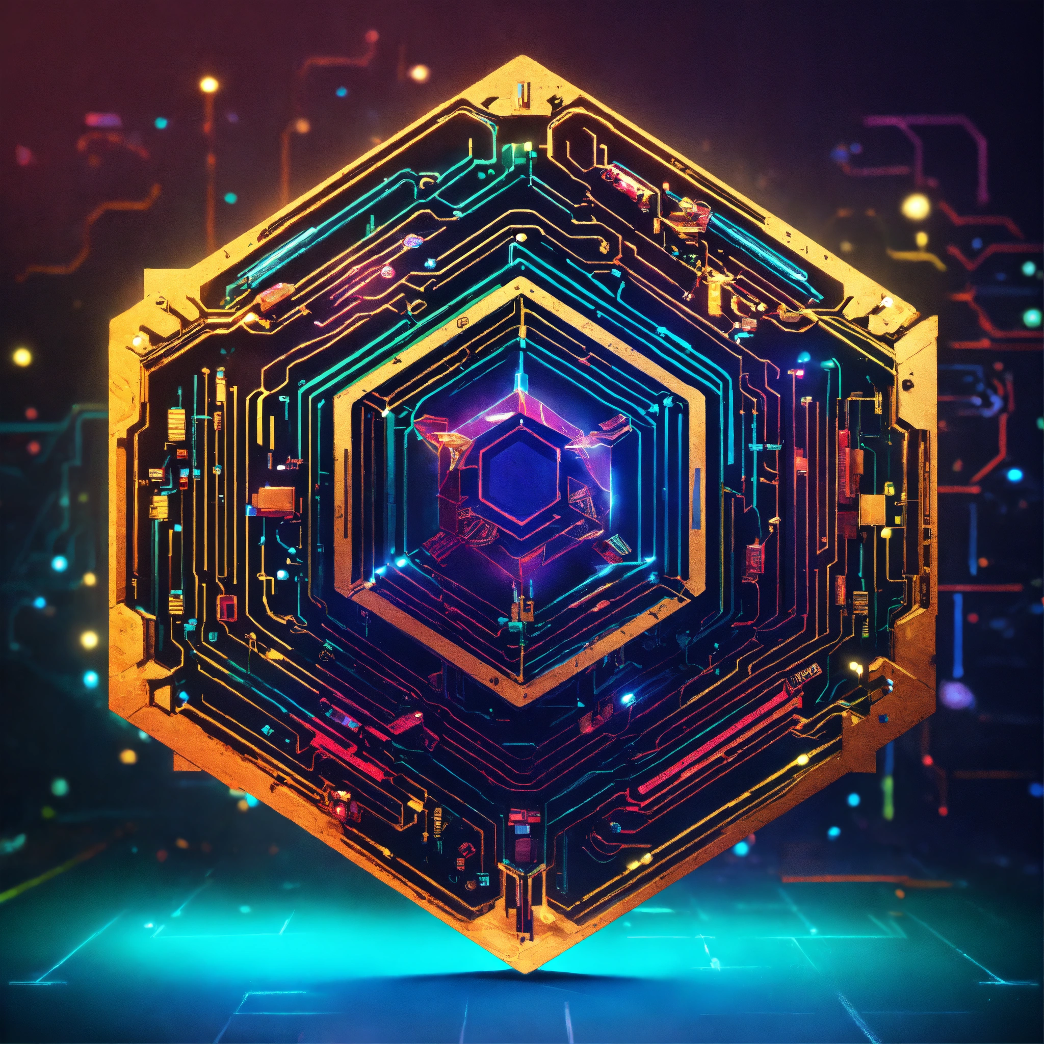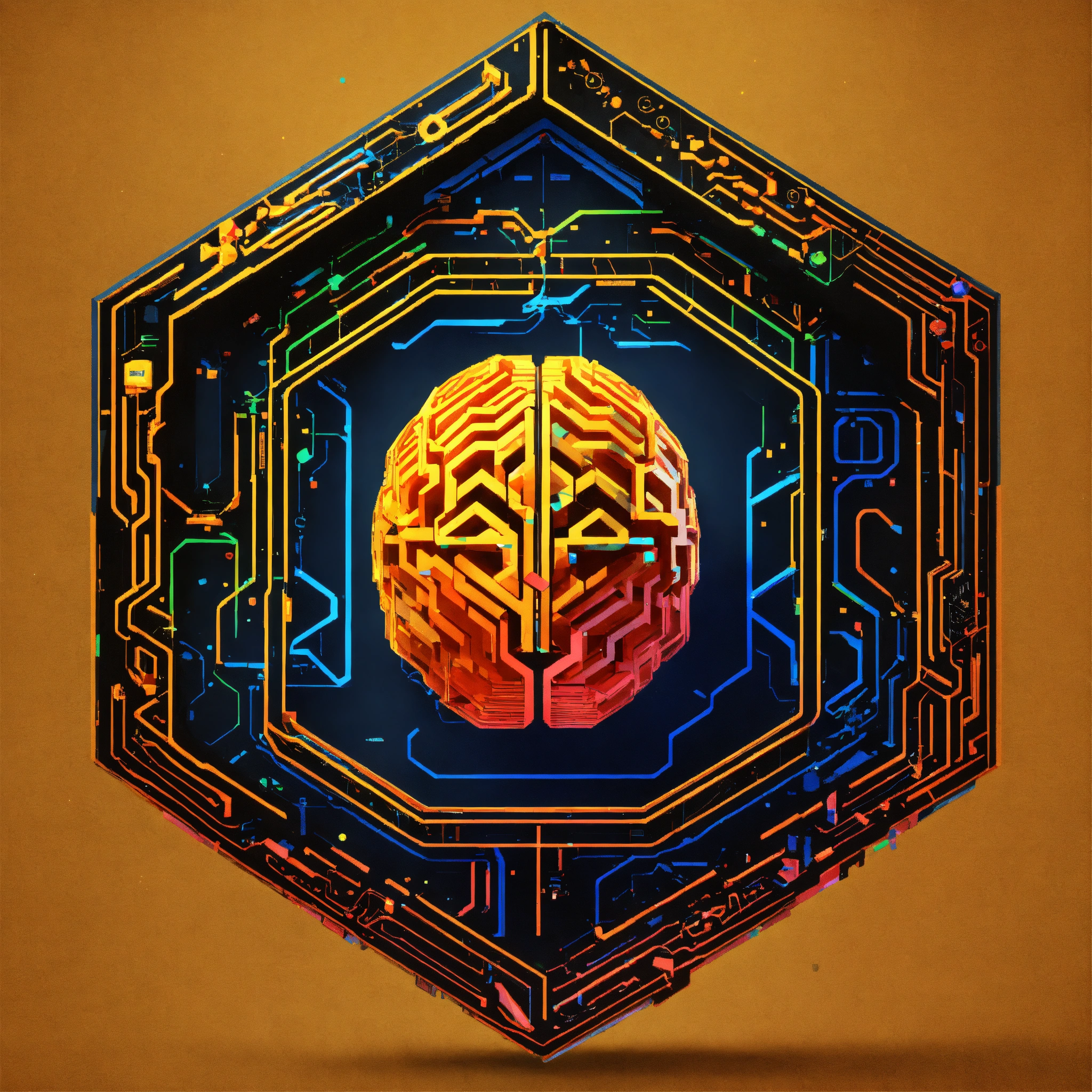 Logotipo enmarcado en un hexagono 3d, de cerebro digital, con circuitos de microprocesador quantico, y componentes orgánicos, sofisticación, corporativo moderno, sin texto, moderno, arte vectorial, logo, icono de cerebro, ciberspace, google, seo.