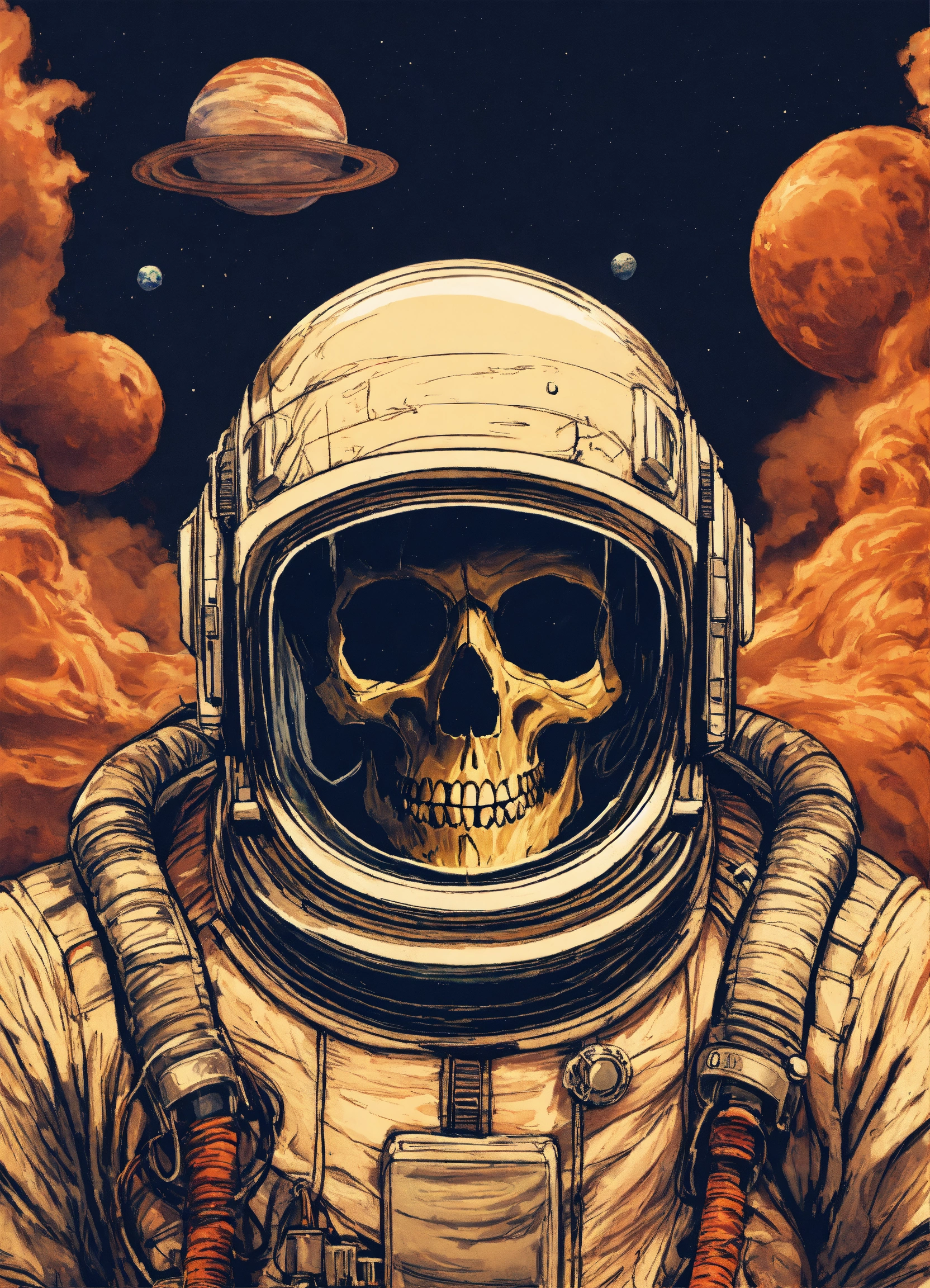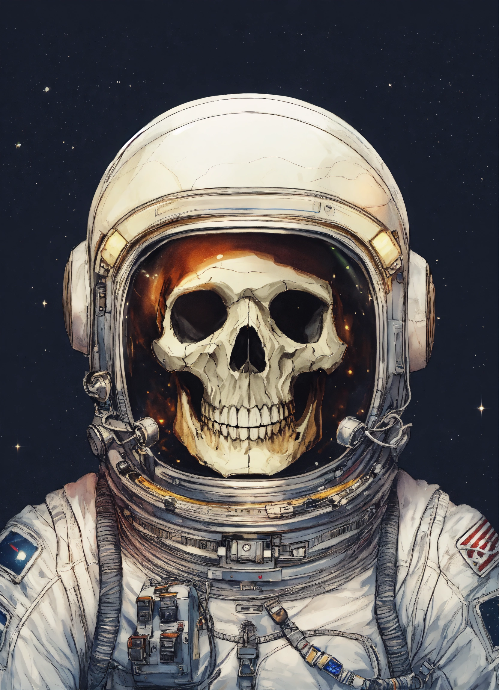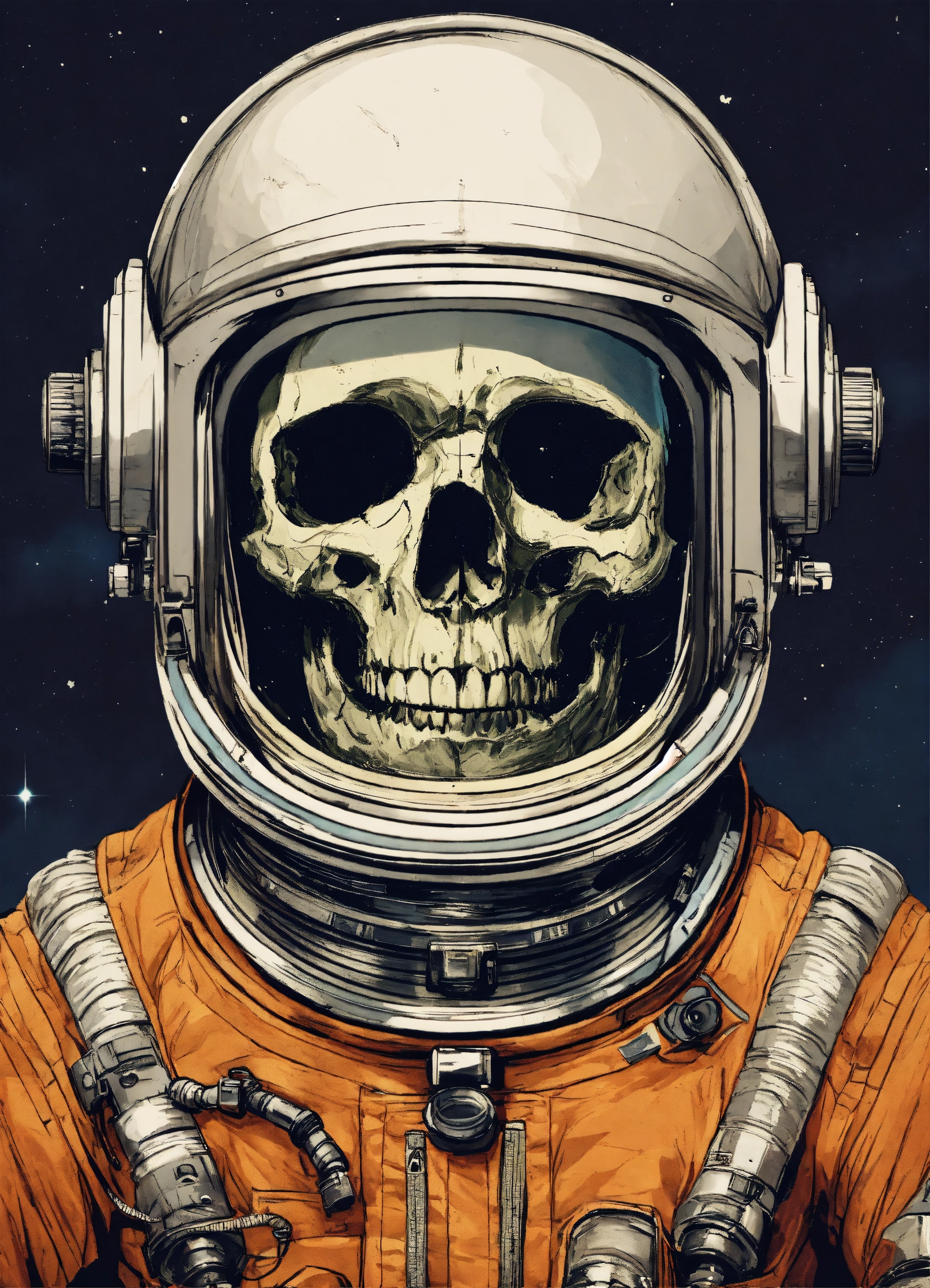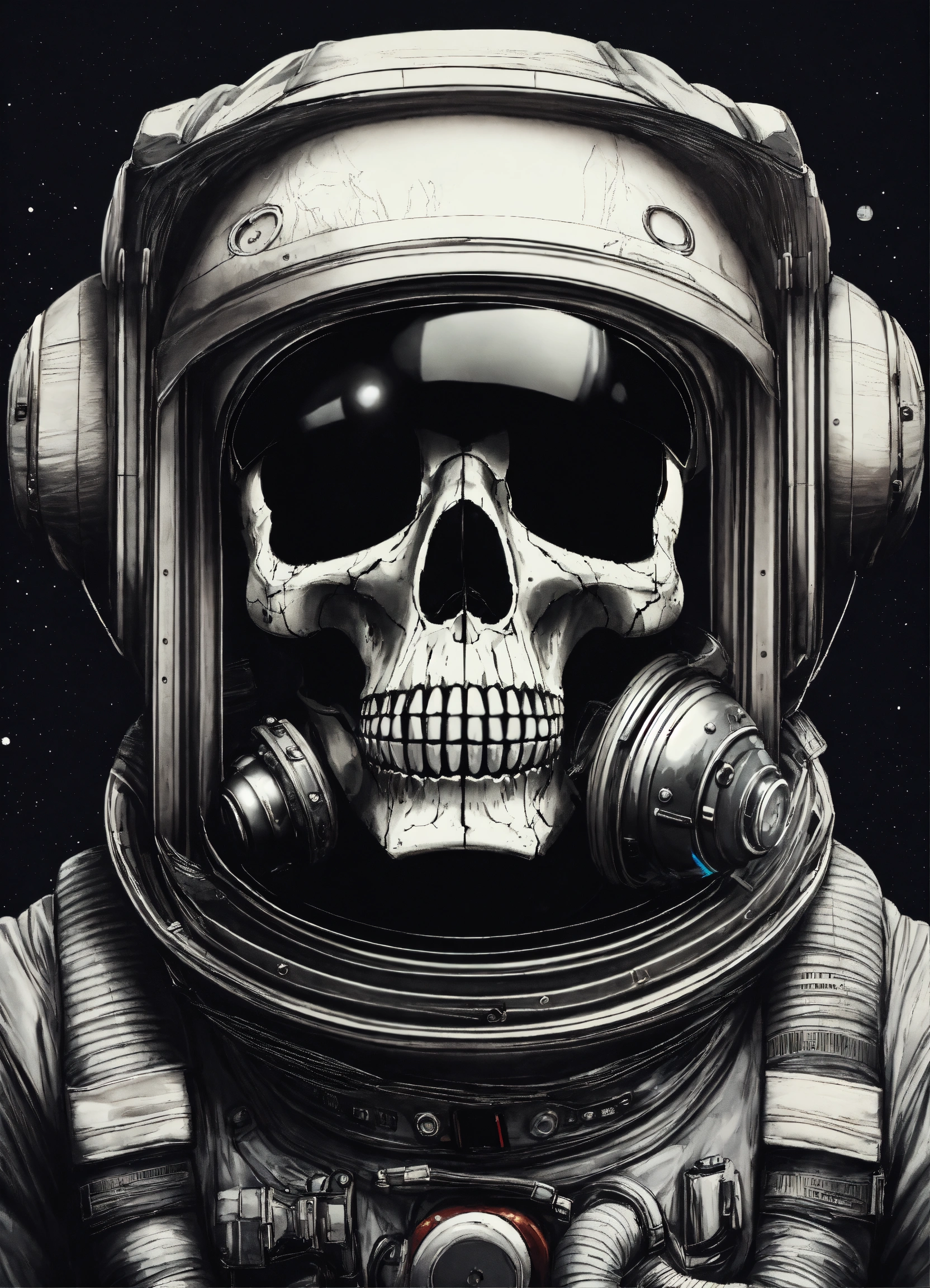 Skull inside astronaut helmet