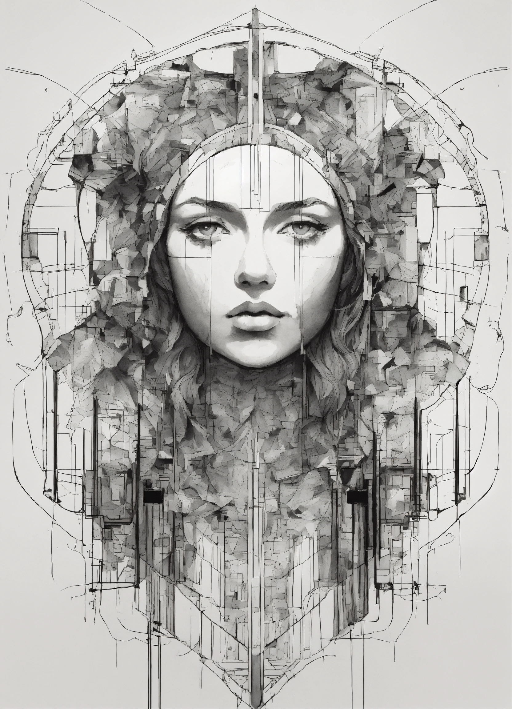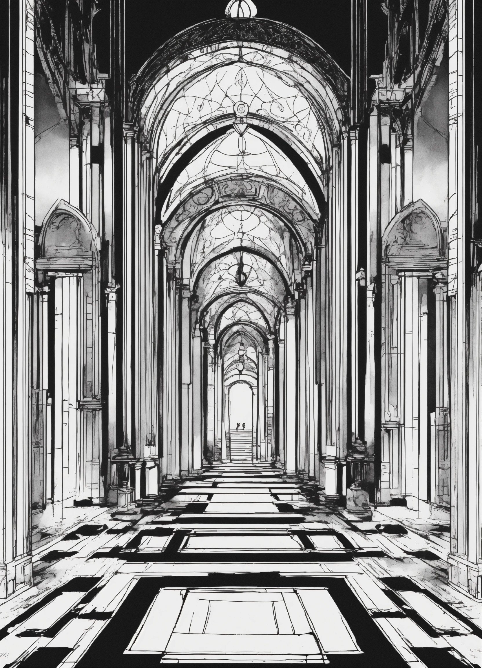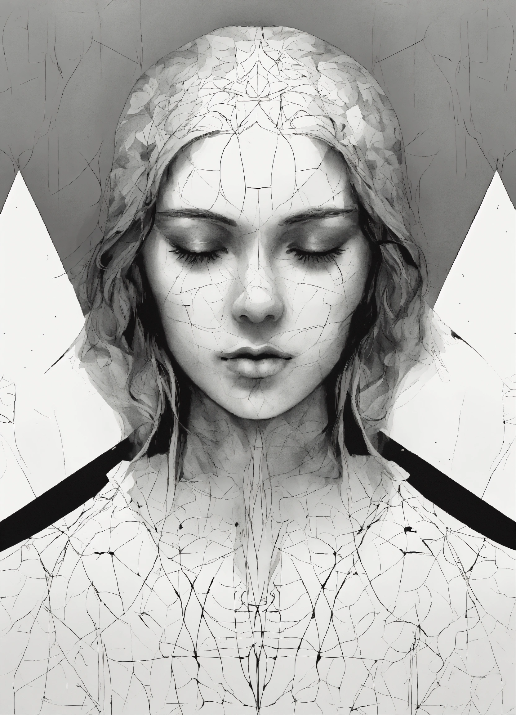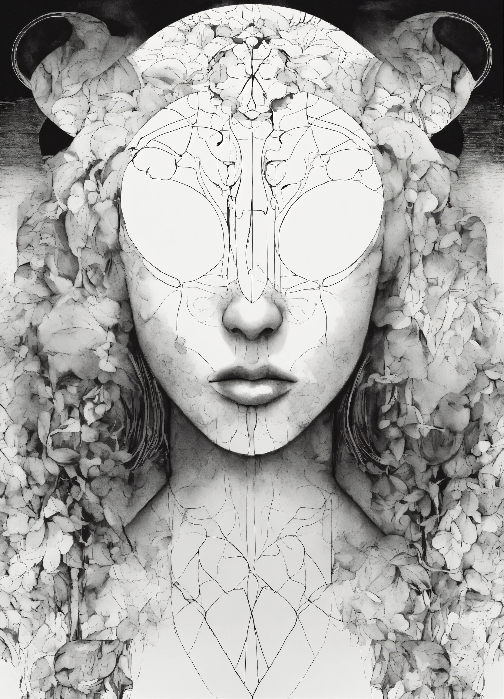 Symmetry, loneliness and regret, black and white, white background, no background, ink fine line art stylized, vector