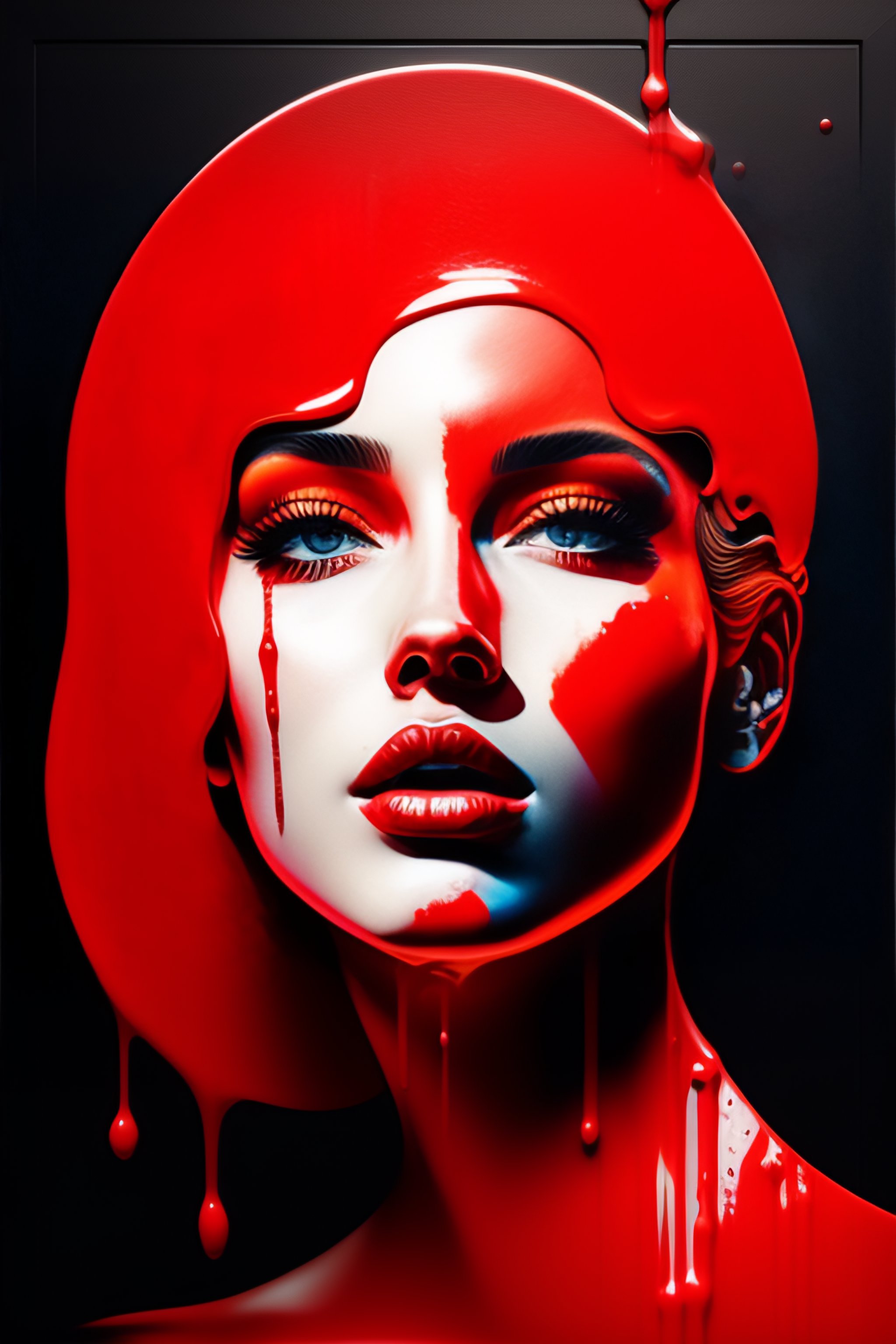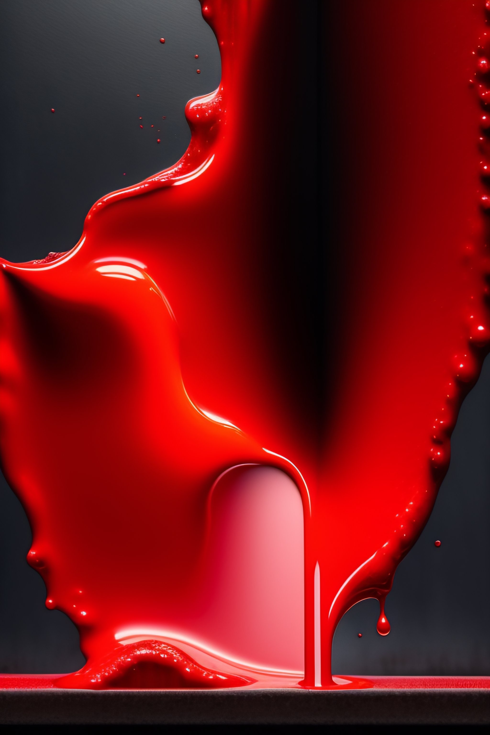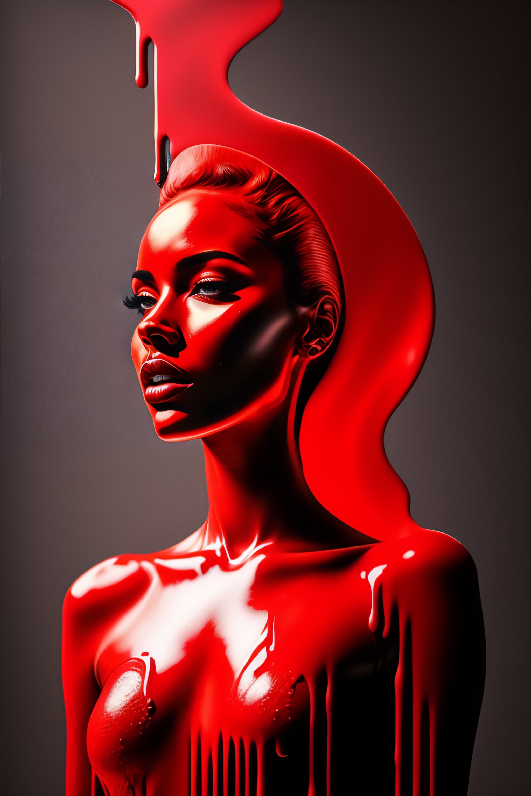 Abstract dripping red paint, the shape of a female human, realistic, high detail, on concrete background