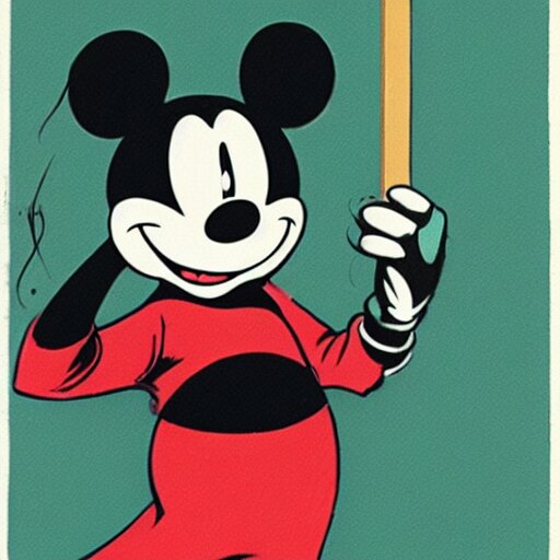 Micky mouse stands over the body of goofy smoking a cigarette and holding a bat, sin city, frank miller, concept art, high detail, professional lighting