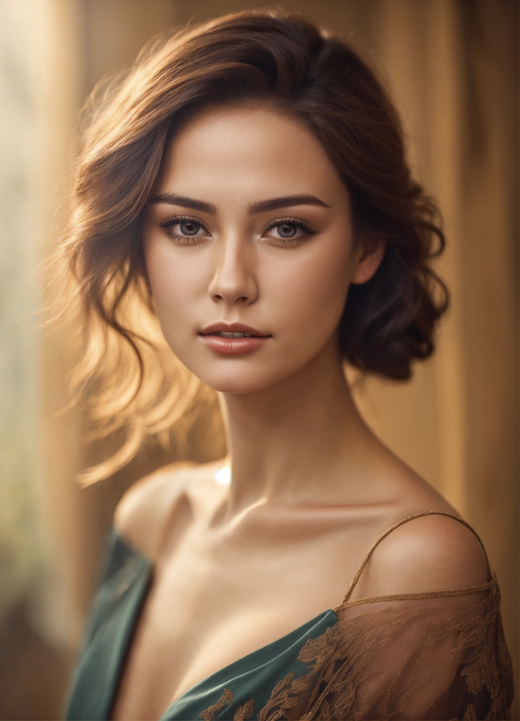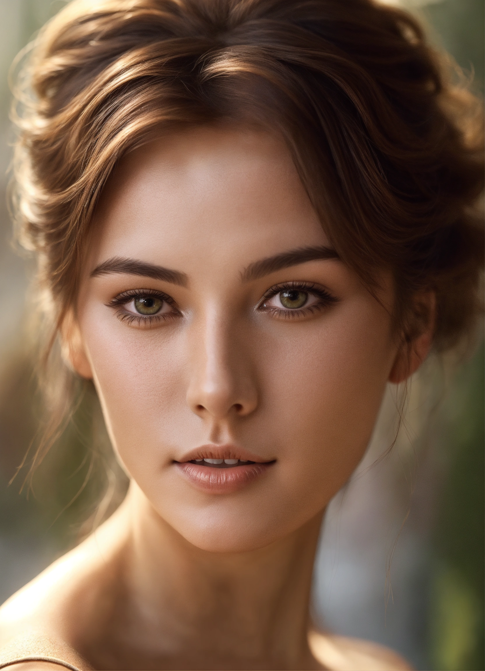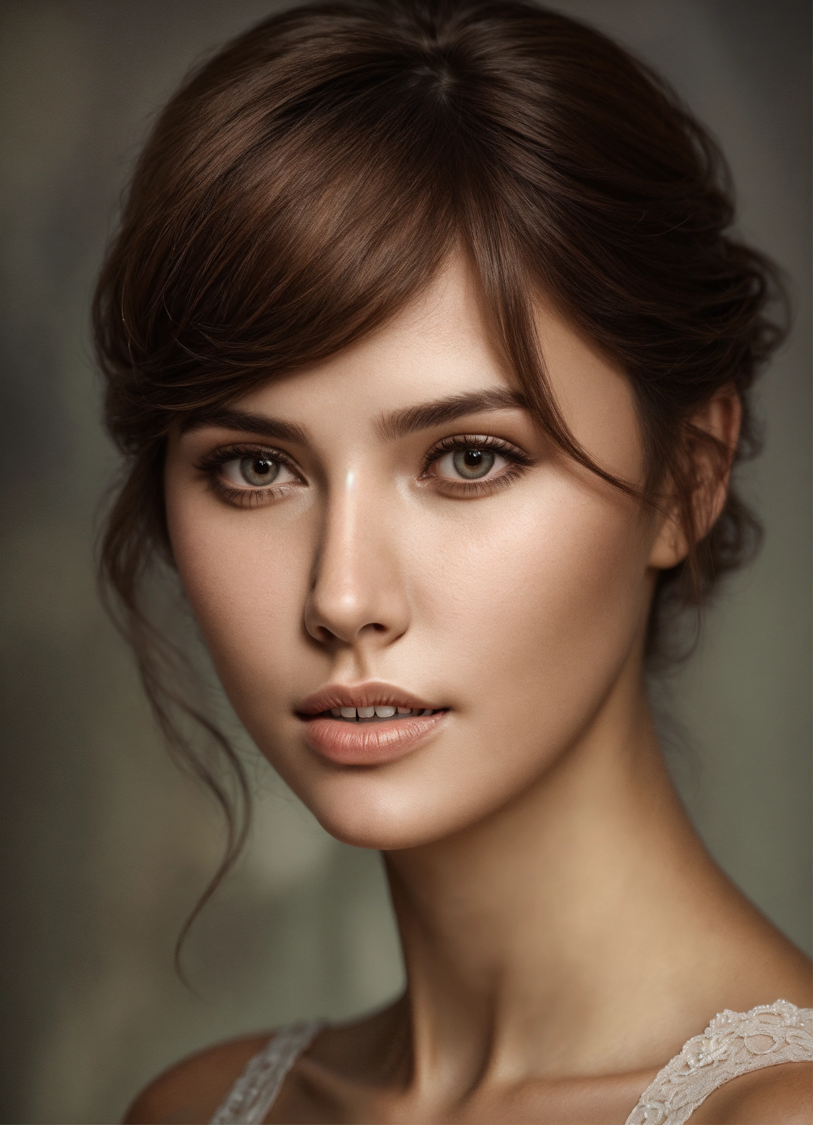 Very thin beautiful woman with brown hair and elegant hairstyle, clear facial features, detailed image, realistic, real, realistic facial features, realistic photography