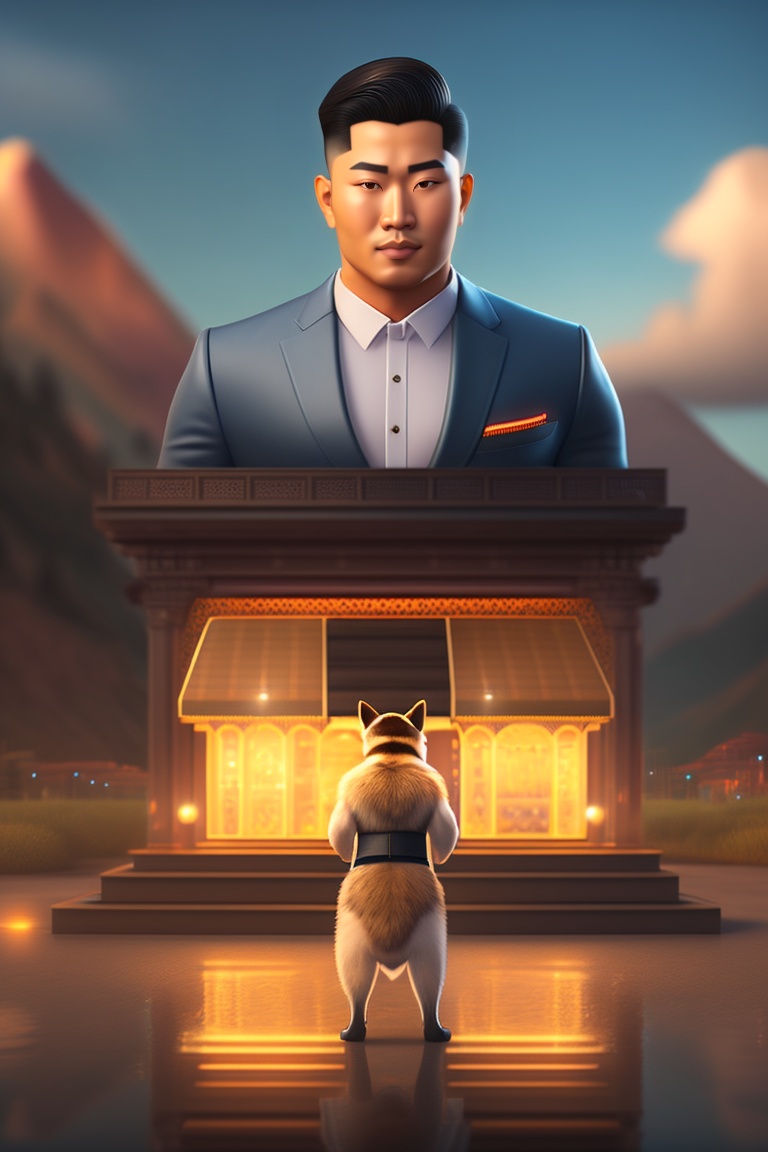 A man standing in front, million of likes, houdini sim, half asian, tech face, by malcom howie, fortninte, hurt, ads, ese, athmospheric, assamese, shiba inu face, higly, luminist, cinematography, no frame, latino