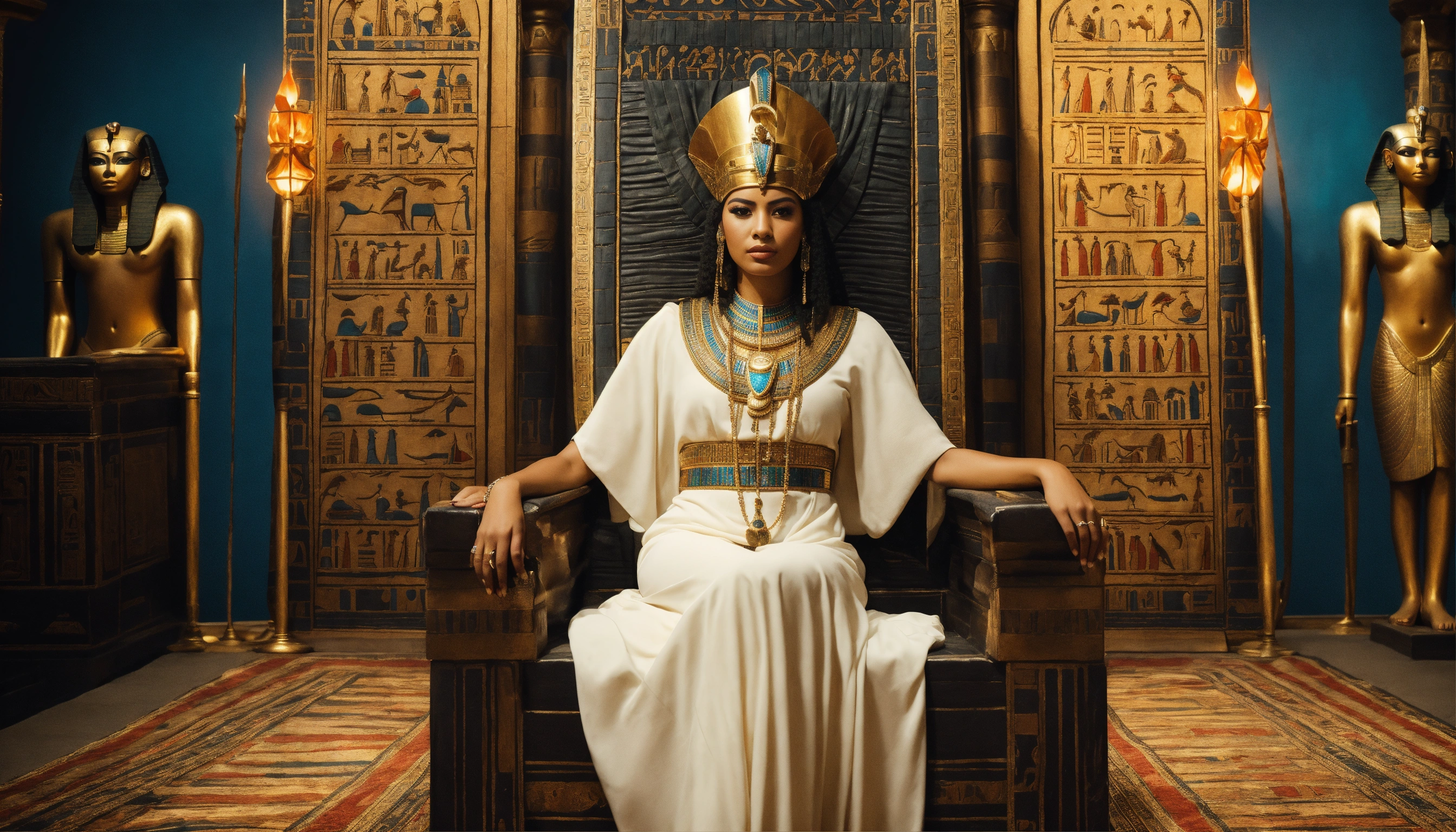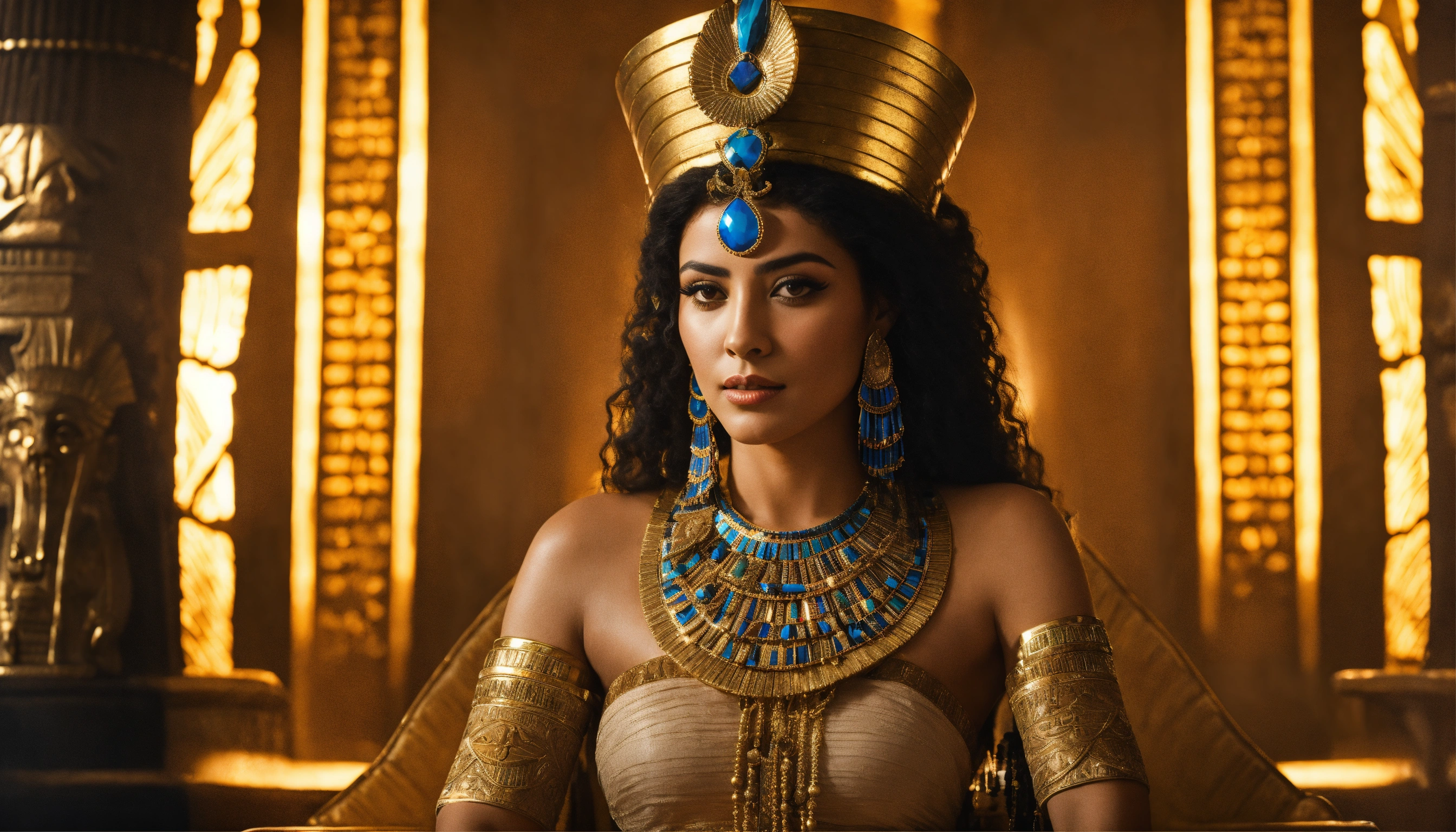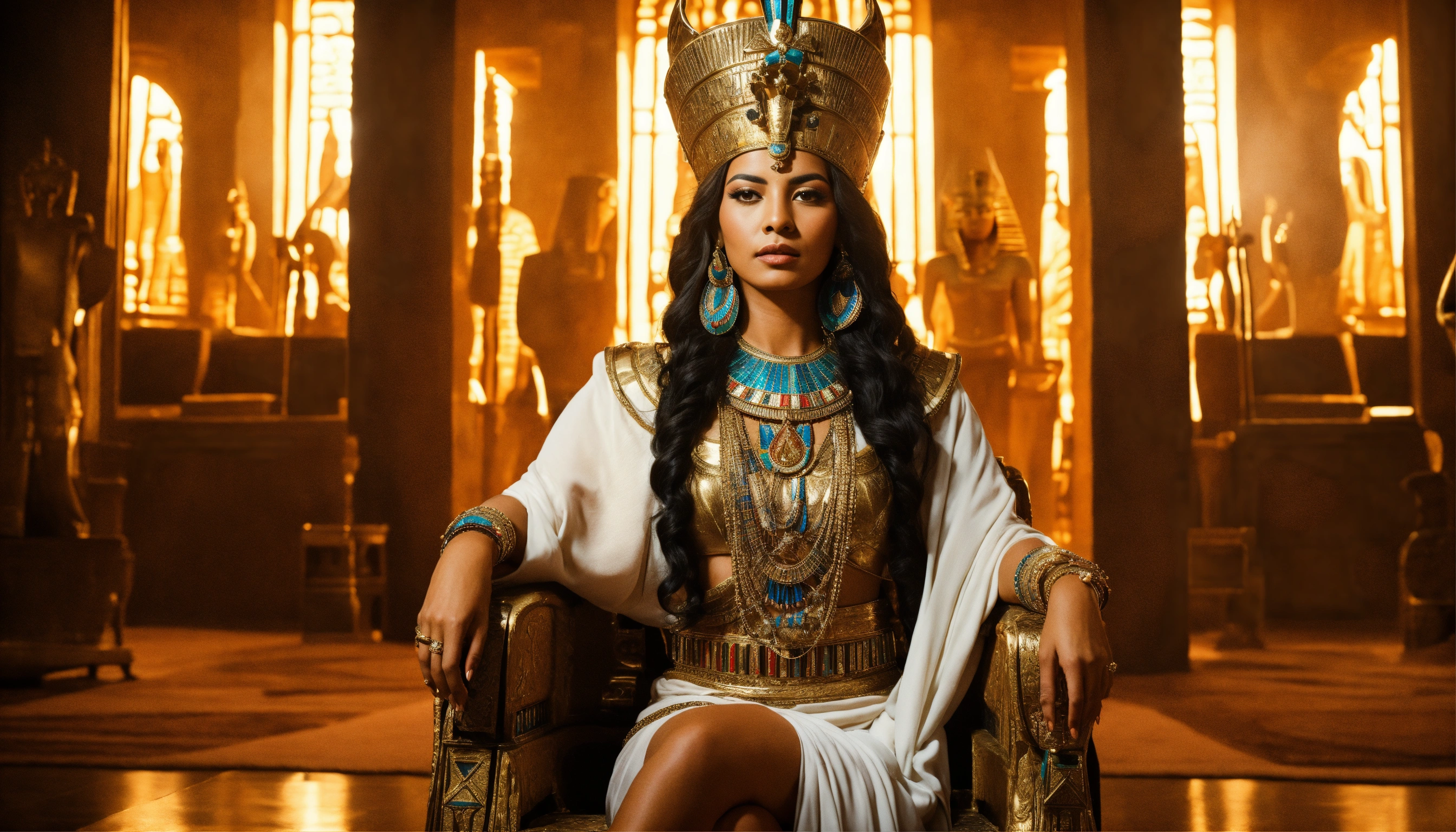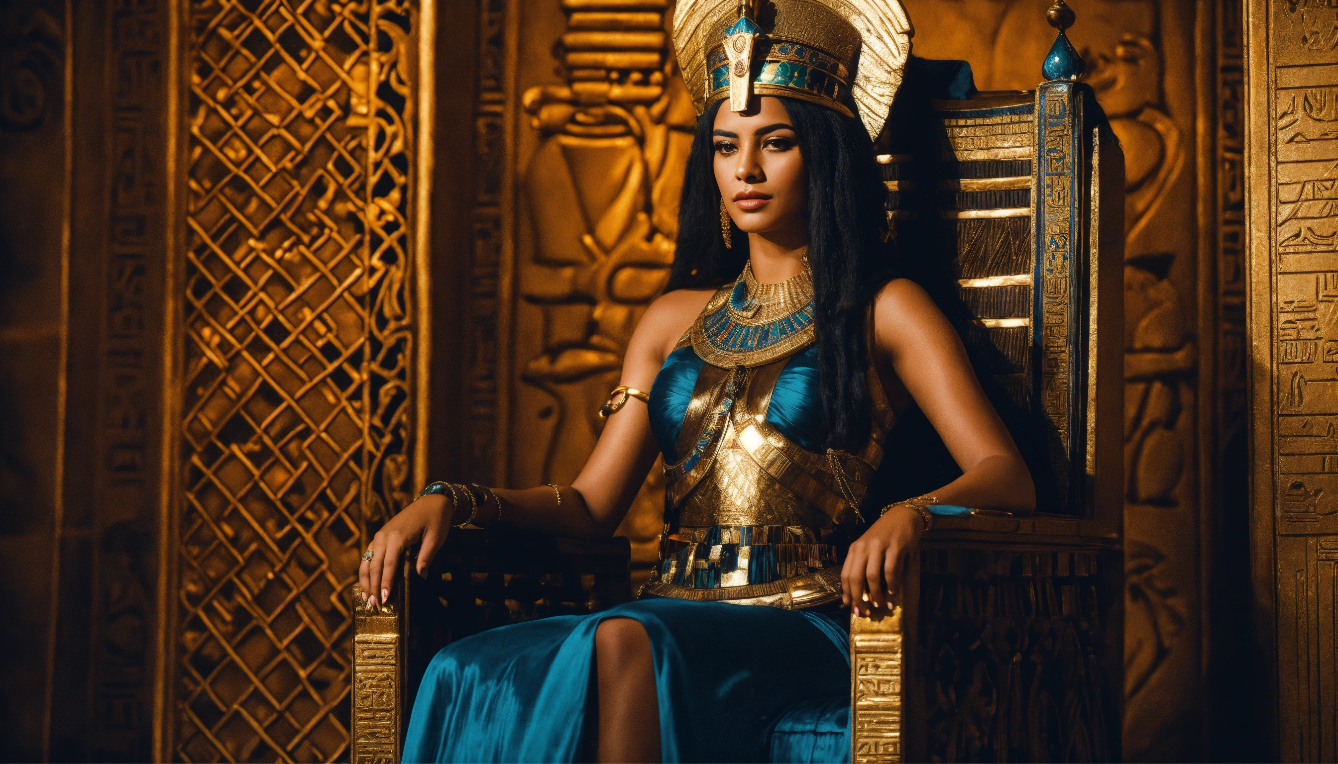 Portrait of atractive egyptian queen in the throne