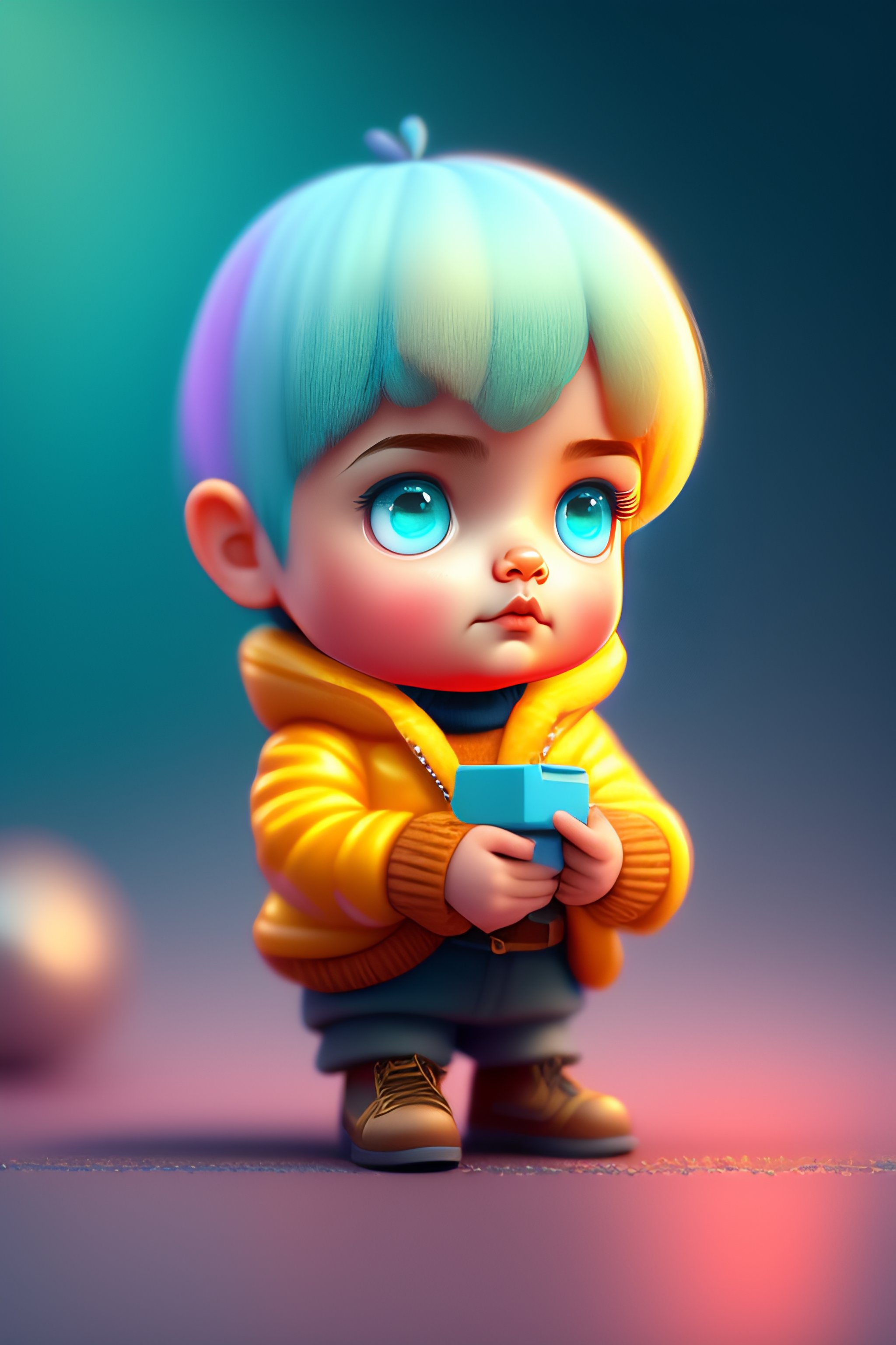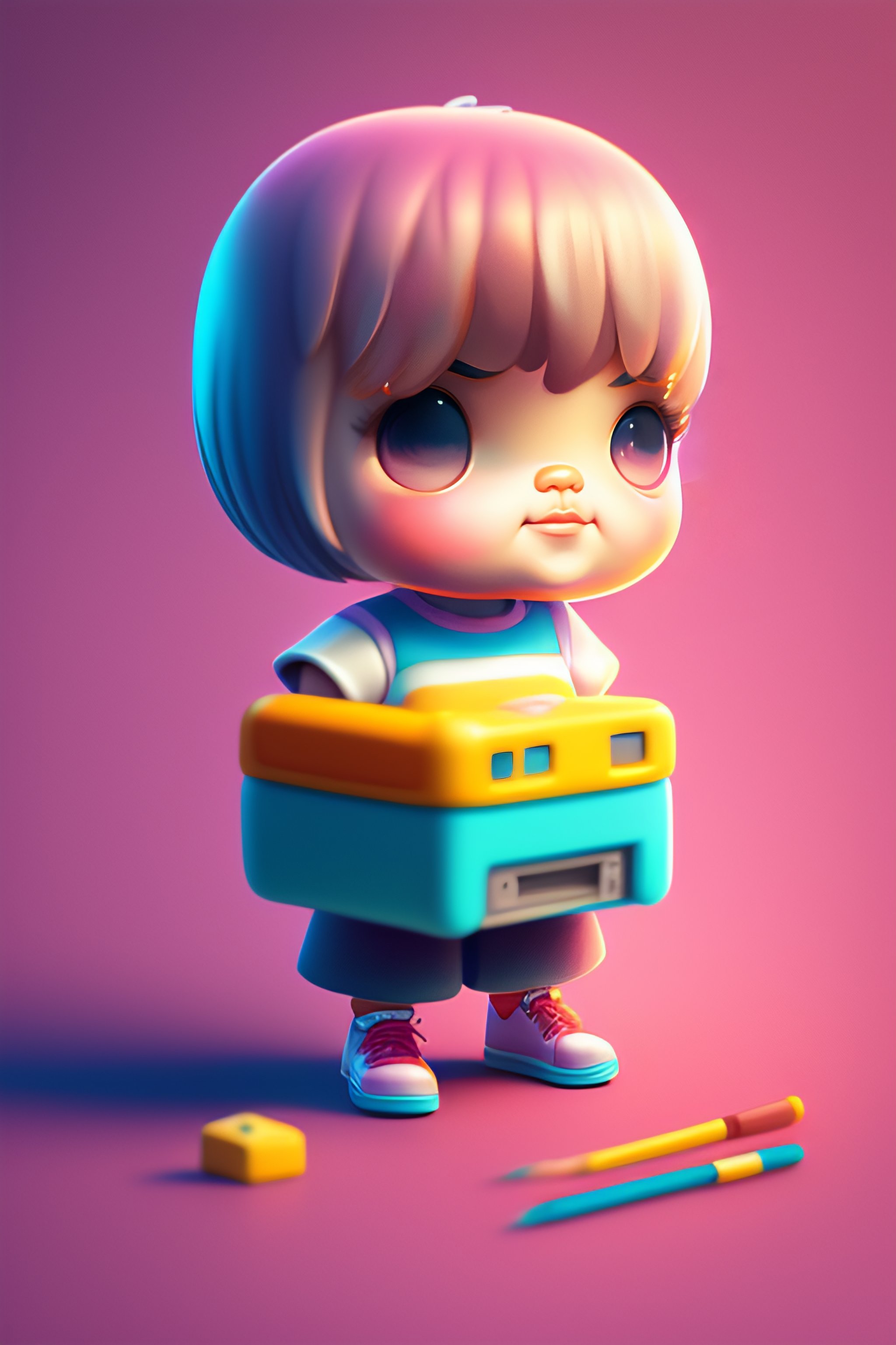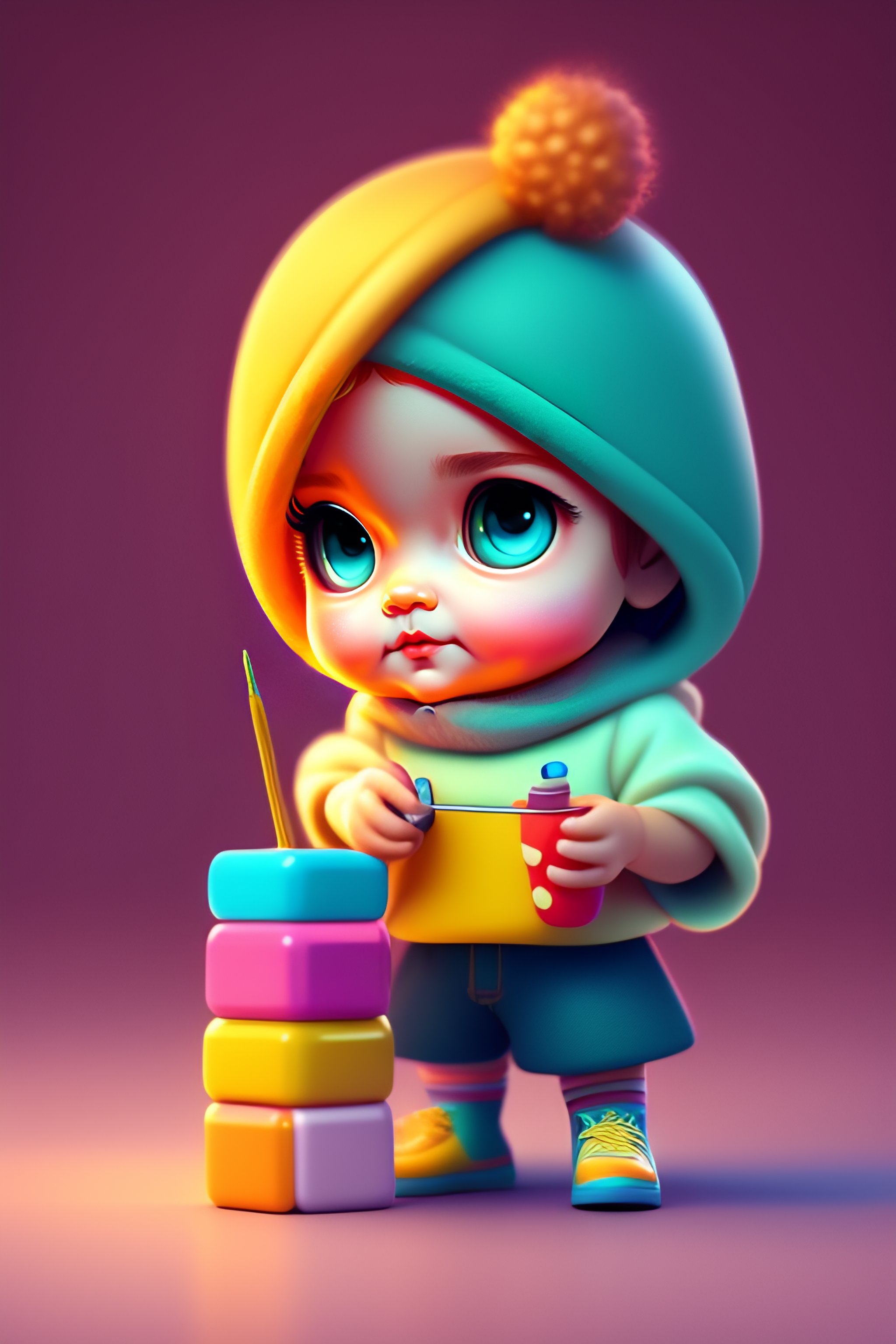 Tiny cute girl painting himself toy, standing character, soft smooth lighting, soft pastel colors, skottie young, 3d blender render, polycount, modular constructivism, pop surrealism, physically based rendering, square image.