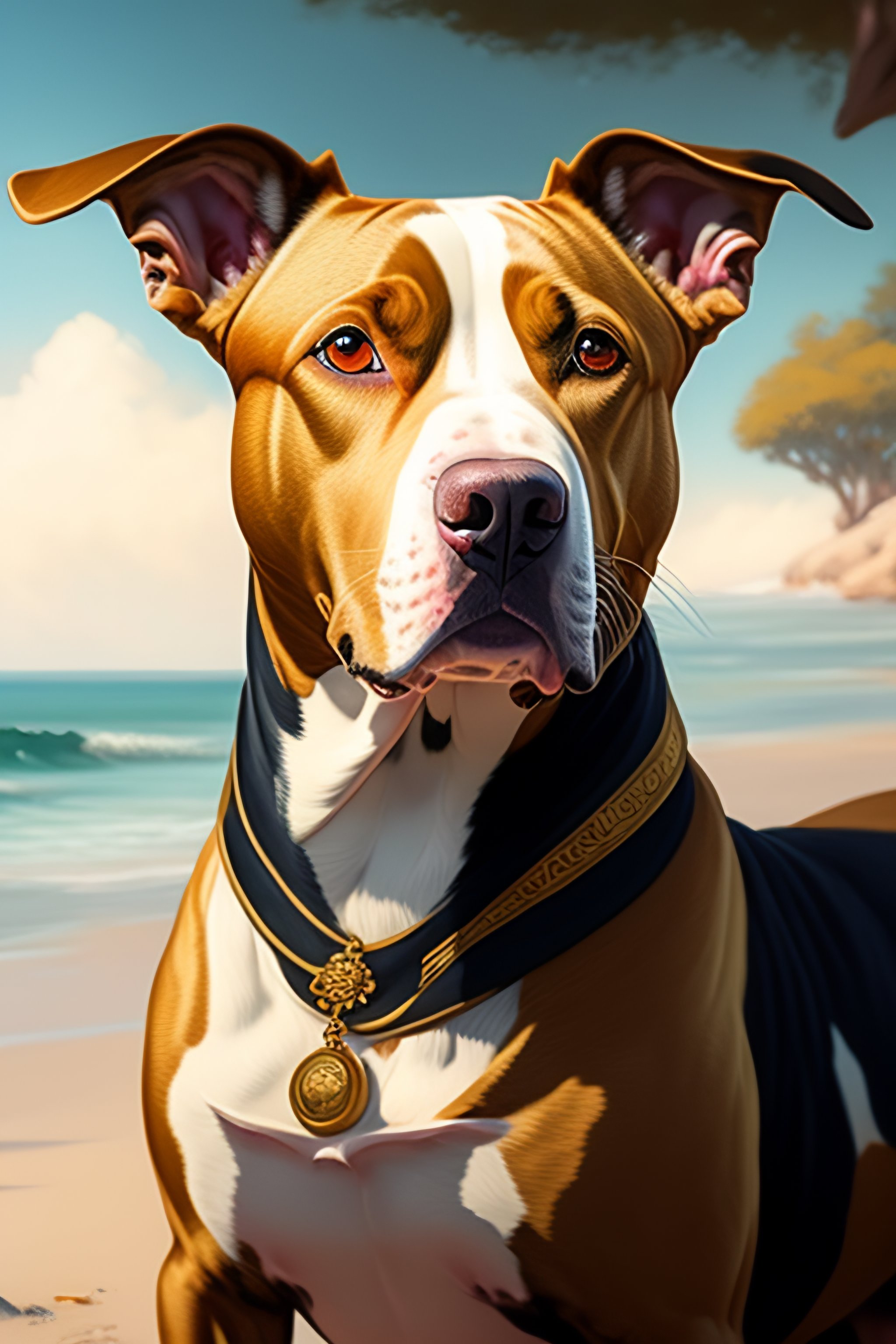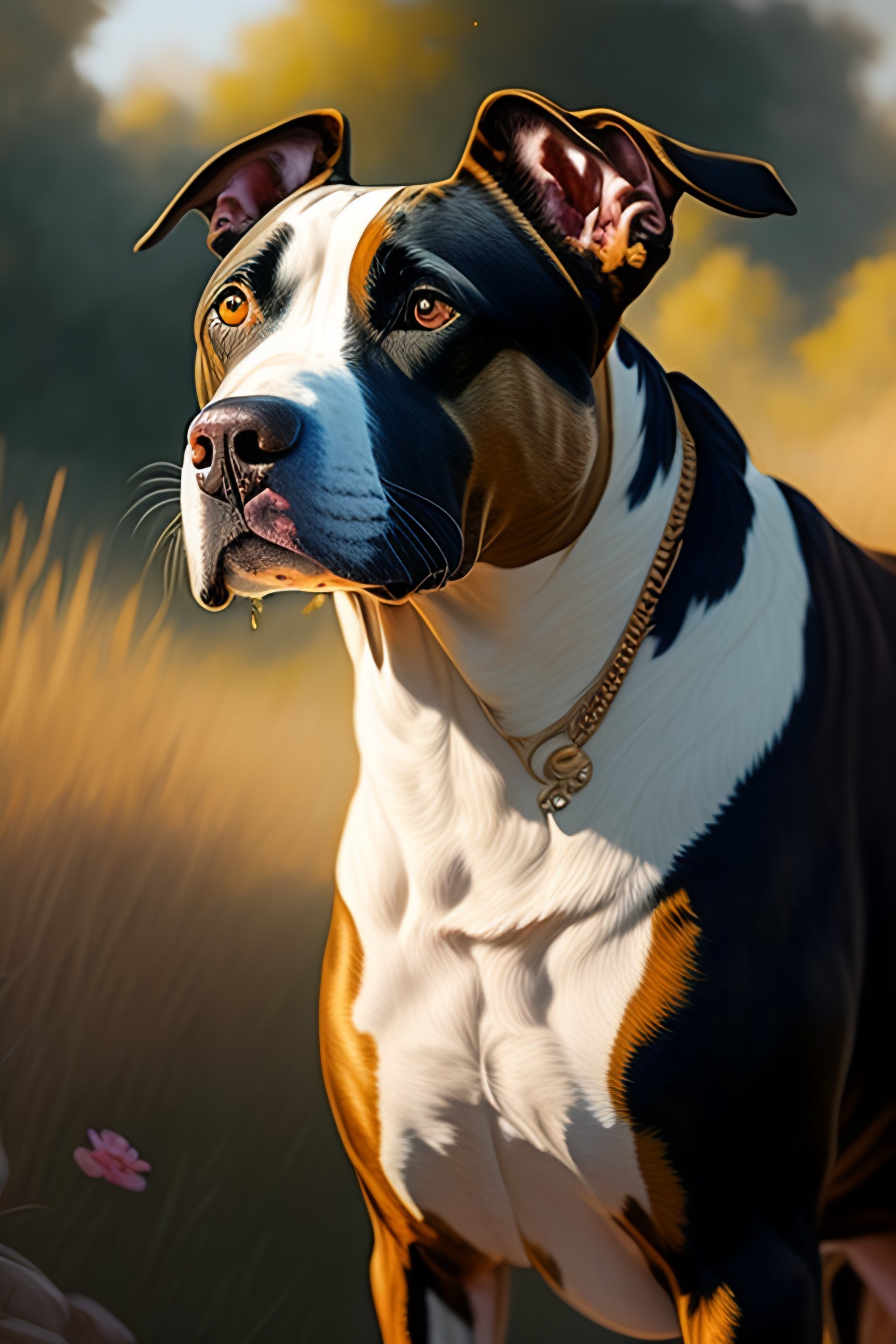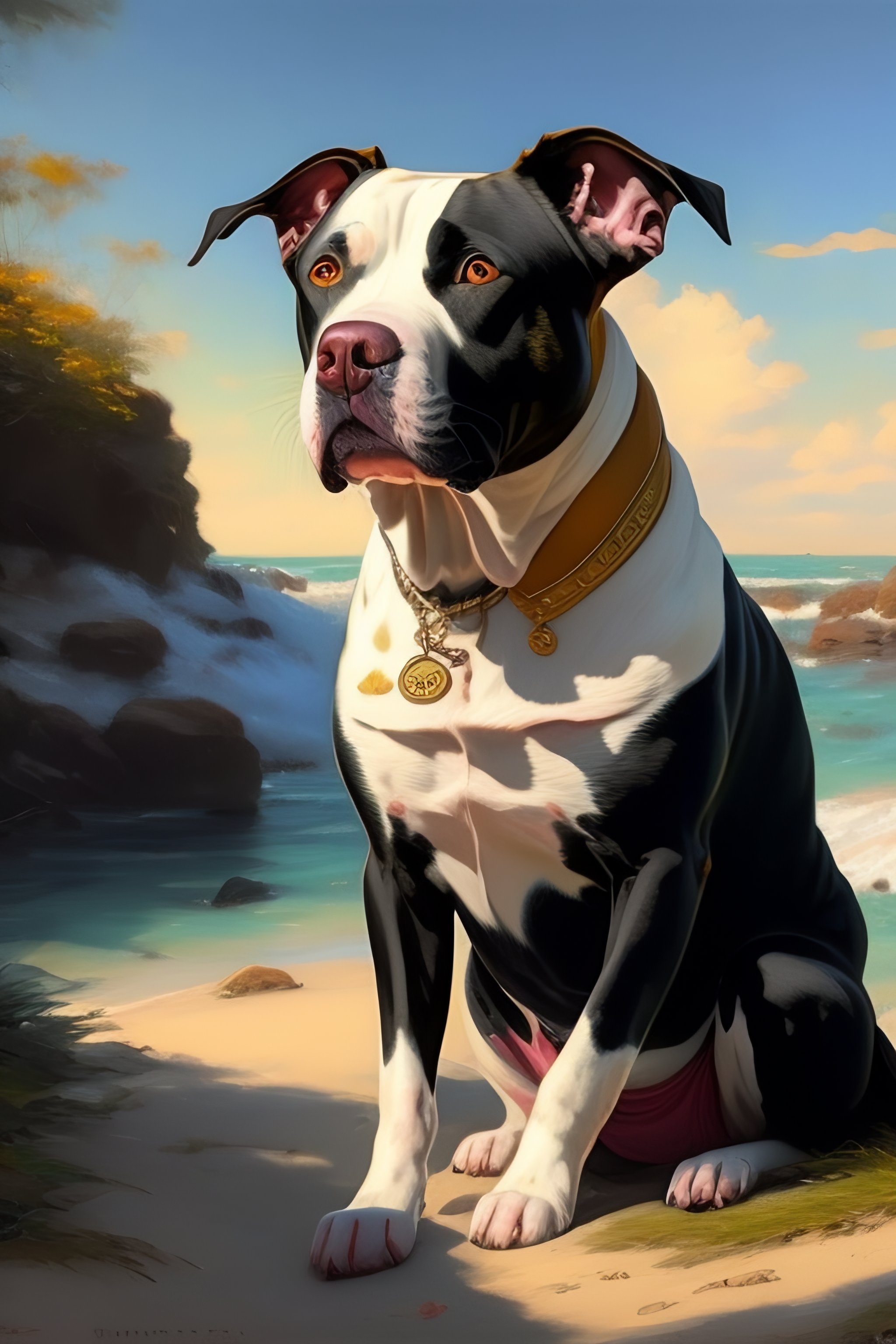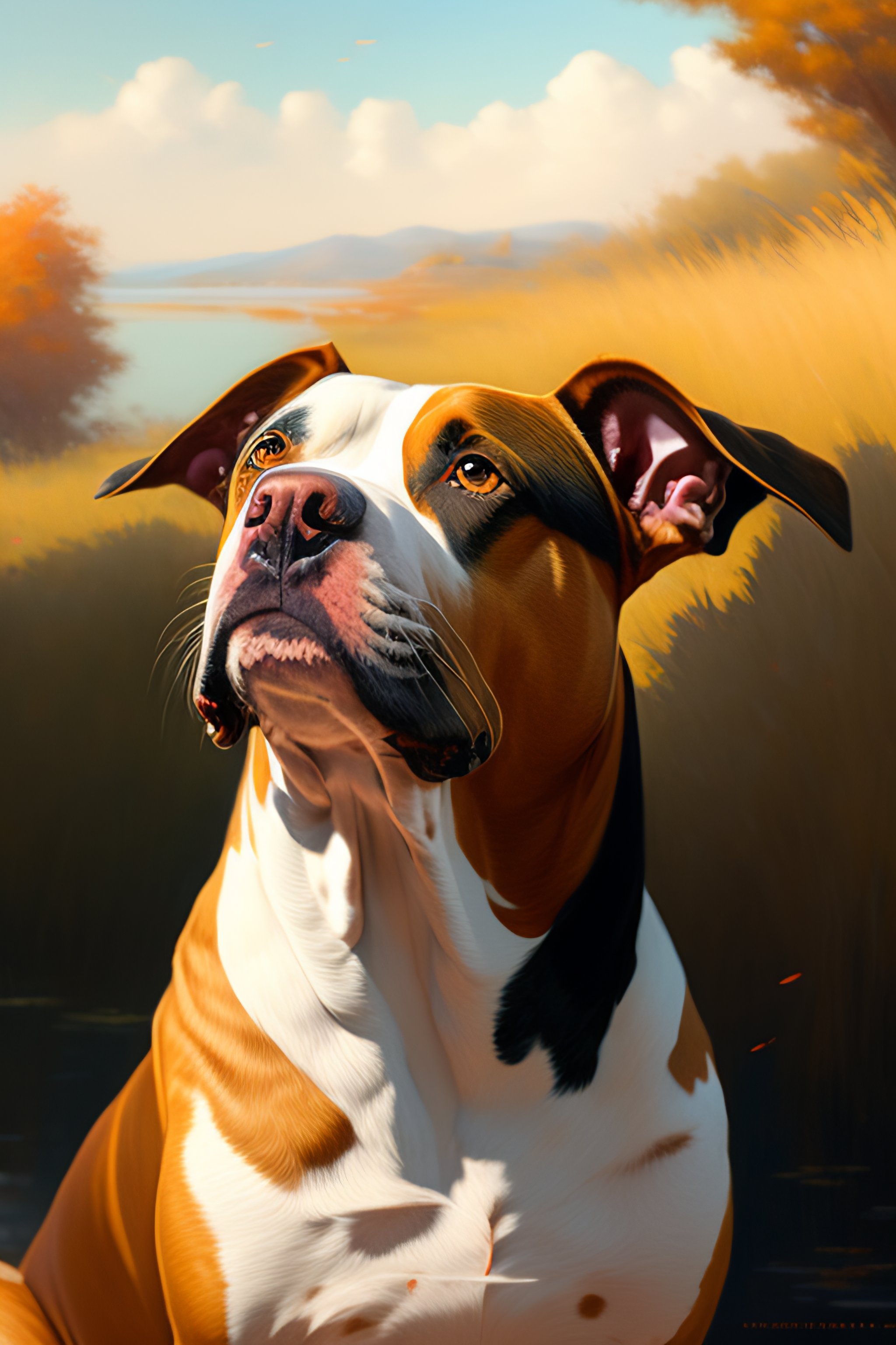 Beautiful anime painting of a pitbull dog, relaxing summer, by tim okamura, victor nizovtsev, greg rutkowski, noah bradley. trending on artstation, 8k, masterpiece, graffiti paint, fine detail, full of color, full body, intricate detail, golden ratio illustration, leonardo da vinci style, by sandro botticelli and odilon redon and greg rutkowski, 8 k, storybook illustration, impressionism