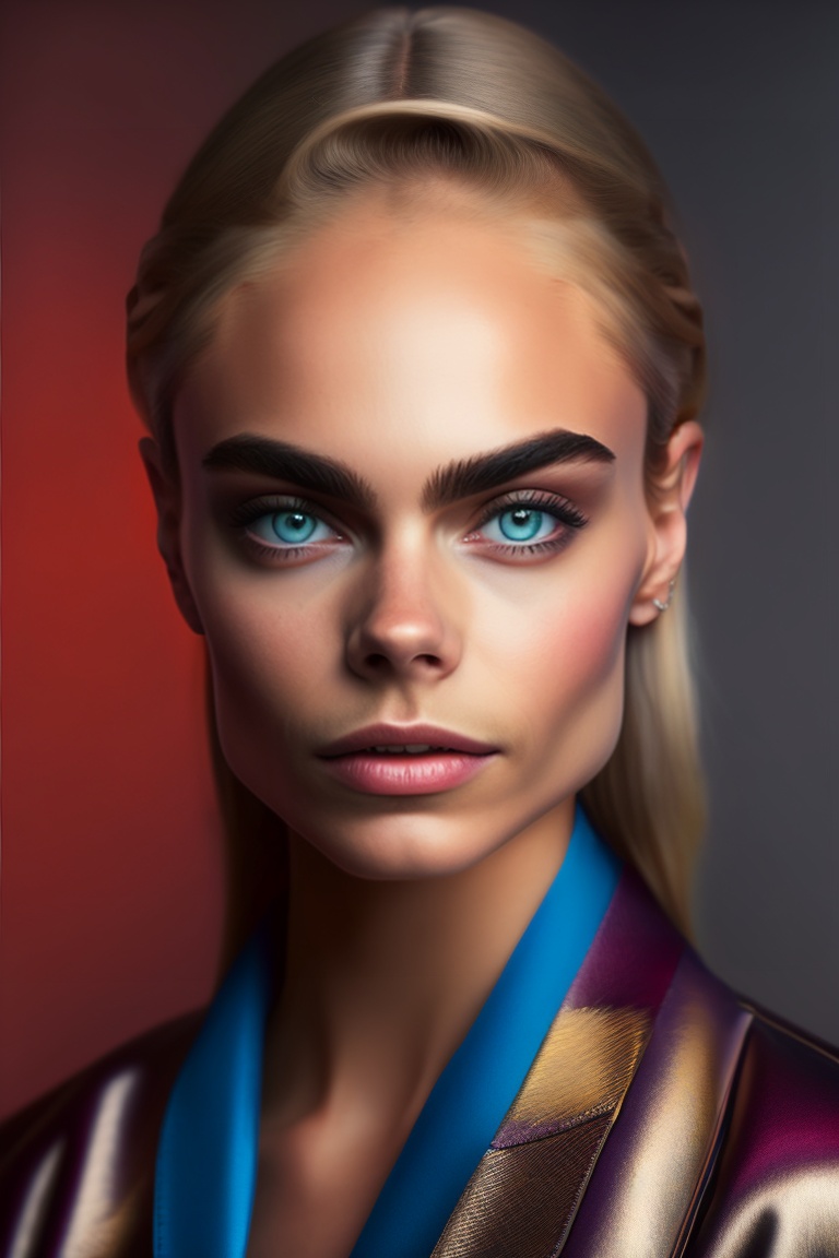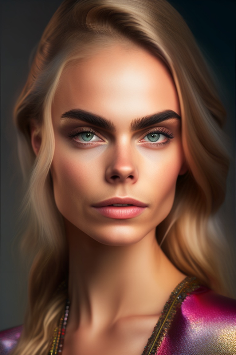 Amazing portrait of cara delevingne, ultra realistic, zeiss portrait, leica portrait, photograph by martin schoeller, (cinematic look), insane details, rembrandt lighting, hyperdetailed, artgerm, wlop, studio photo, dewy glow makeup, (looking at viewer, facing forward, headshot), simple background