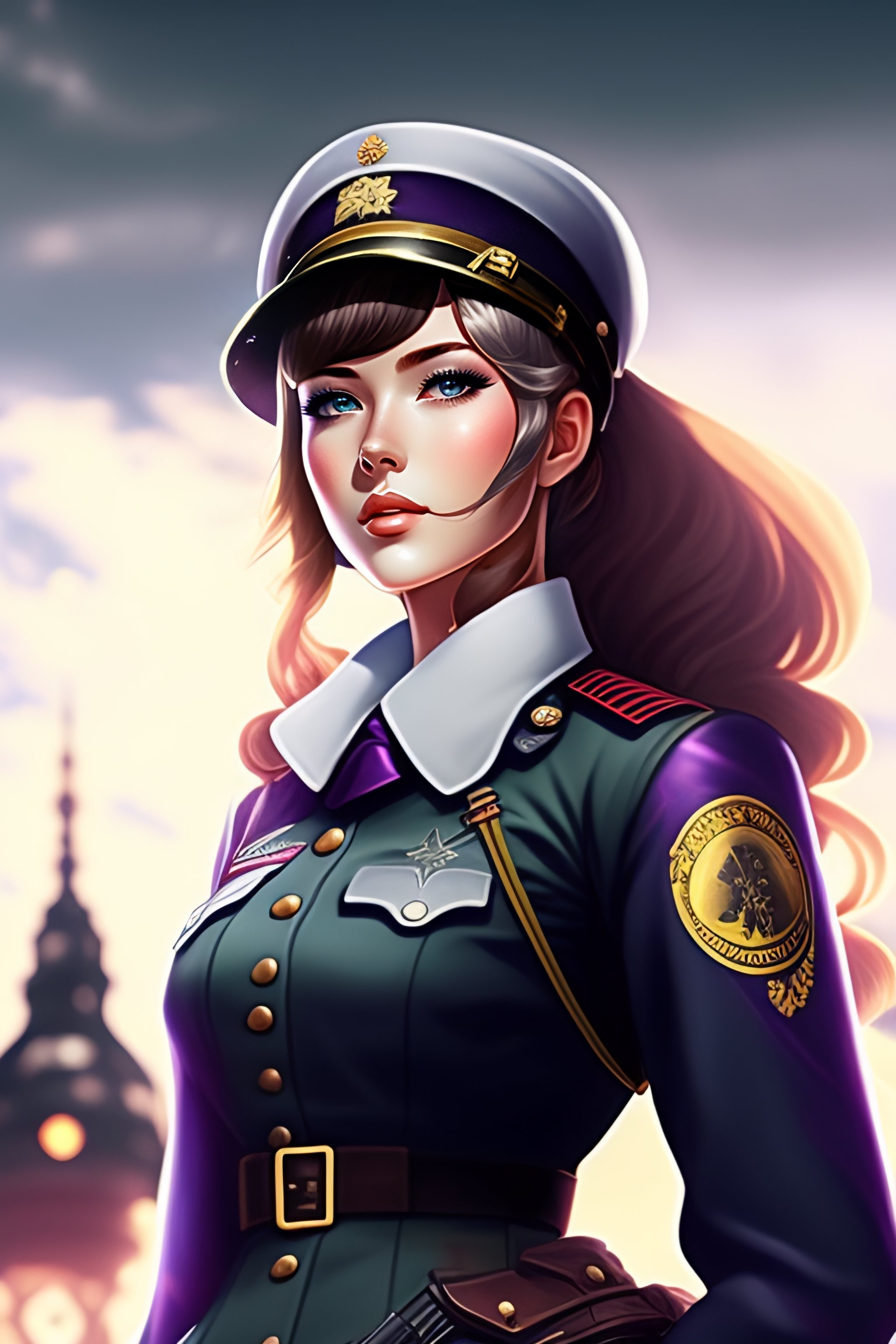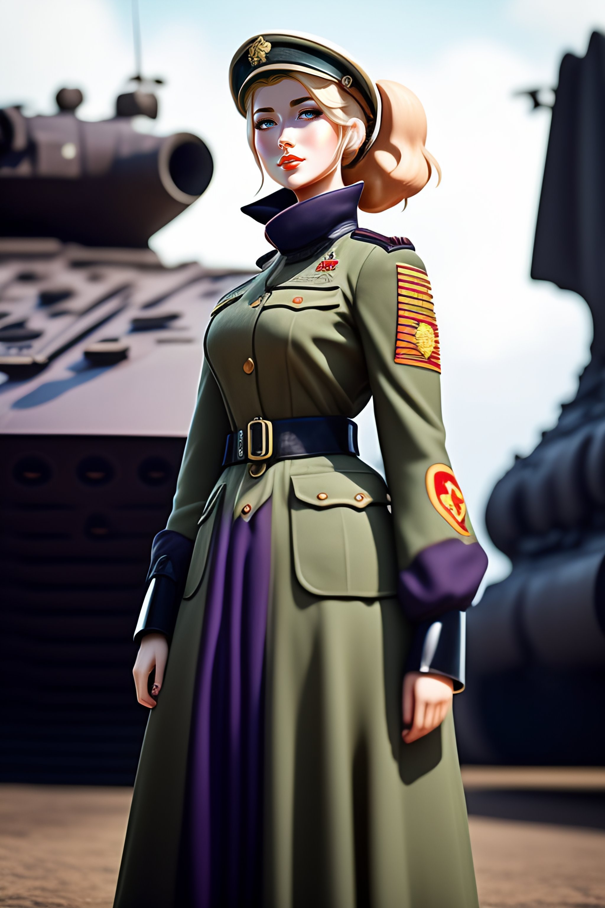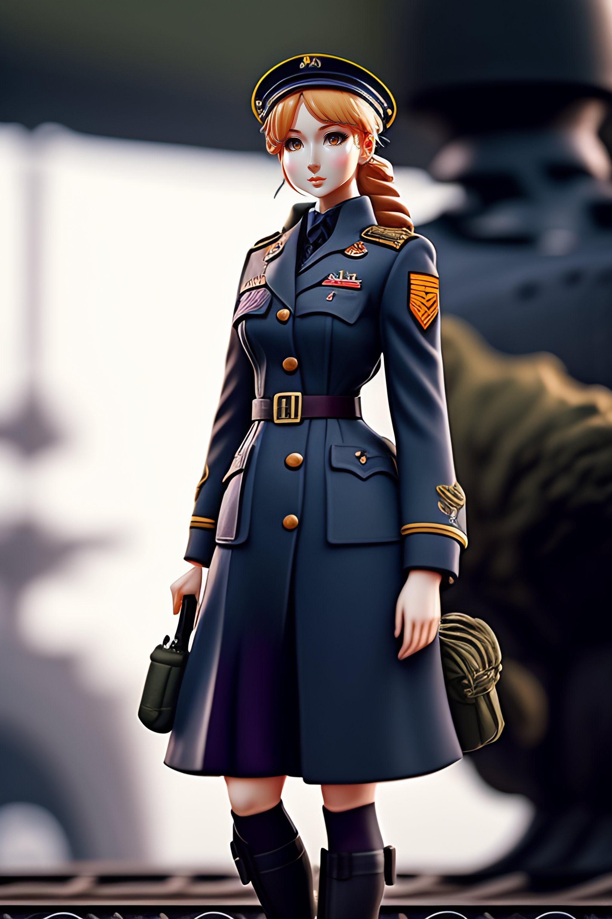 Single german military solider-girl with mp-40 on ww2; anime style; vintage 40's; world war; military; violet evergarden; only black and gray colors