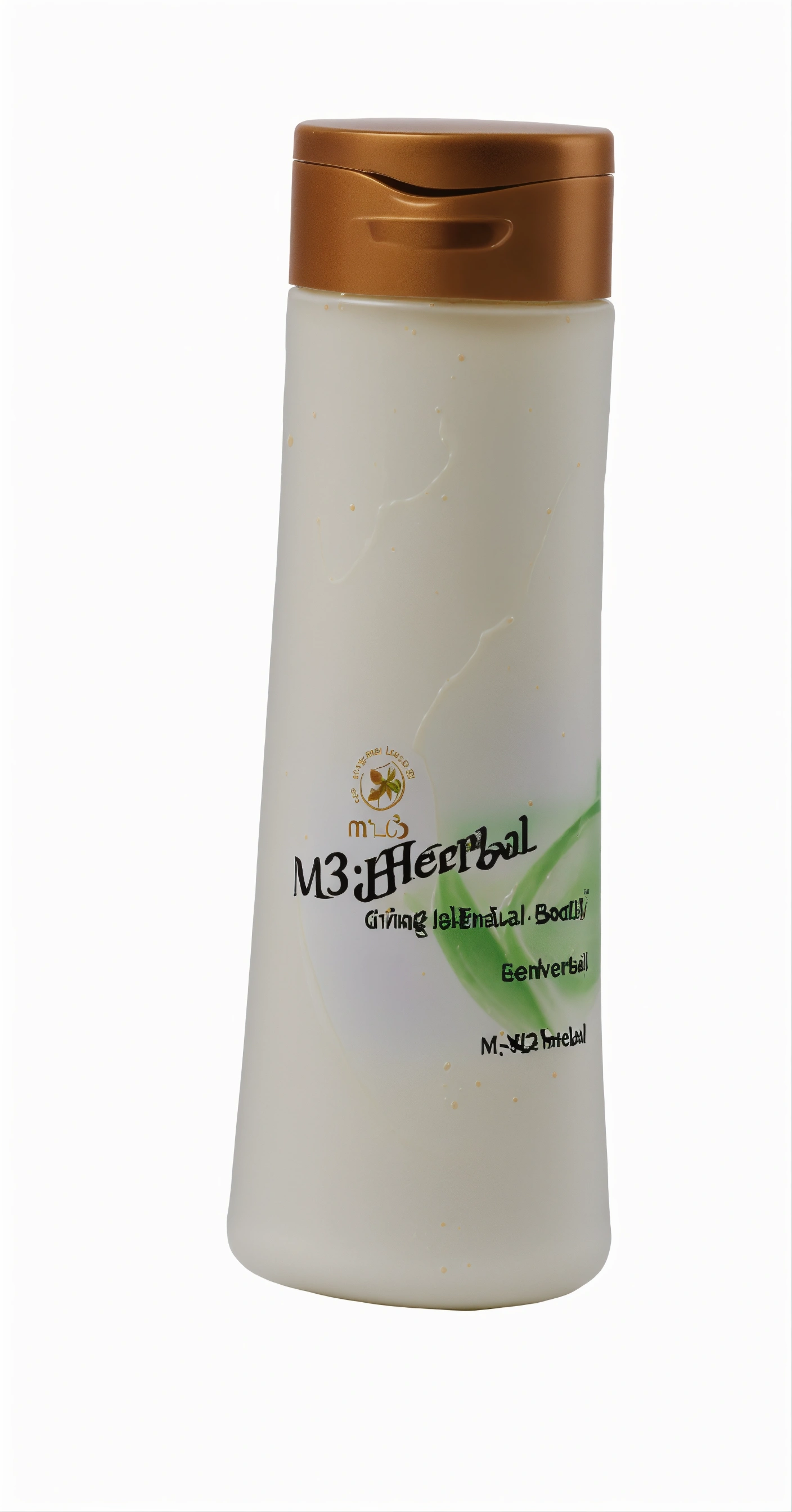 Create a label for body lotion that protects from uv rays on giving pic. 100% natural ingredients, enriched by aloe vera extract. show correct brand name "m3herbal" body lotion. "m3hebal" this my brand name please show correctly on the image
