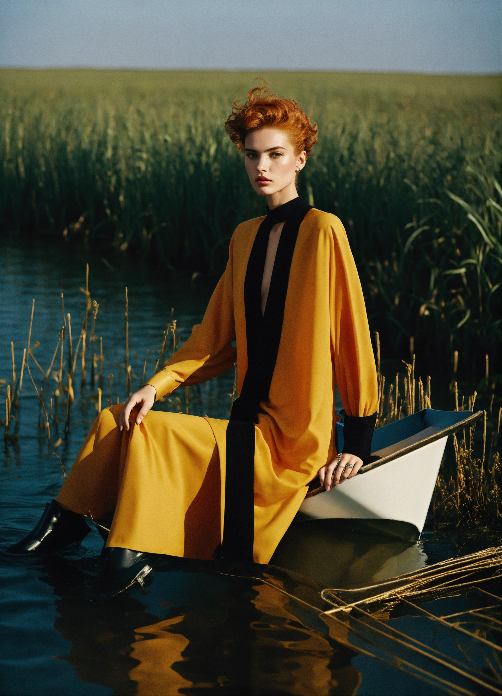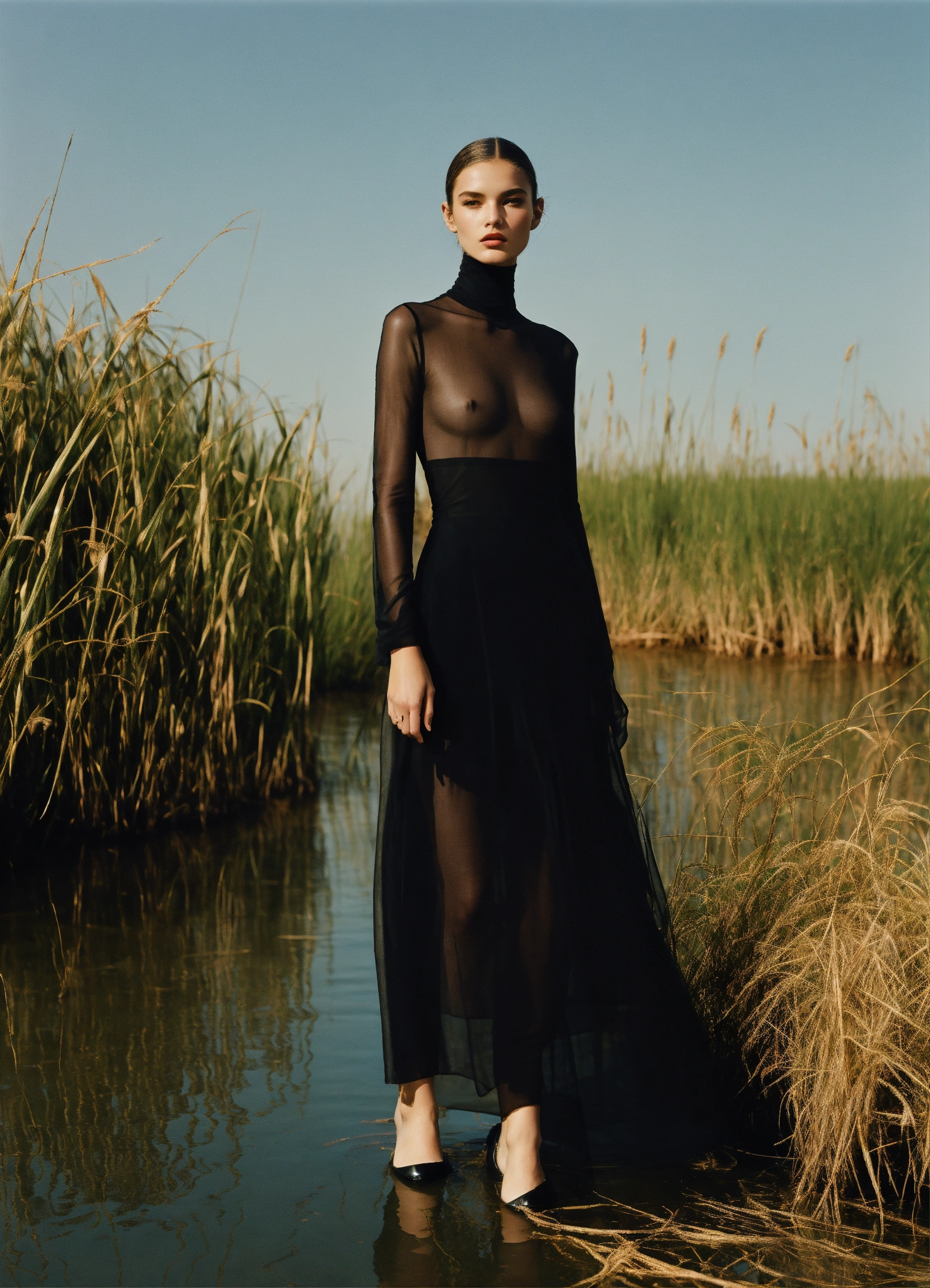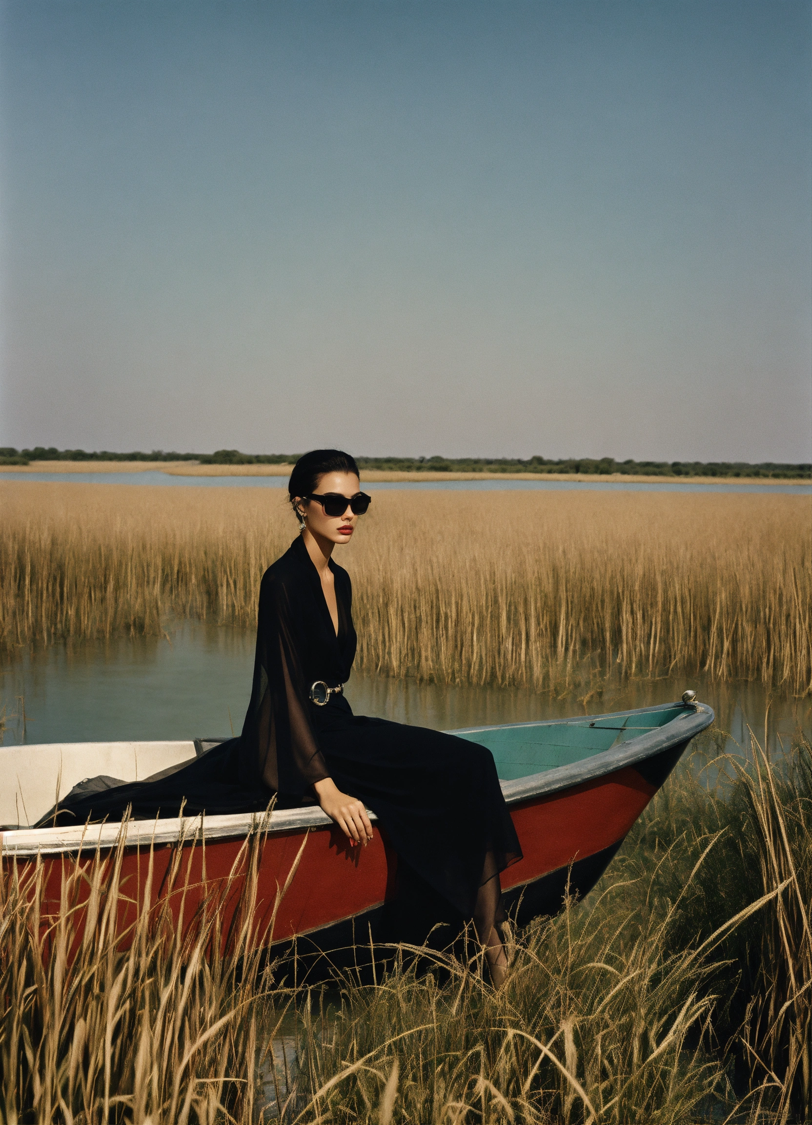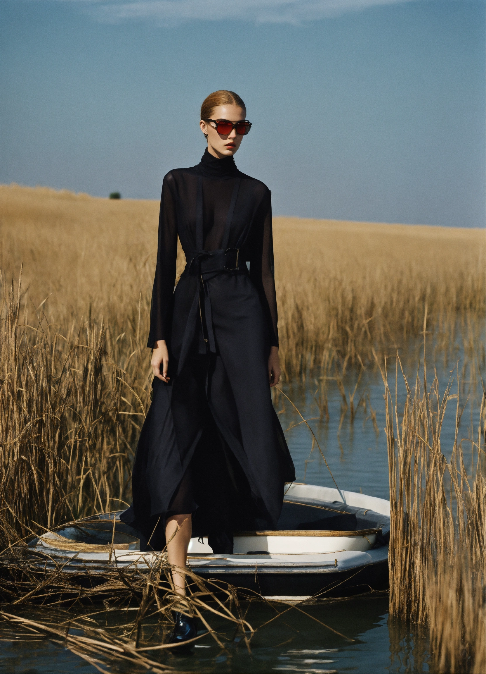 Mugler retro basra marshes vogue boat editorial black vail voile sheer minimalism raft ludovic de saint sernin deco maison kayrouz