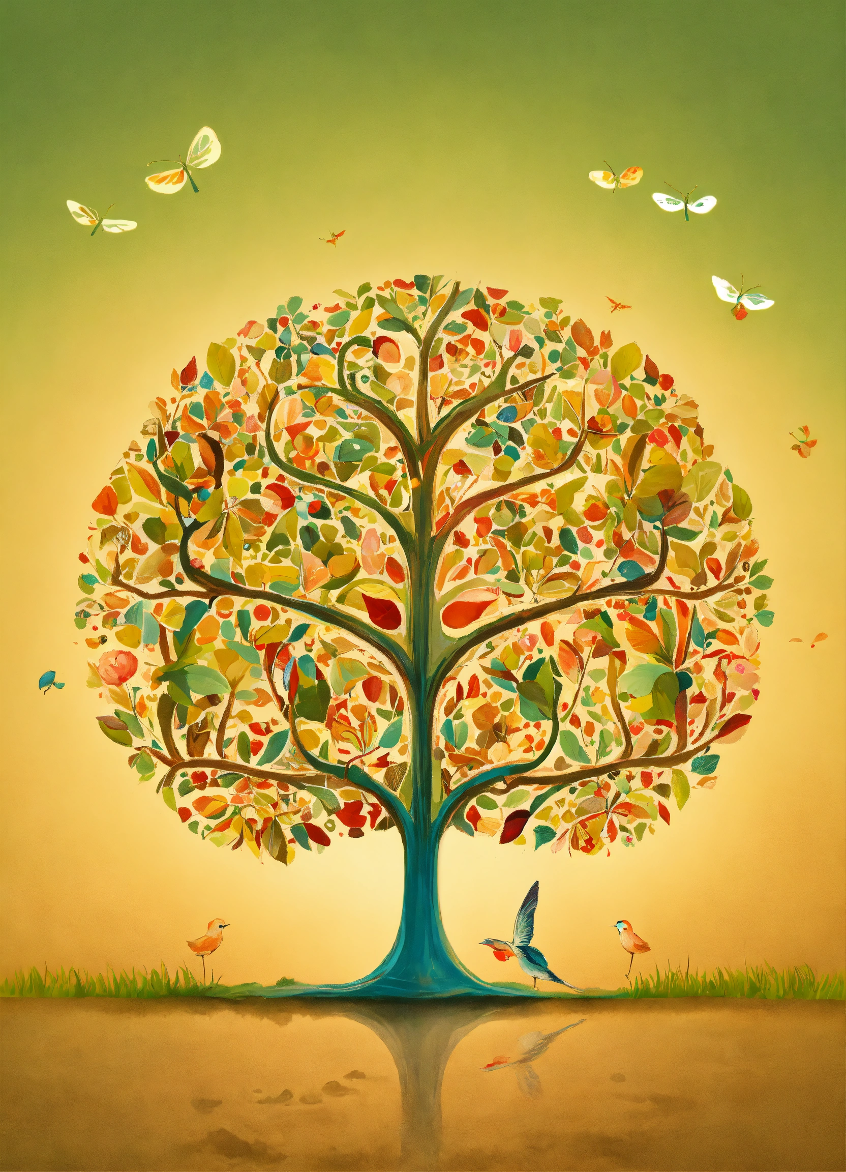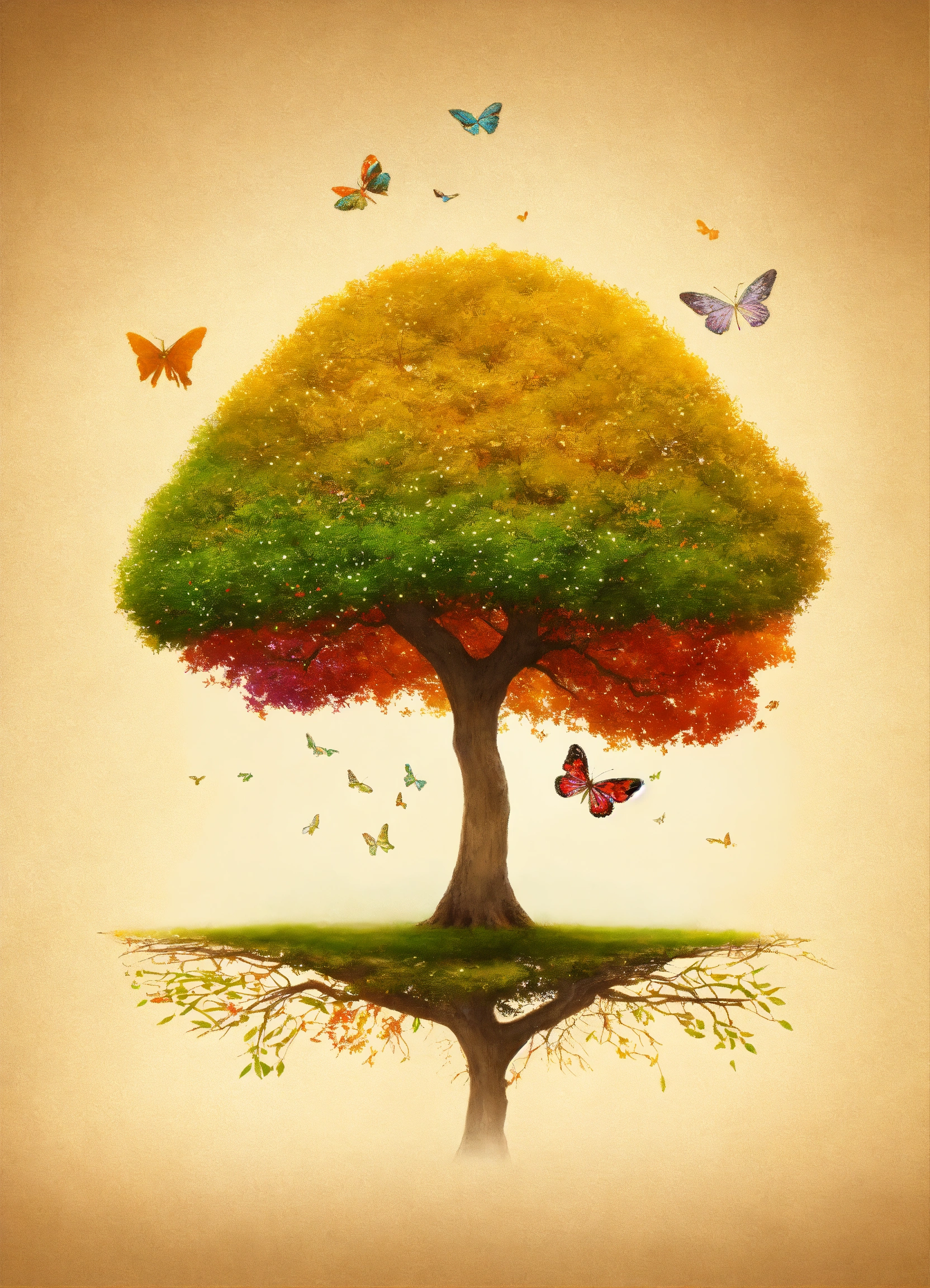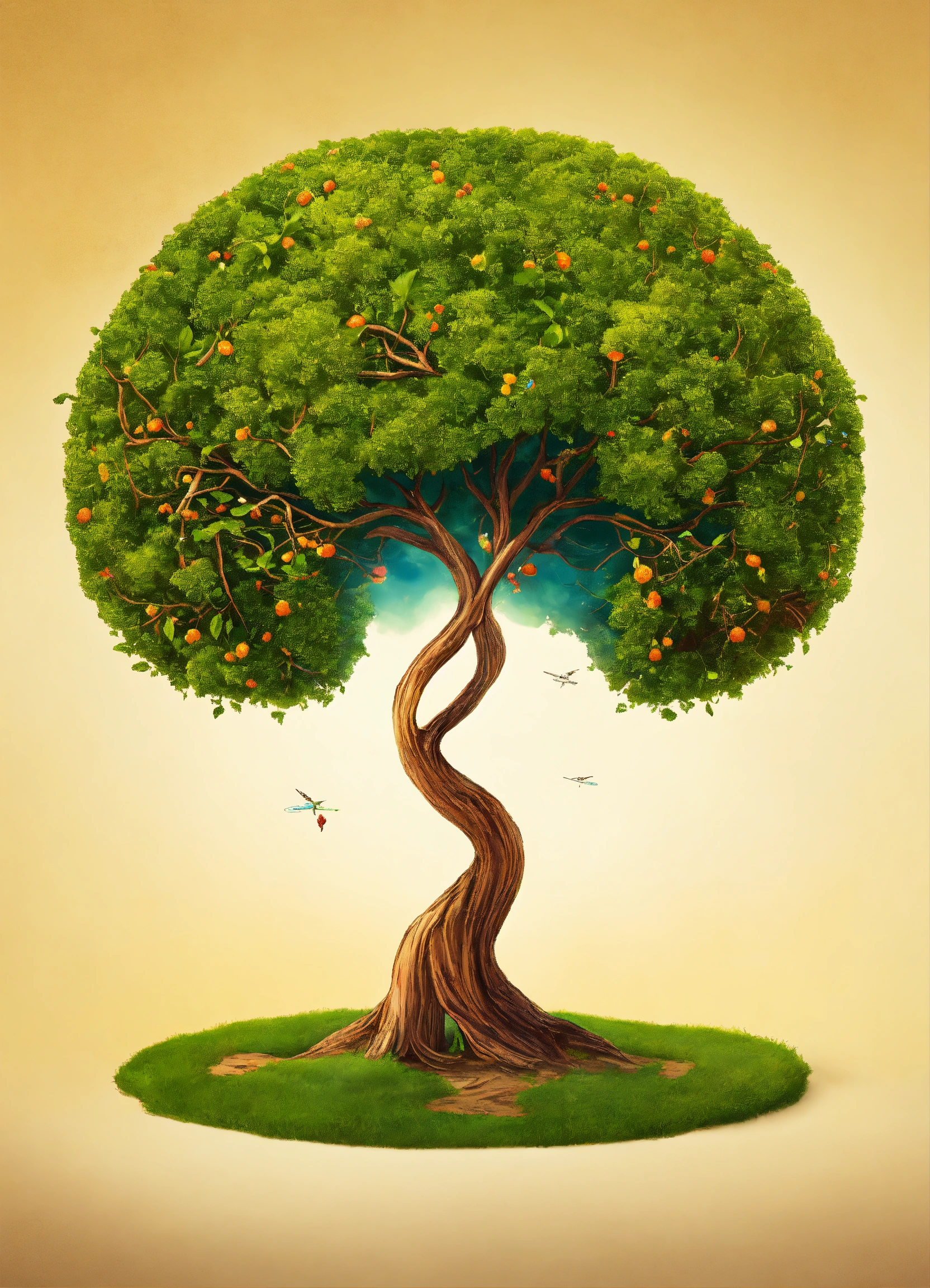 Imagen tipo logo de un árbol de la vida con forma de libelula