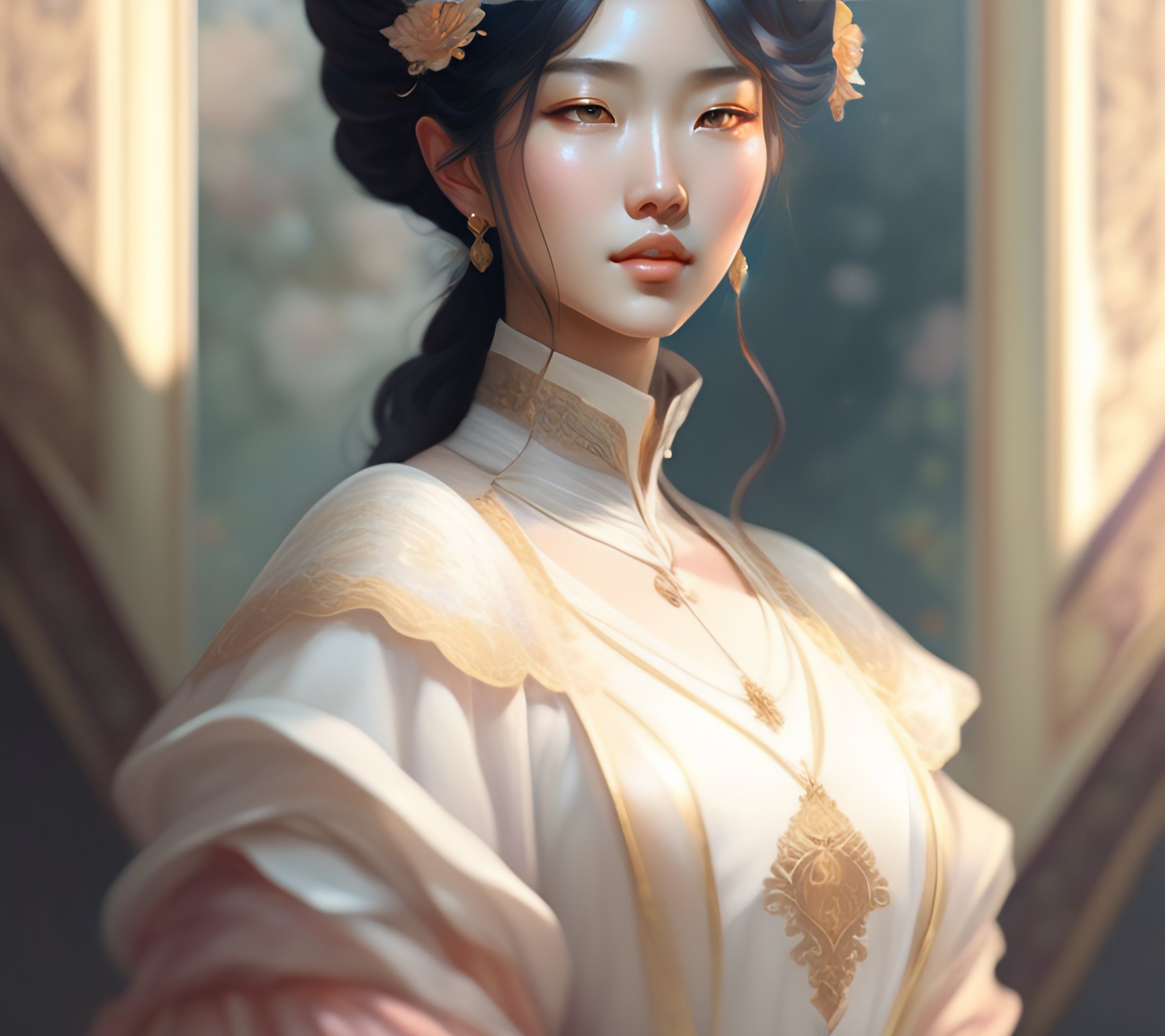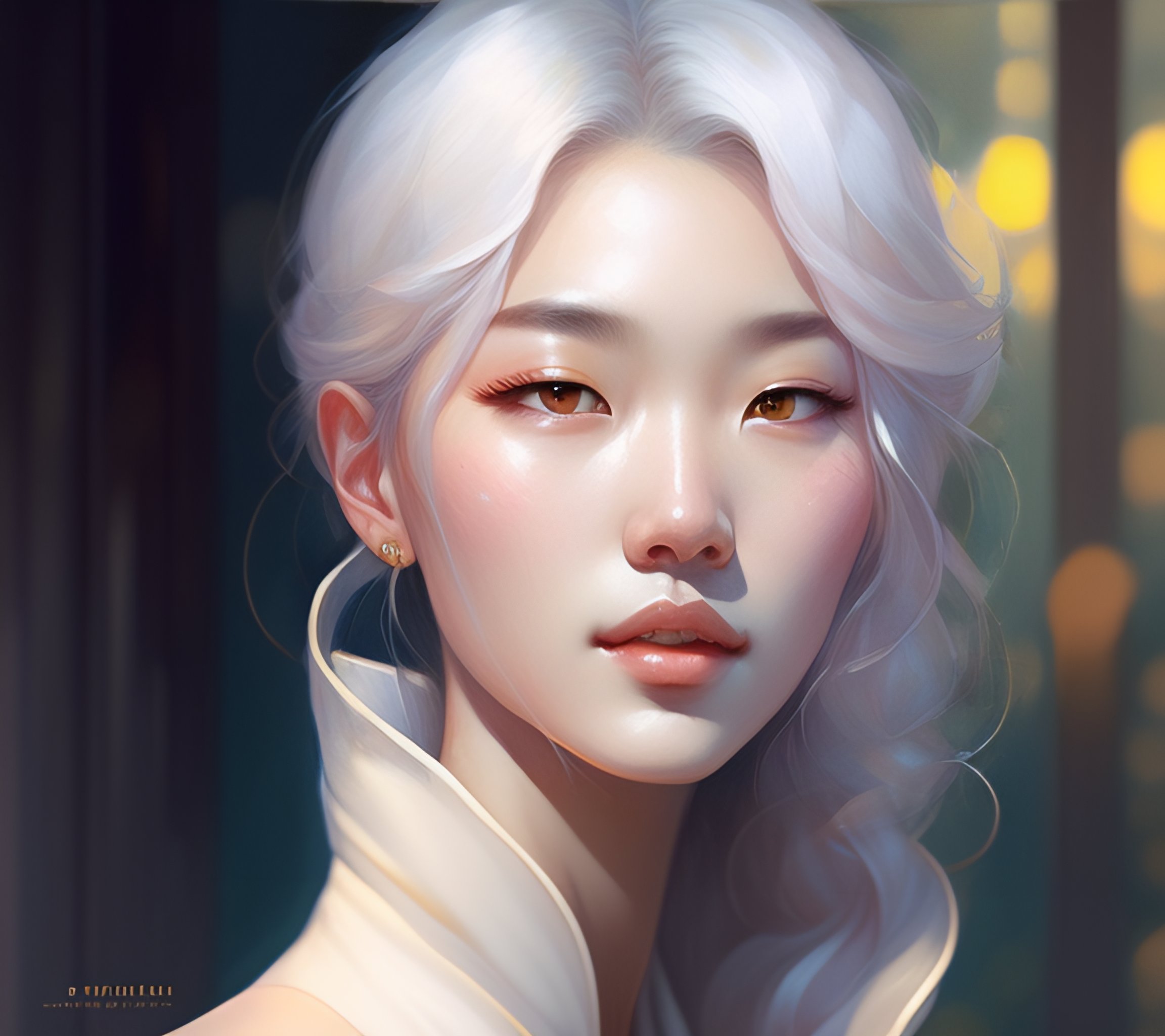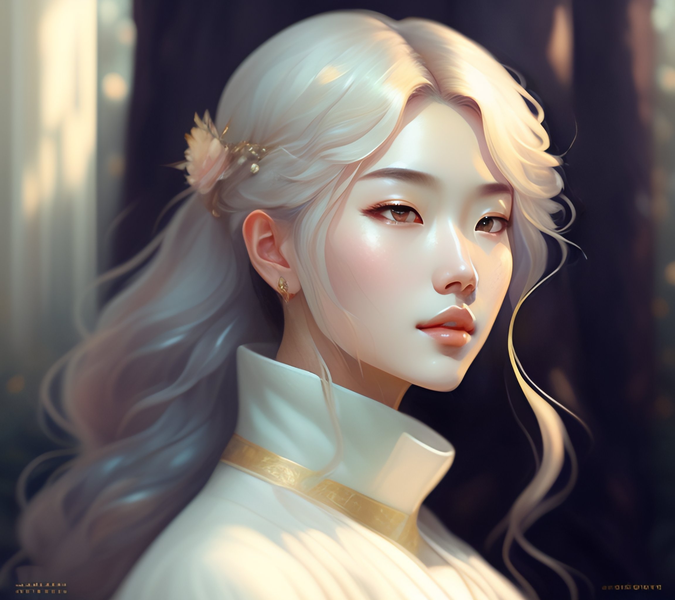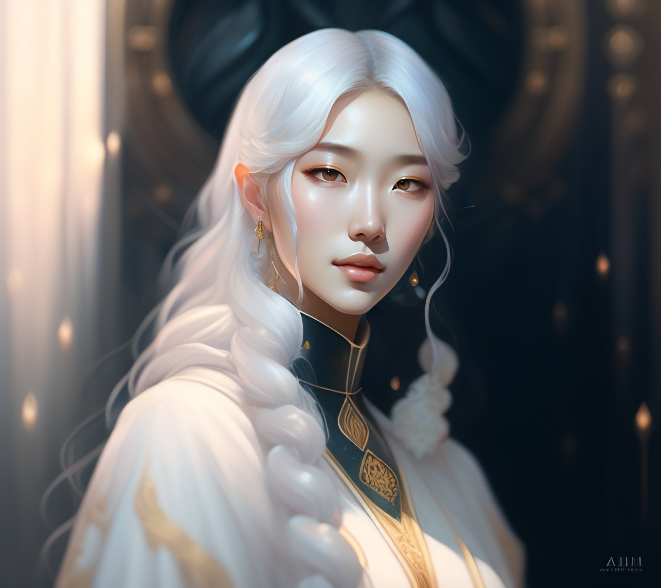 A full portrait of soobin from txt, white hair, intricate, elegant, highly detailed, digital painting, artstation, concept art, smooth, sharp focus, illustration, art by krenz cushart and artem demura and alphonse mucha