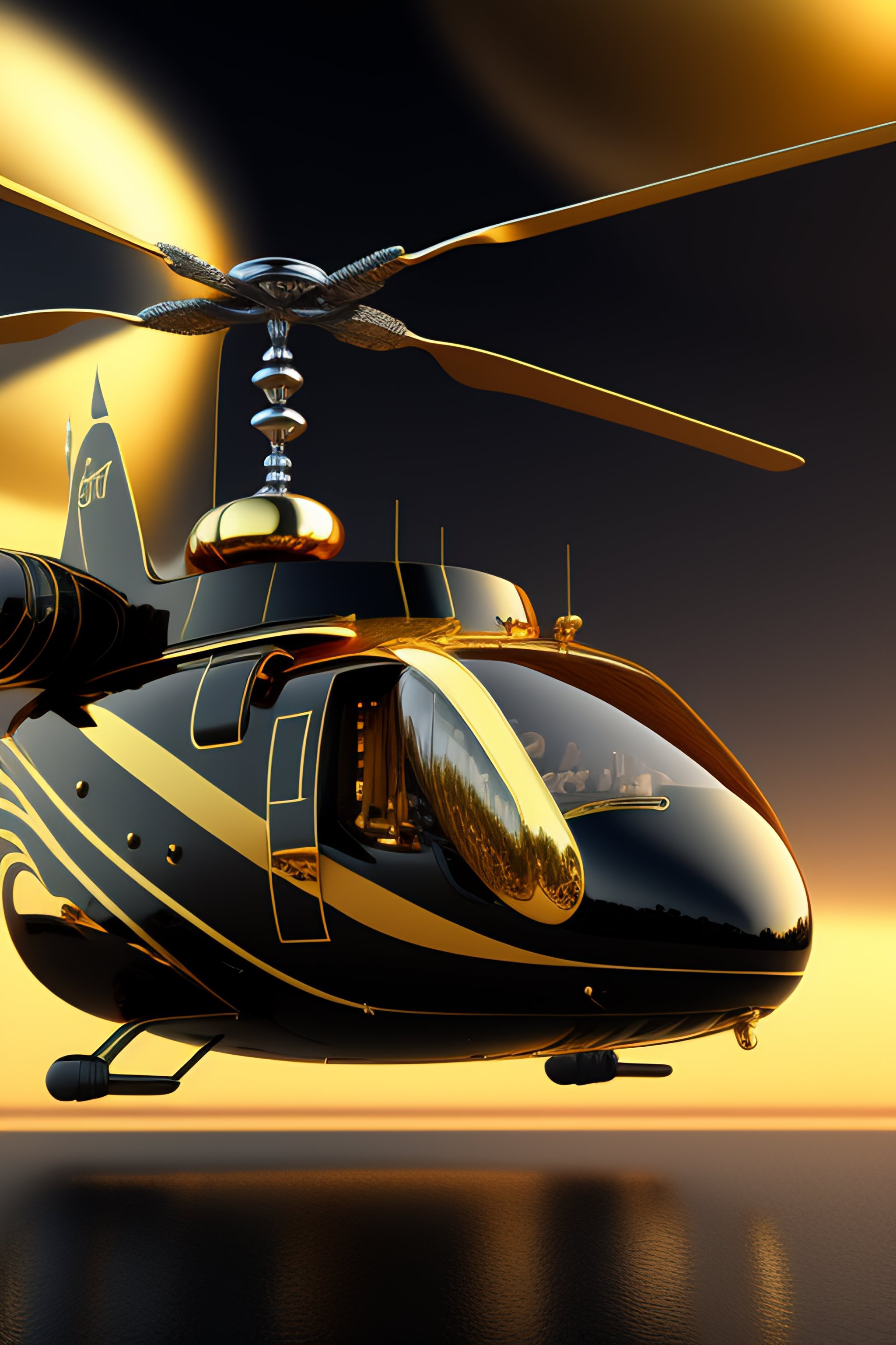 Super luxury black and gold helicopter high definition quality render 8k