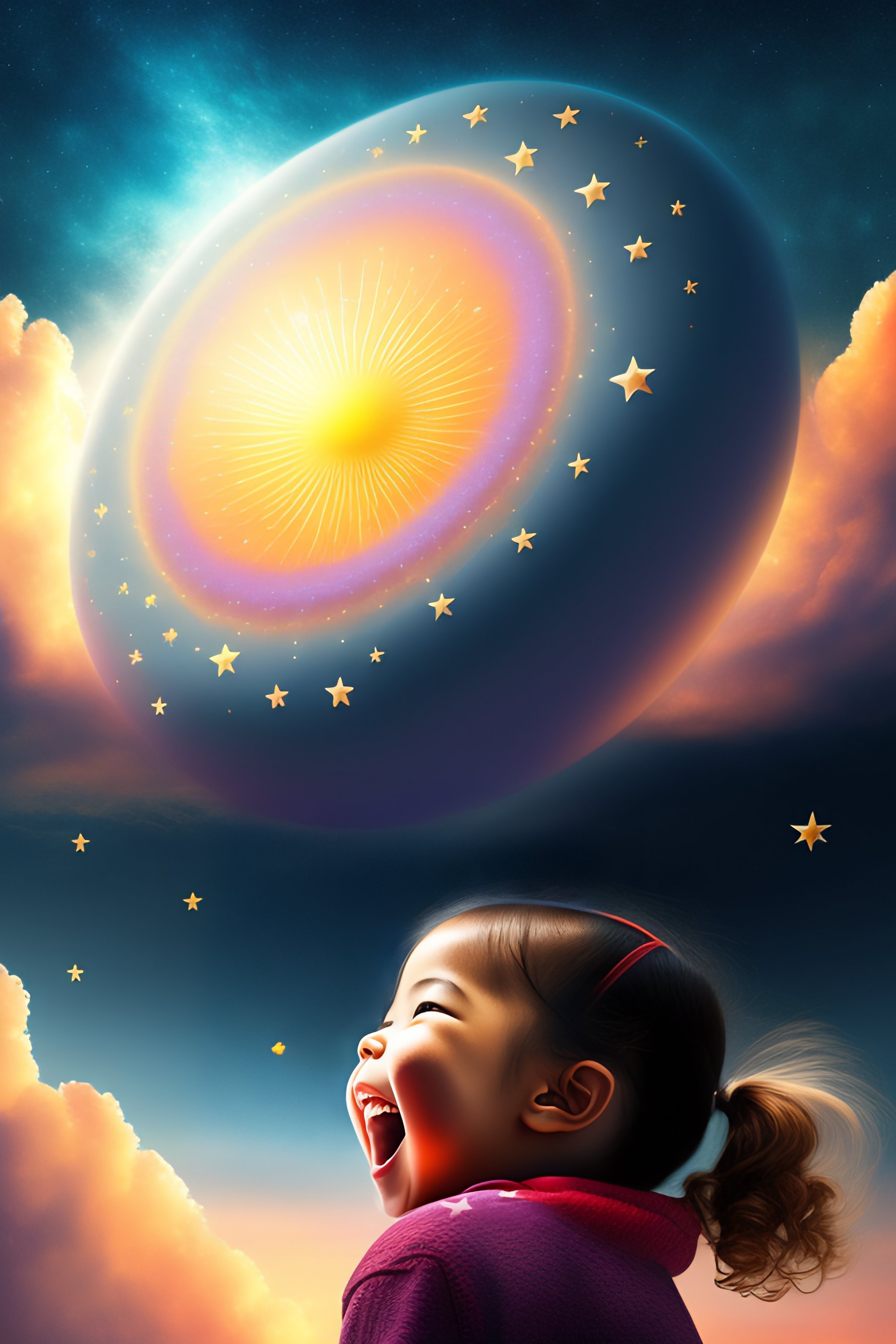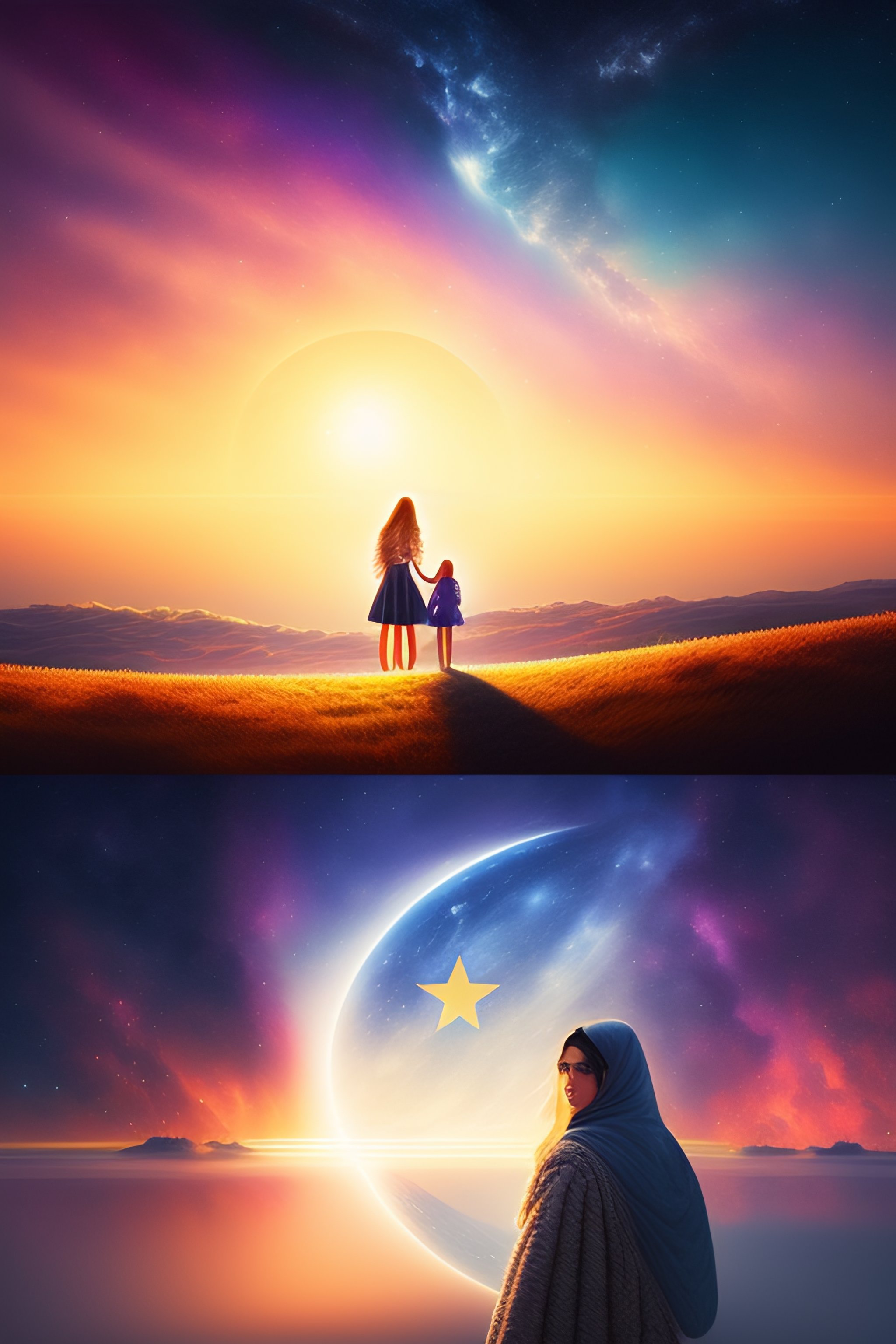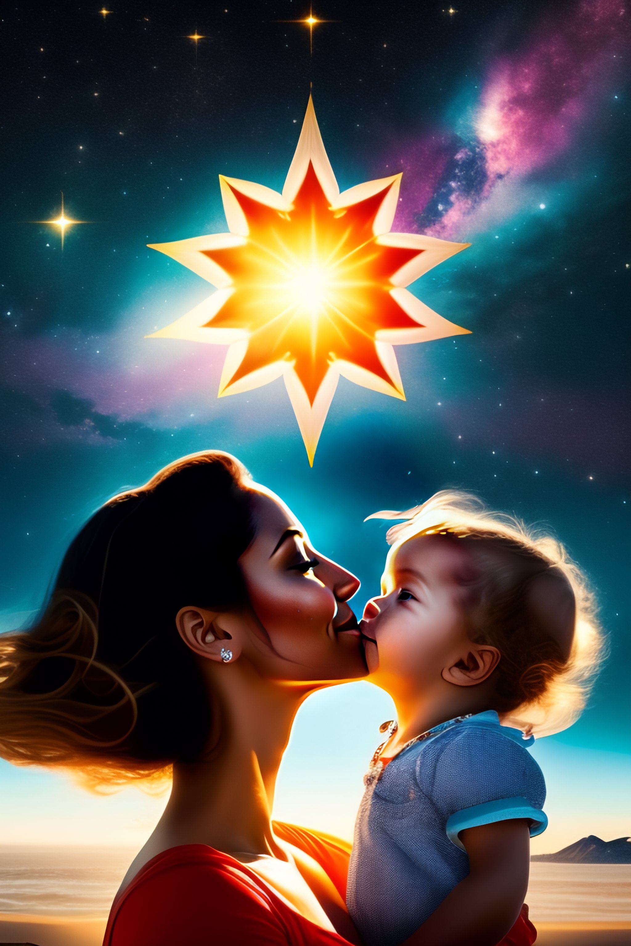 Happy mom star and daughter star in sky