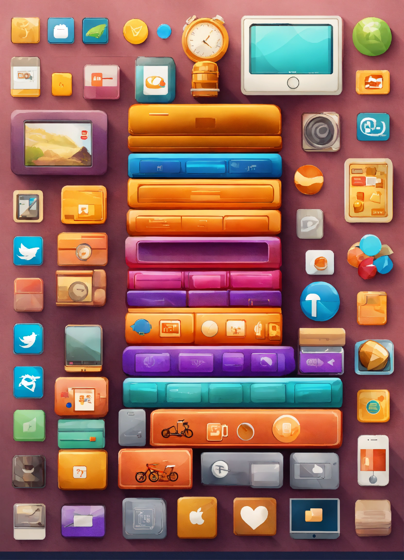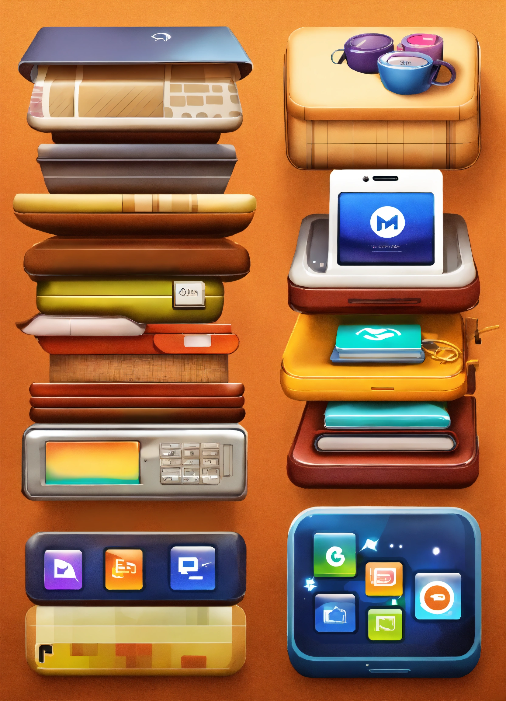 Mobile app icons pile