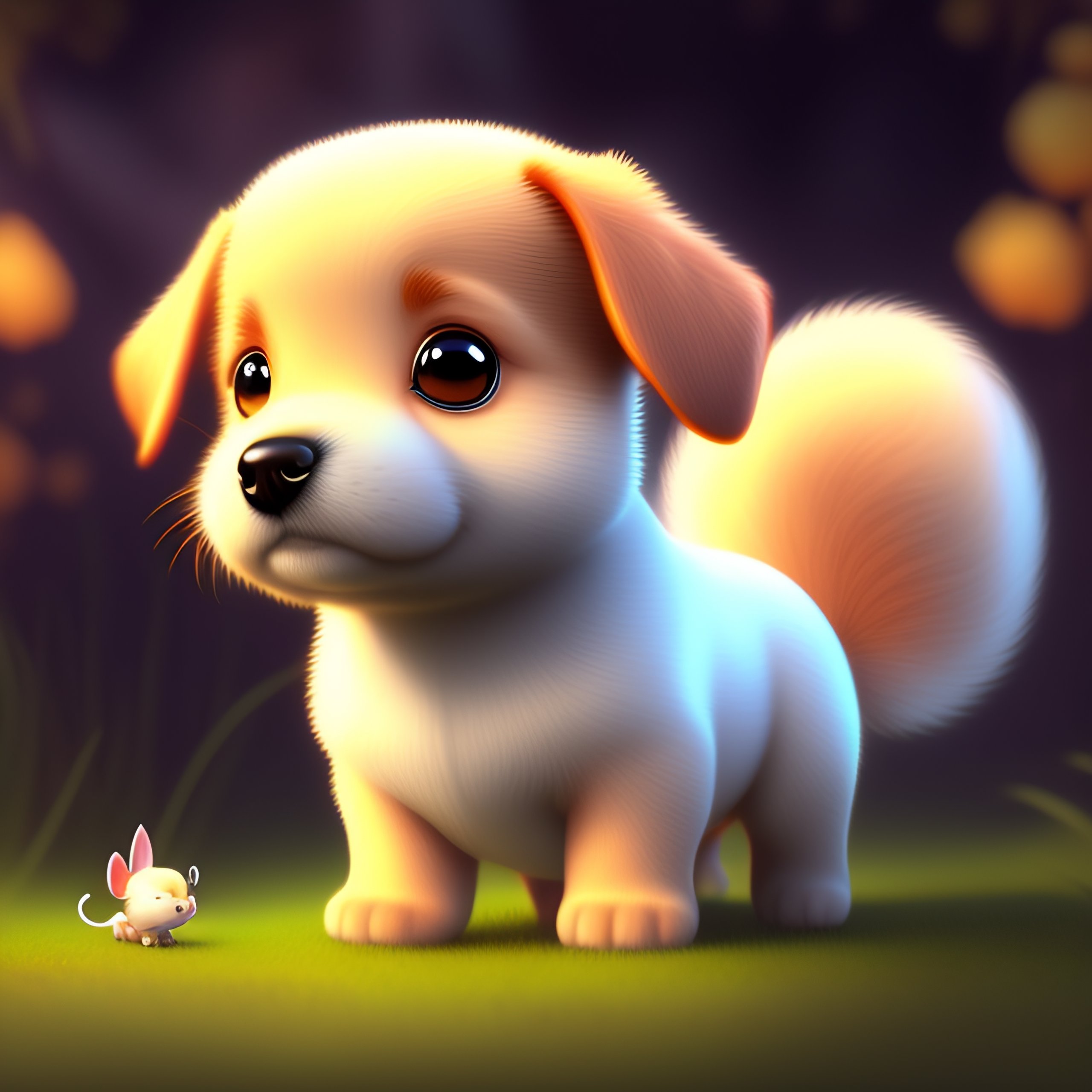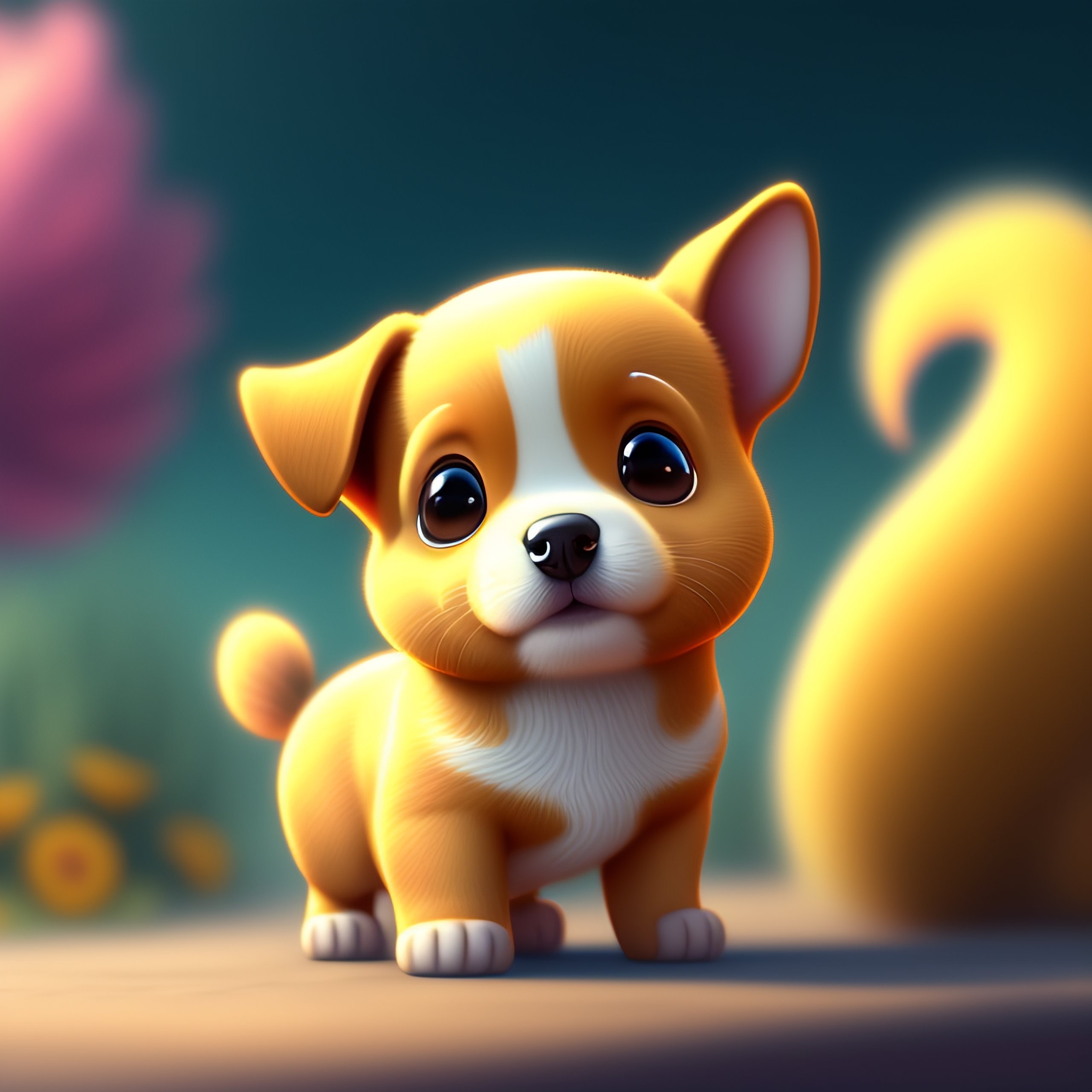 Cute and adorable cartoon dog baby, fantasy, dreamlike, surrealism, super cute, trending on artstation, small tail