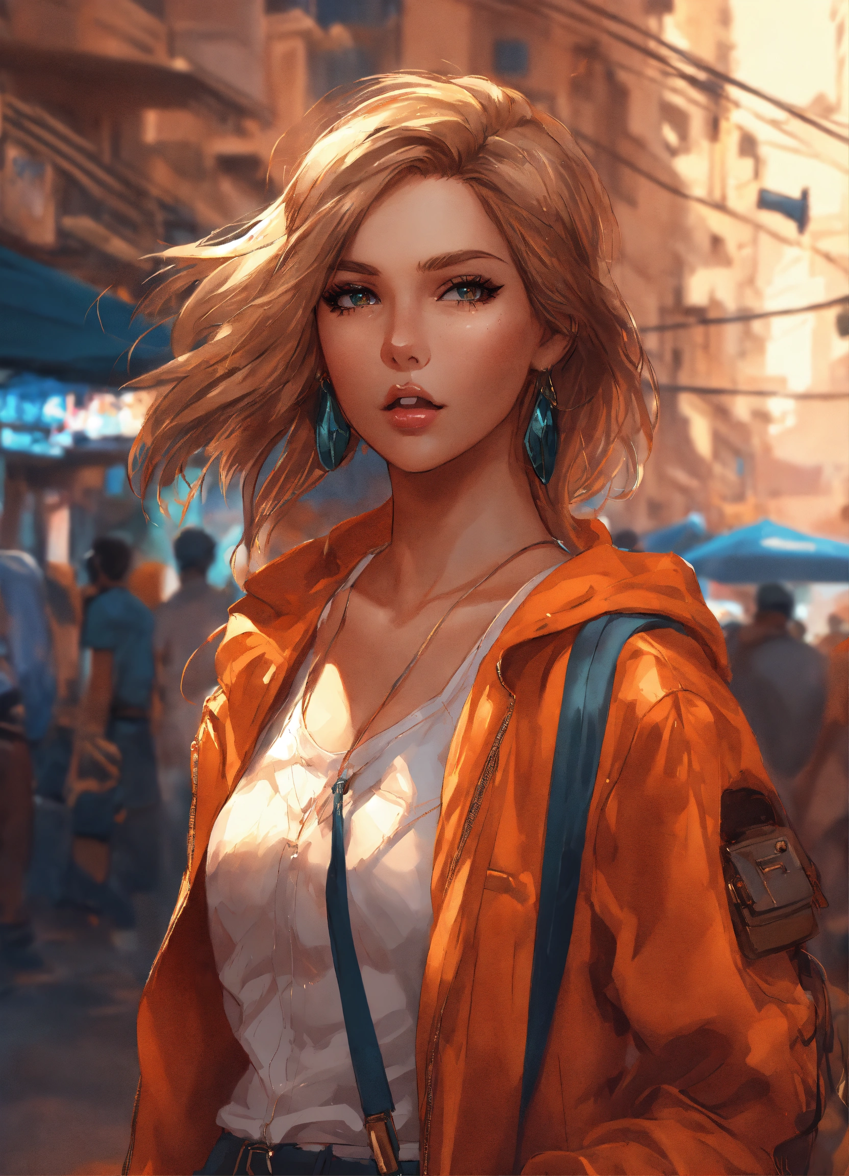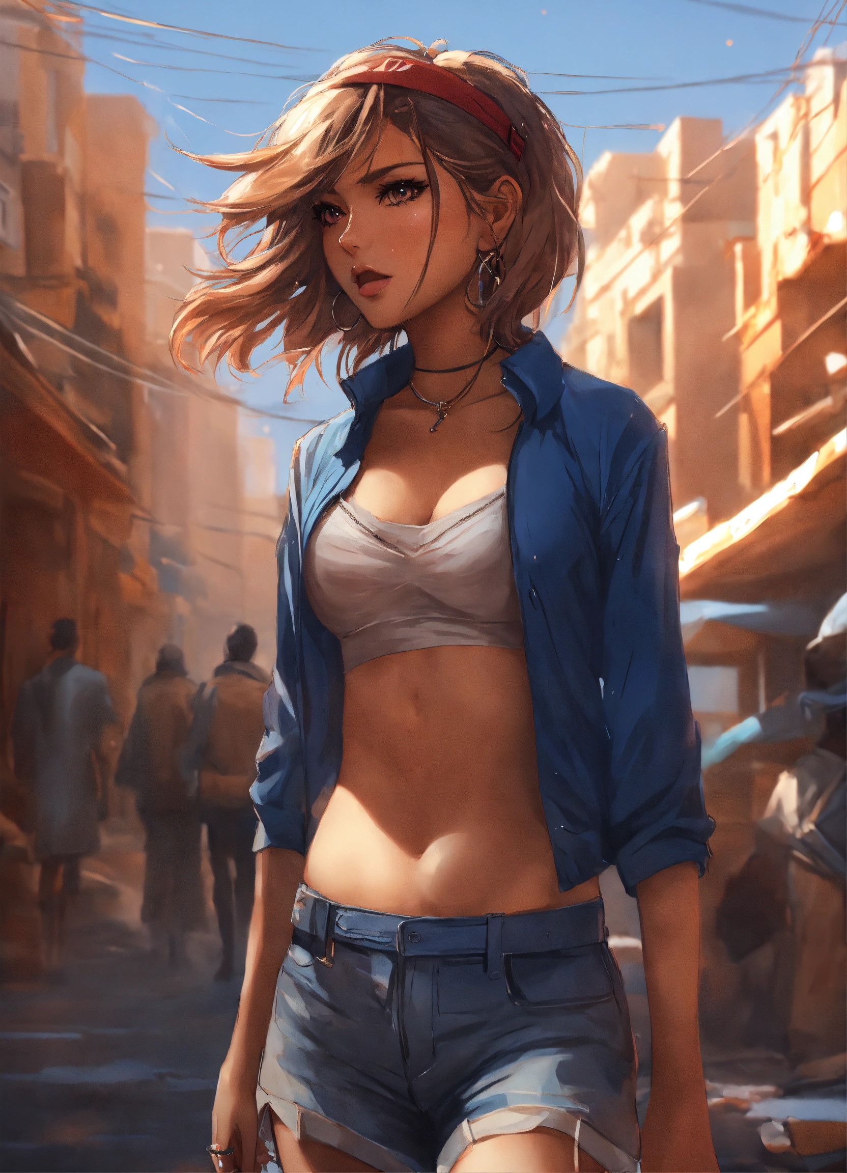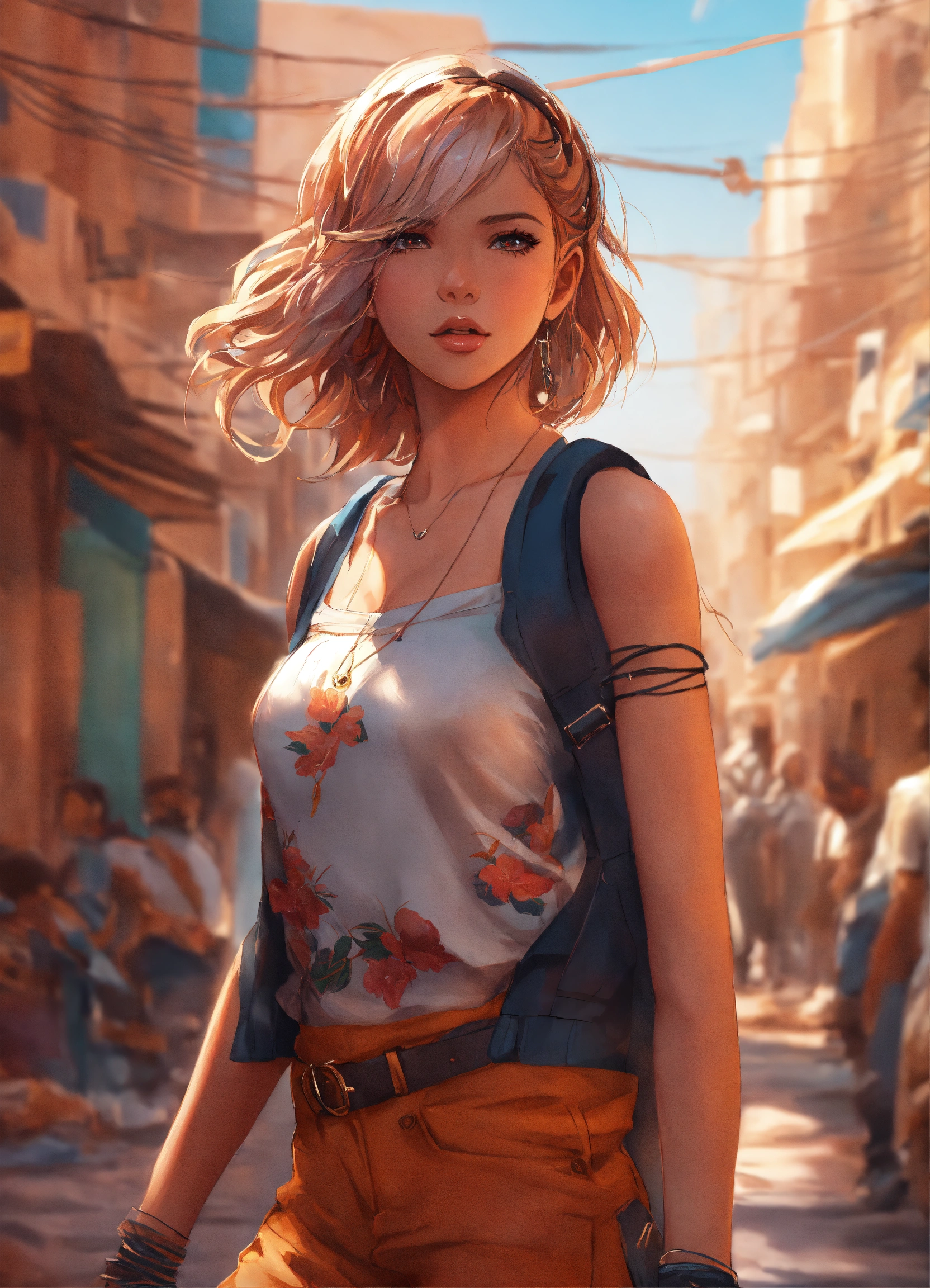 8k wallpaper of a beautiful anime girl, emily rtjakowski, in the streets of a city in the western sahara, by artgerm, intricate detail, trending on artstation, 8k, fluid motion, stunning shading