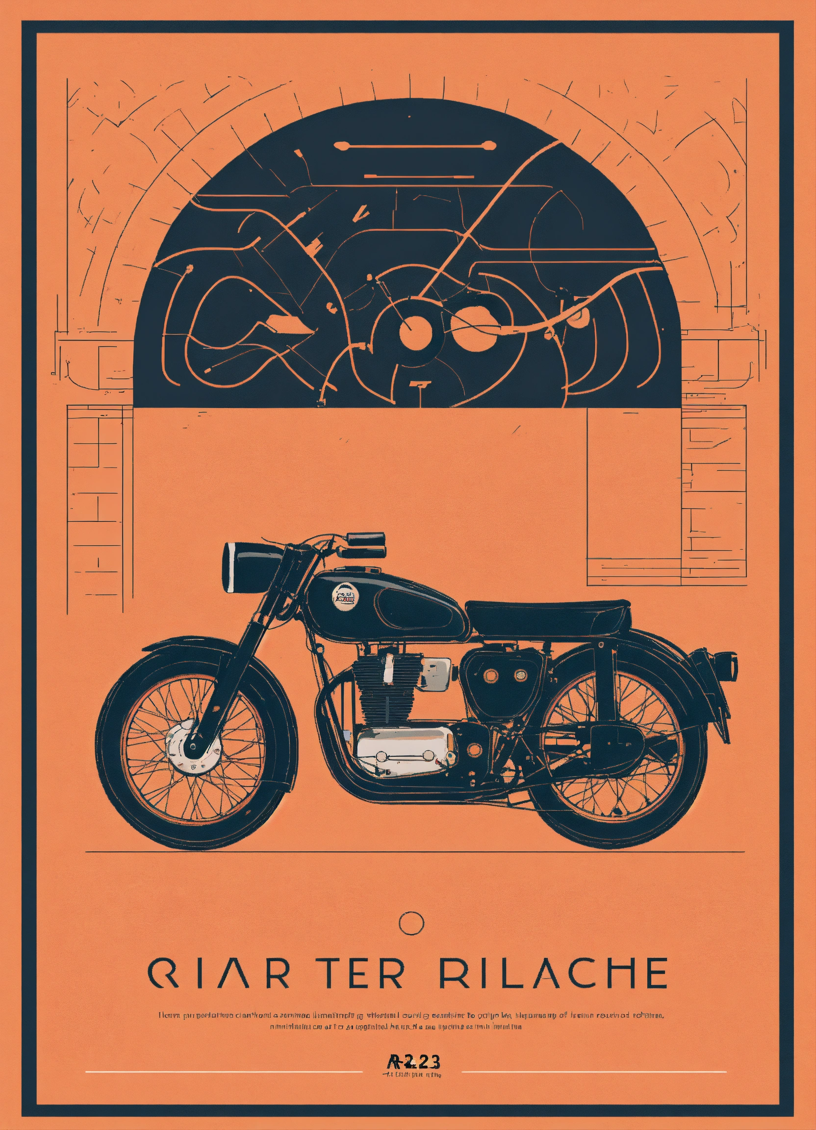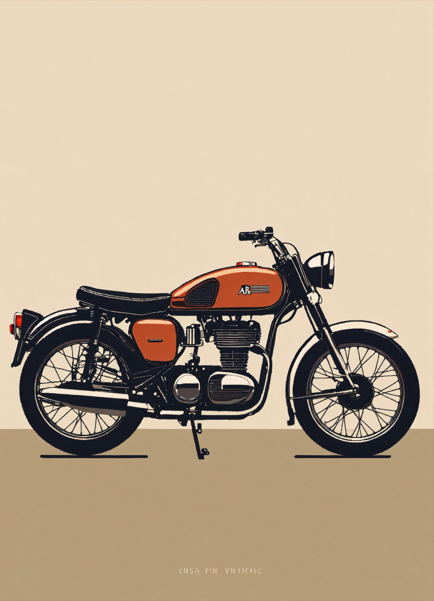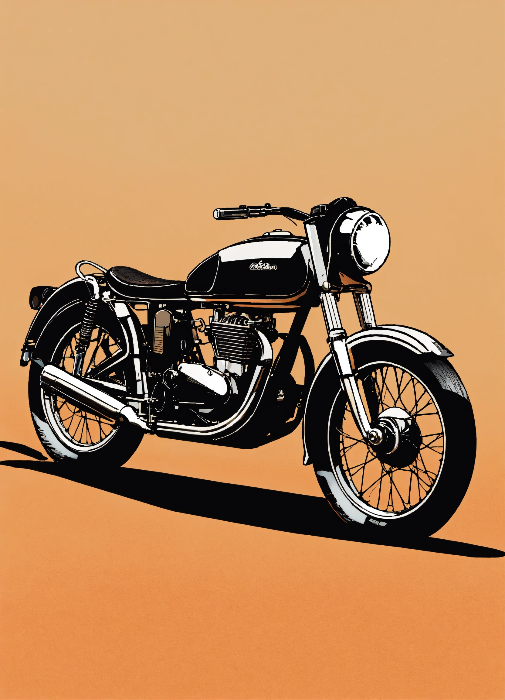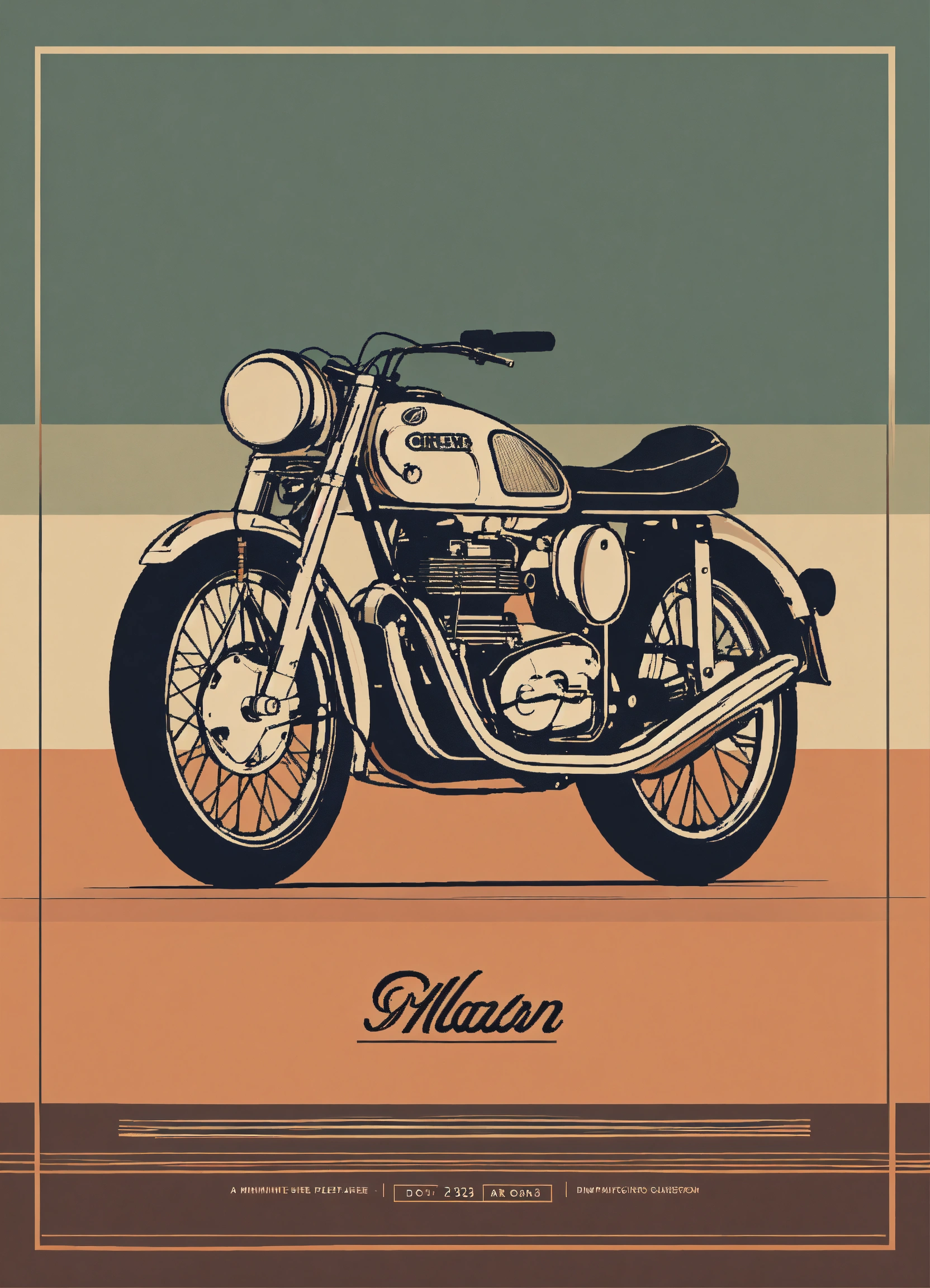 A minimalistic illustration of a vintage motorcycle, capturing its essence with clean lines and simplified forms, perfect for printing on art prints and tote bags. --ar 23