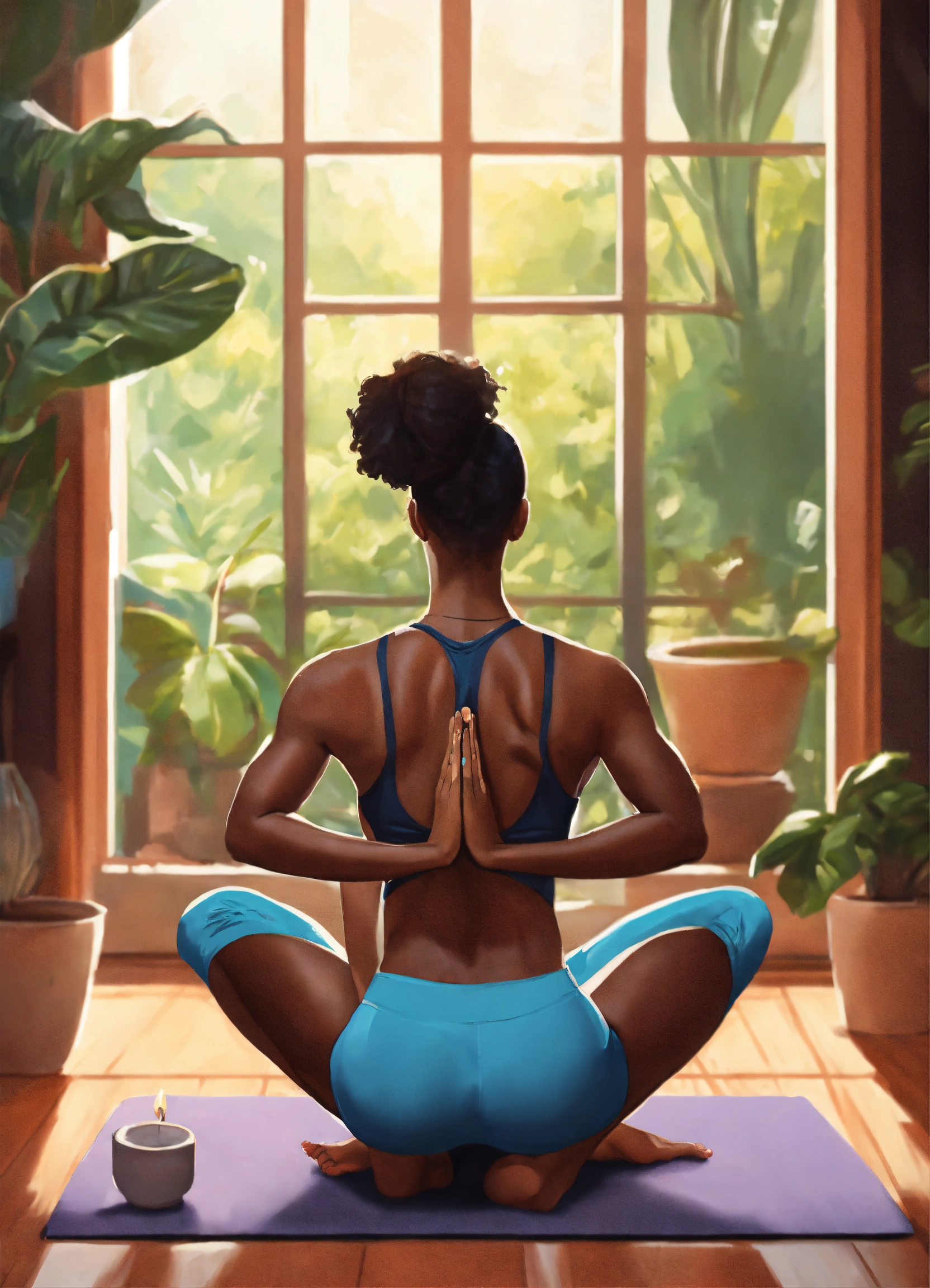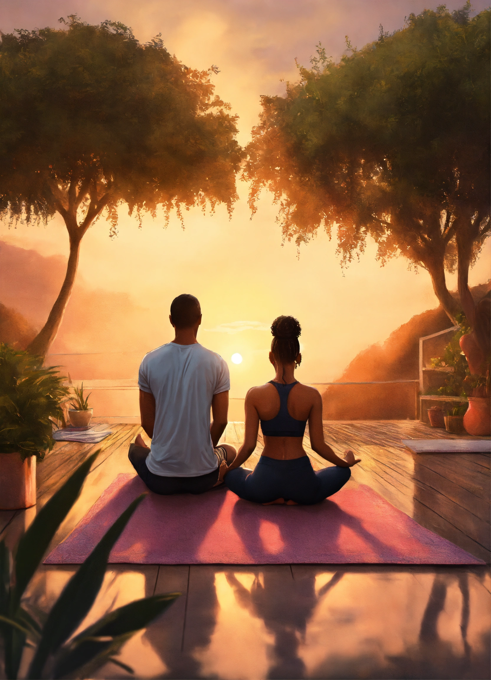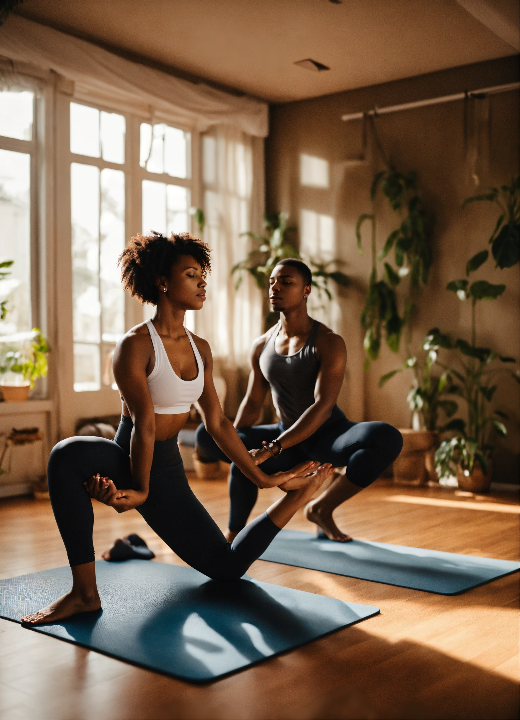 A young black couple in their thirty's practicing yoga