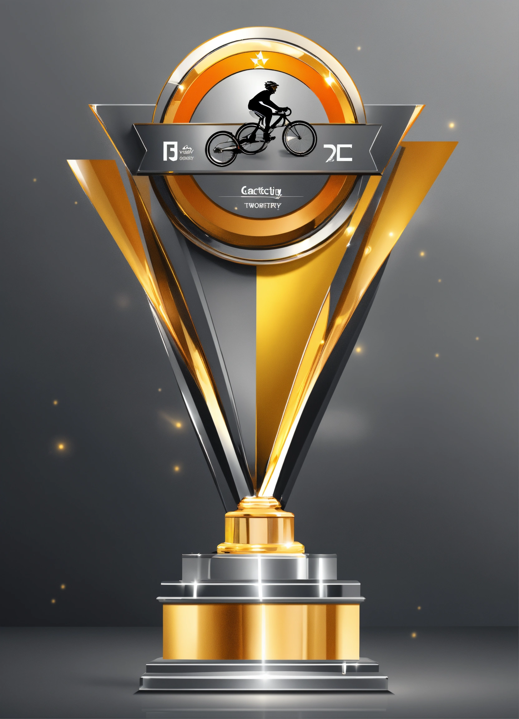 Shiny vector art glossy trophy design on a gray background for cycling competition