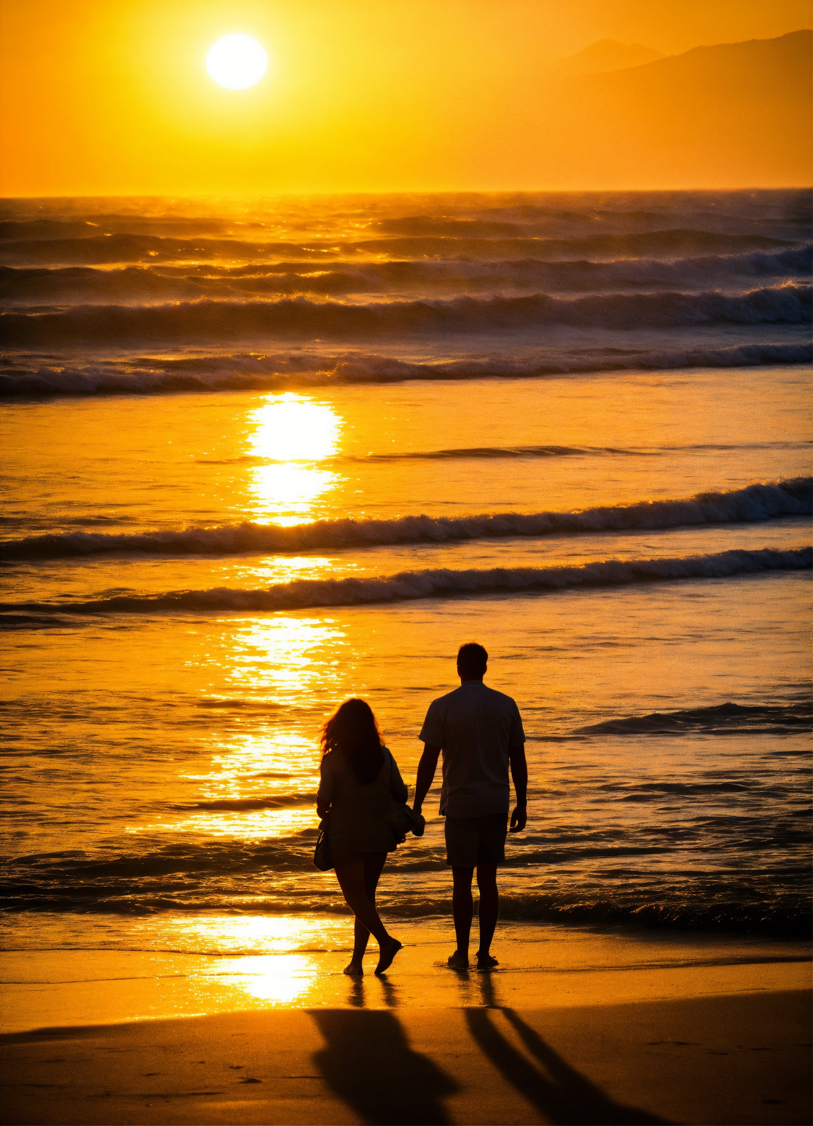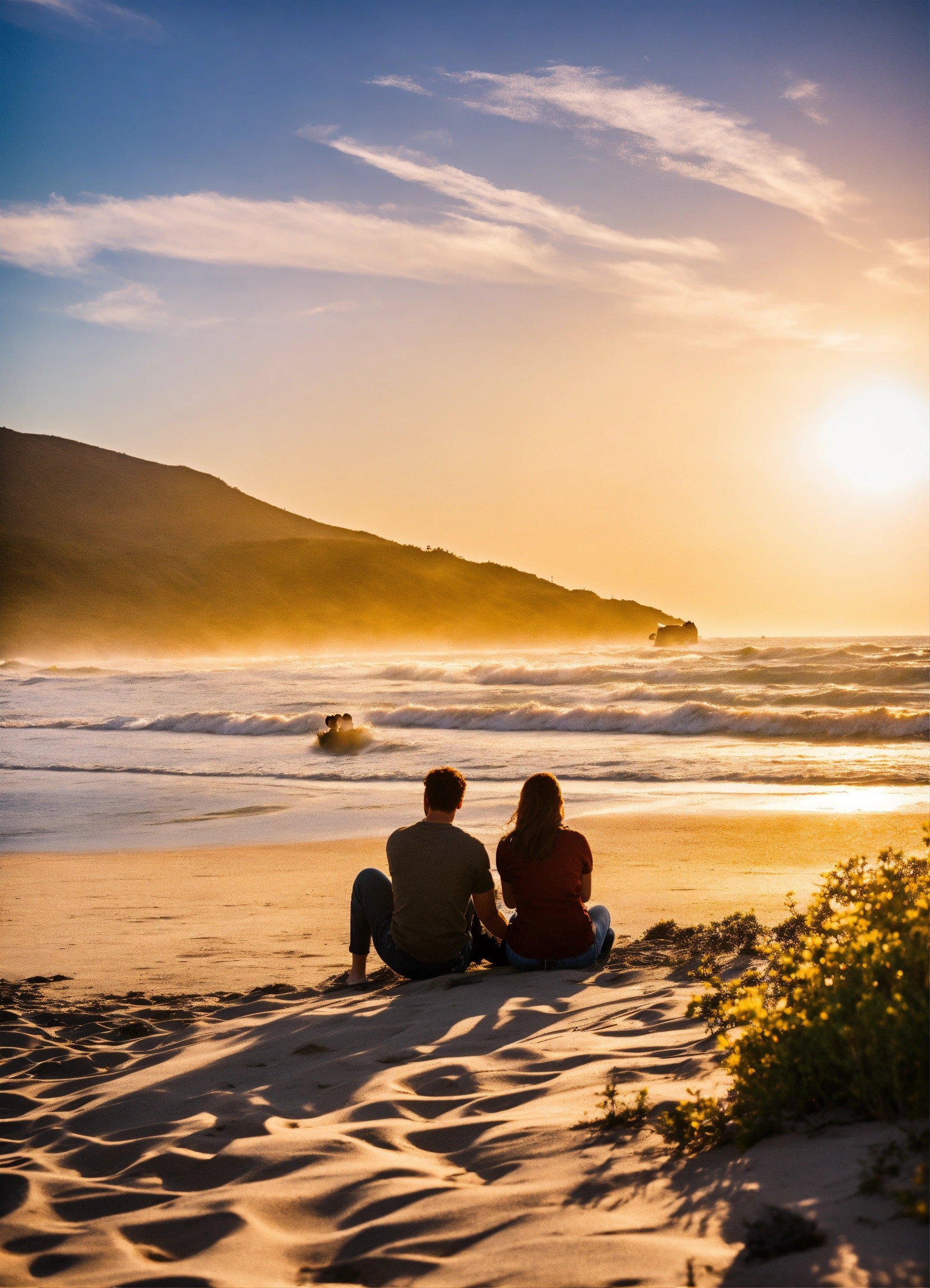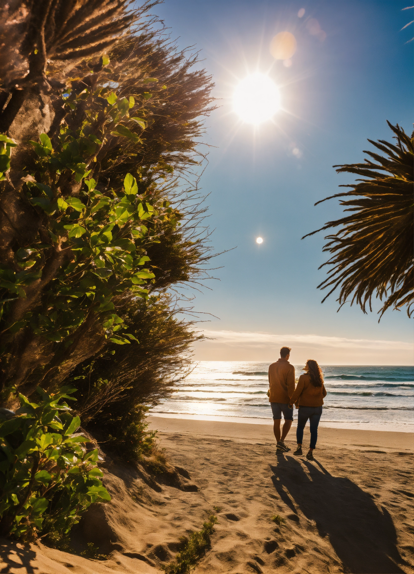 A couple enjoying nature with the sun shining ocean beach galaxy