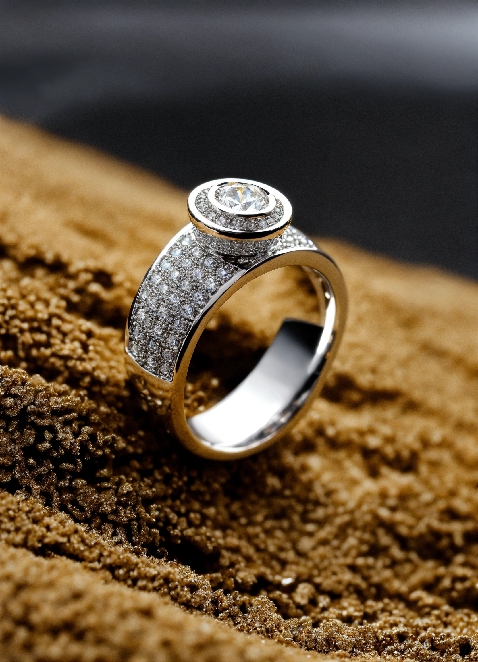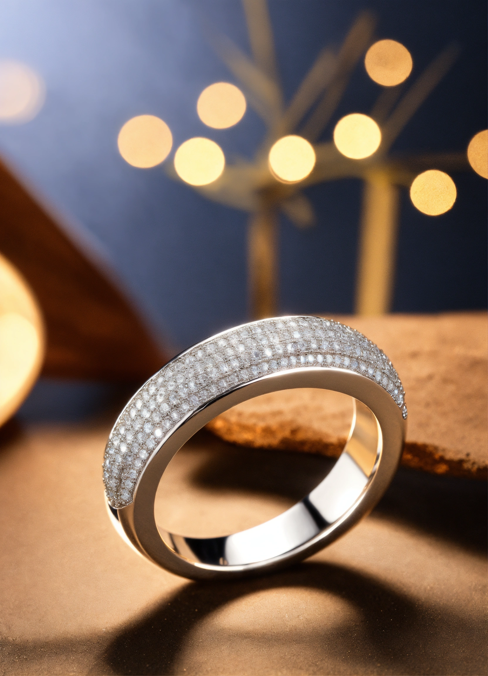 Jewellery design, modern style, create diamond silver ring with sand-stone finish in pave setting, no diamond, textured wedding ring, default-theme, --product-view --ultra-quality