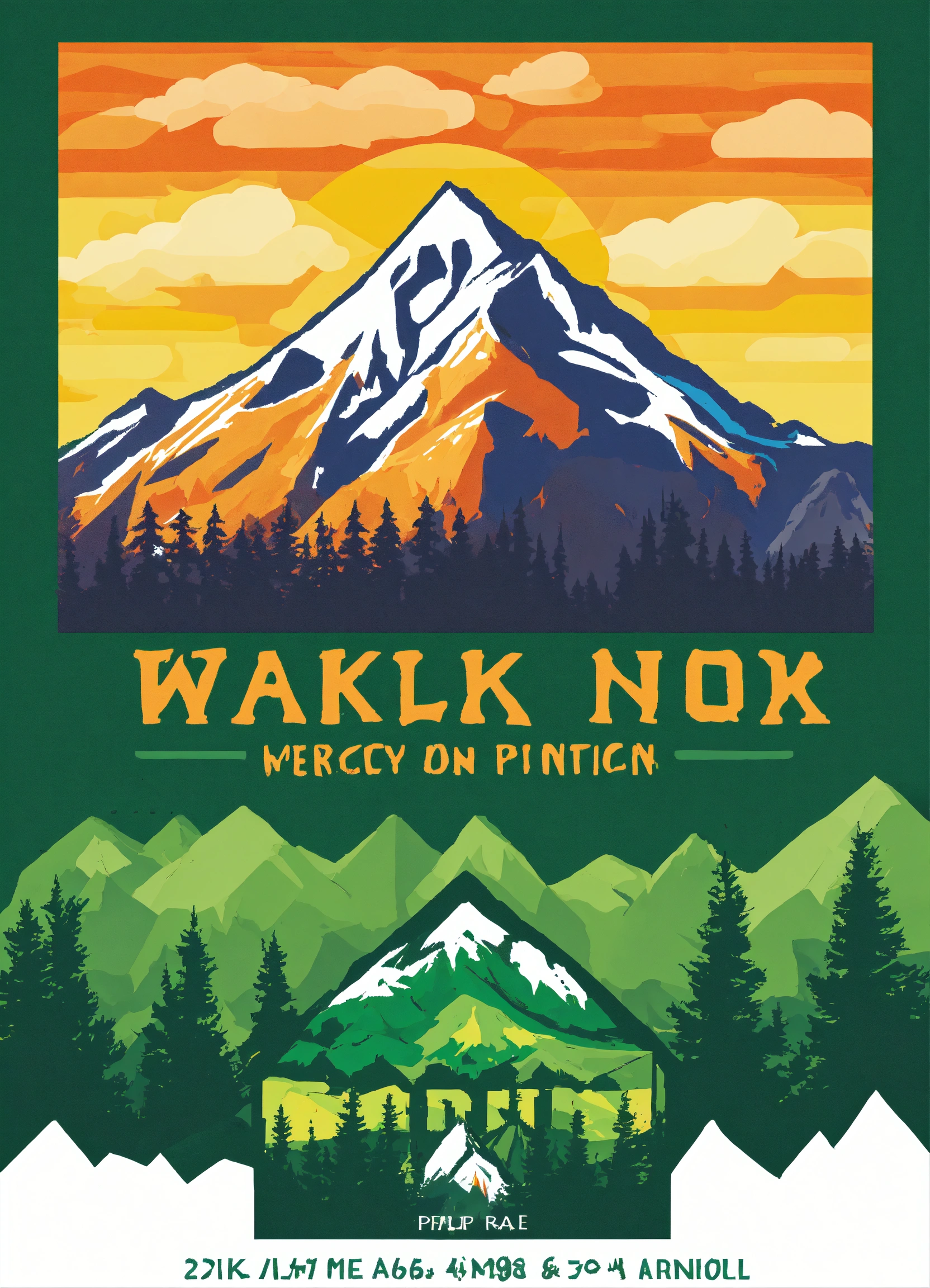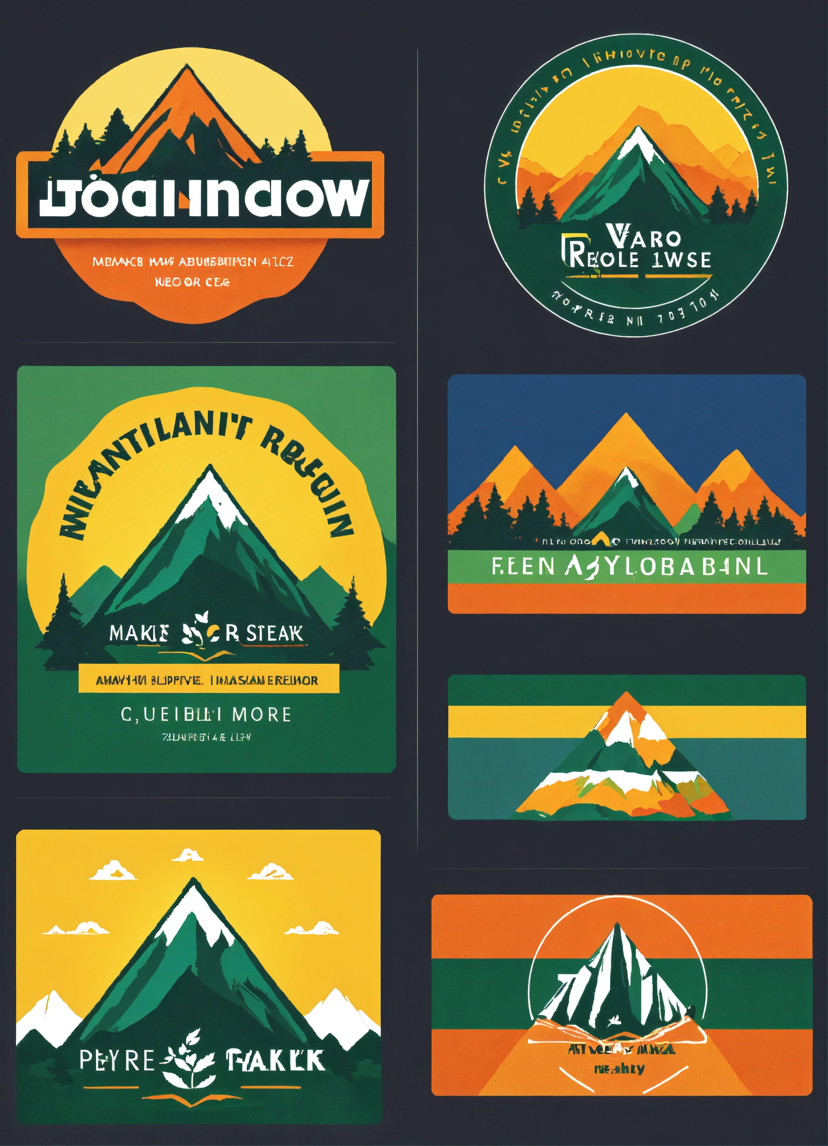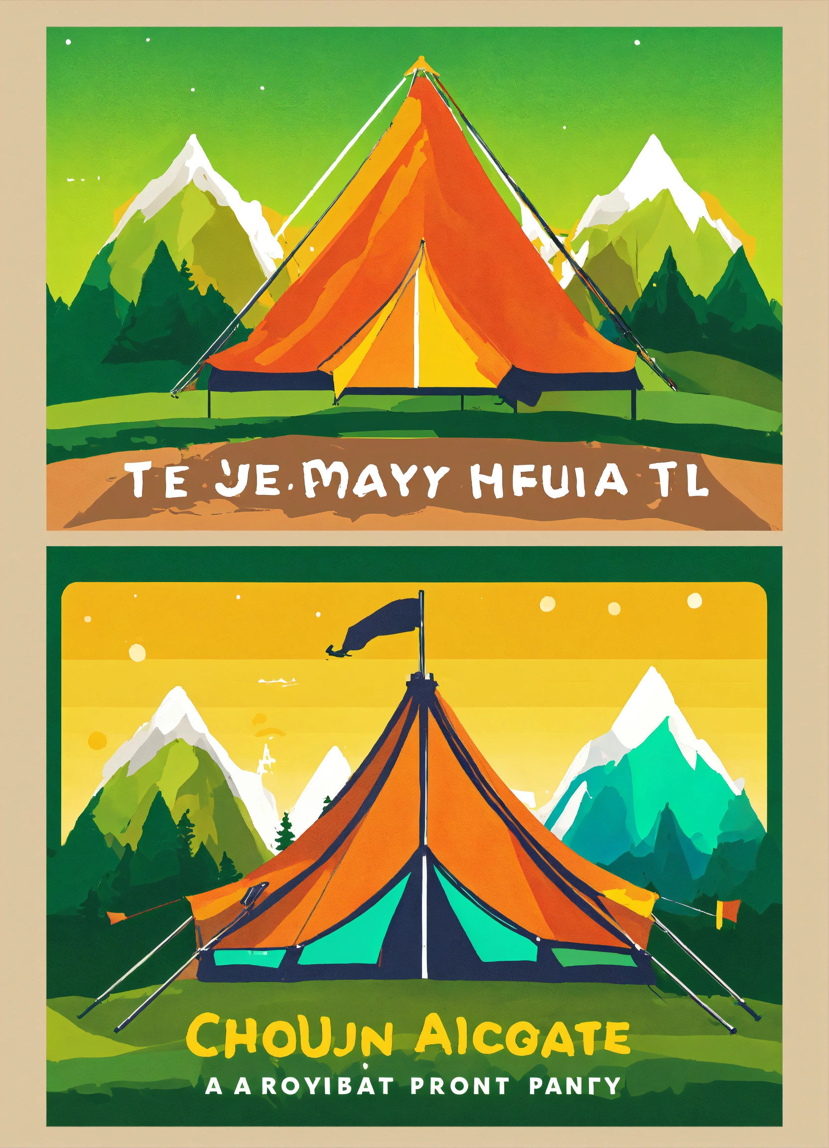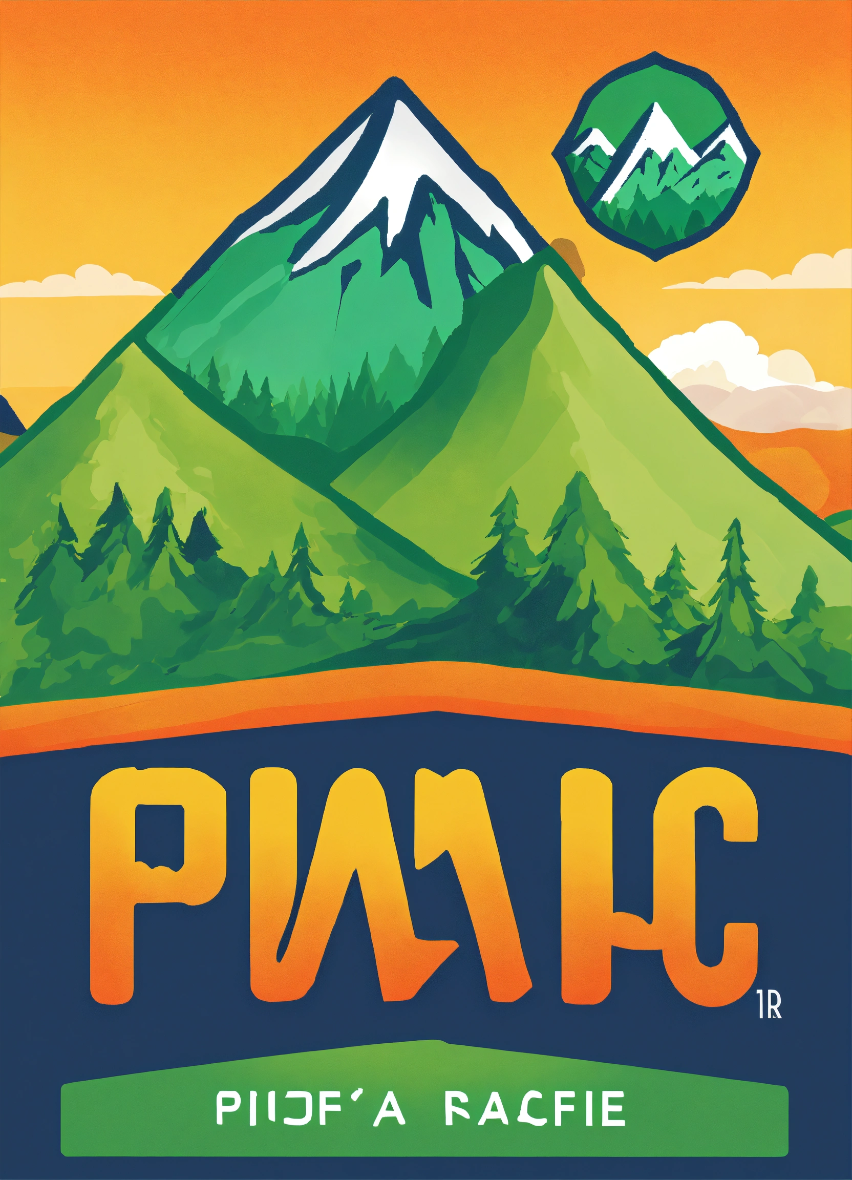 Create me a logo for my company picnic peak. the logo should be simple and easy to remember. the overall image should be smooth, pleasing to the eye, have a clean 4k look, with a blurred background. images of a mountain and a tent displayed below. make it memorable. bright colors. yellow. green. orange.