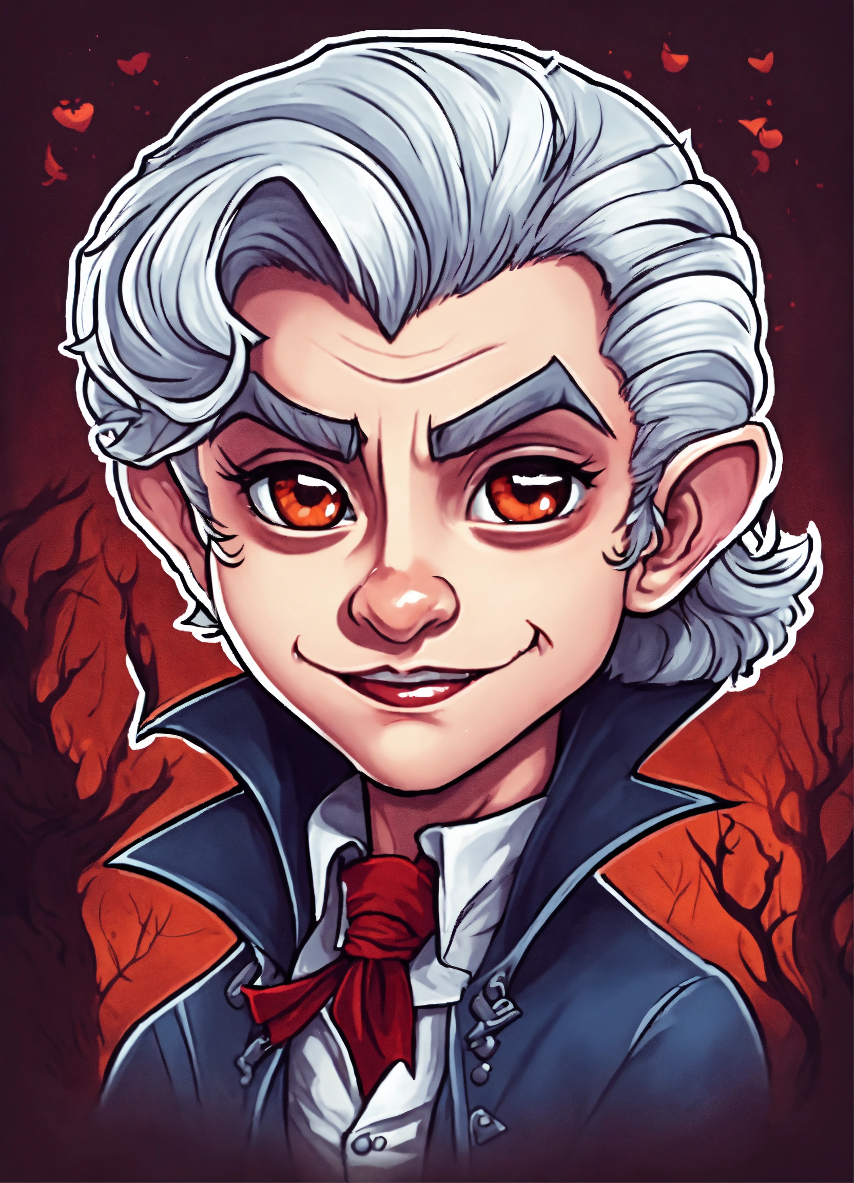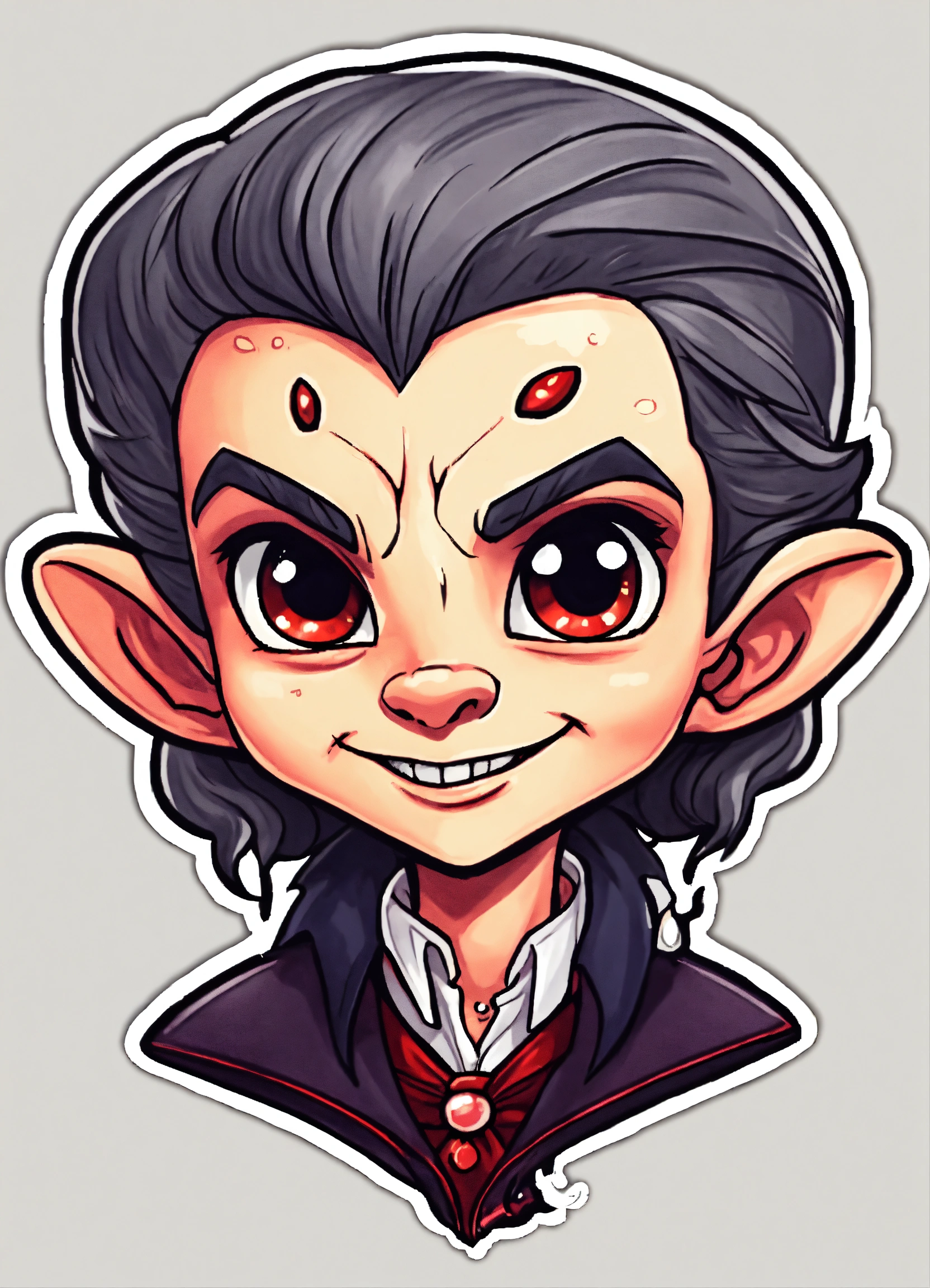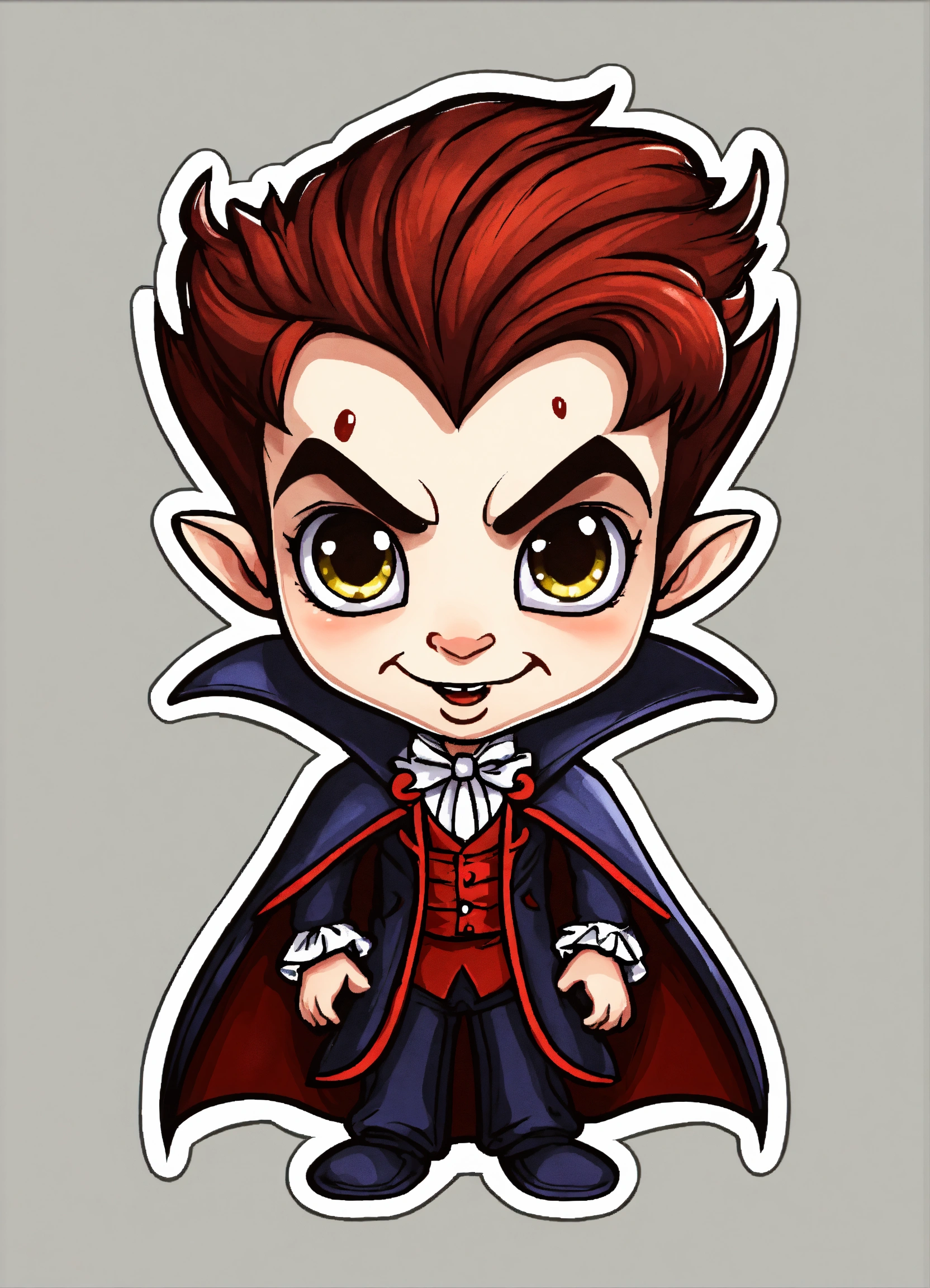 Generate a cute vampire illustration, 4k resolution, cartoon-sticker style with clear lines on a pure white background suitable for a children's coloring book.