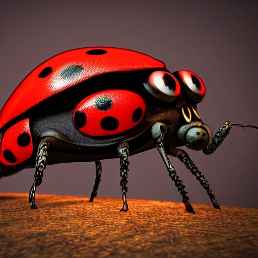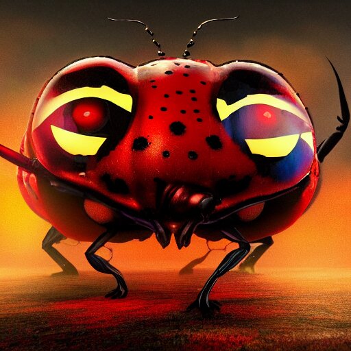 High detail ladybug as a monster, fantasy art style, 4 k scary atmosphere, nightmare - like dream raytracing