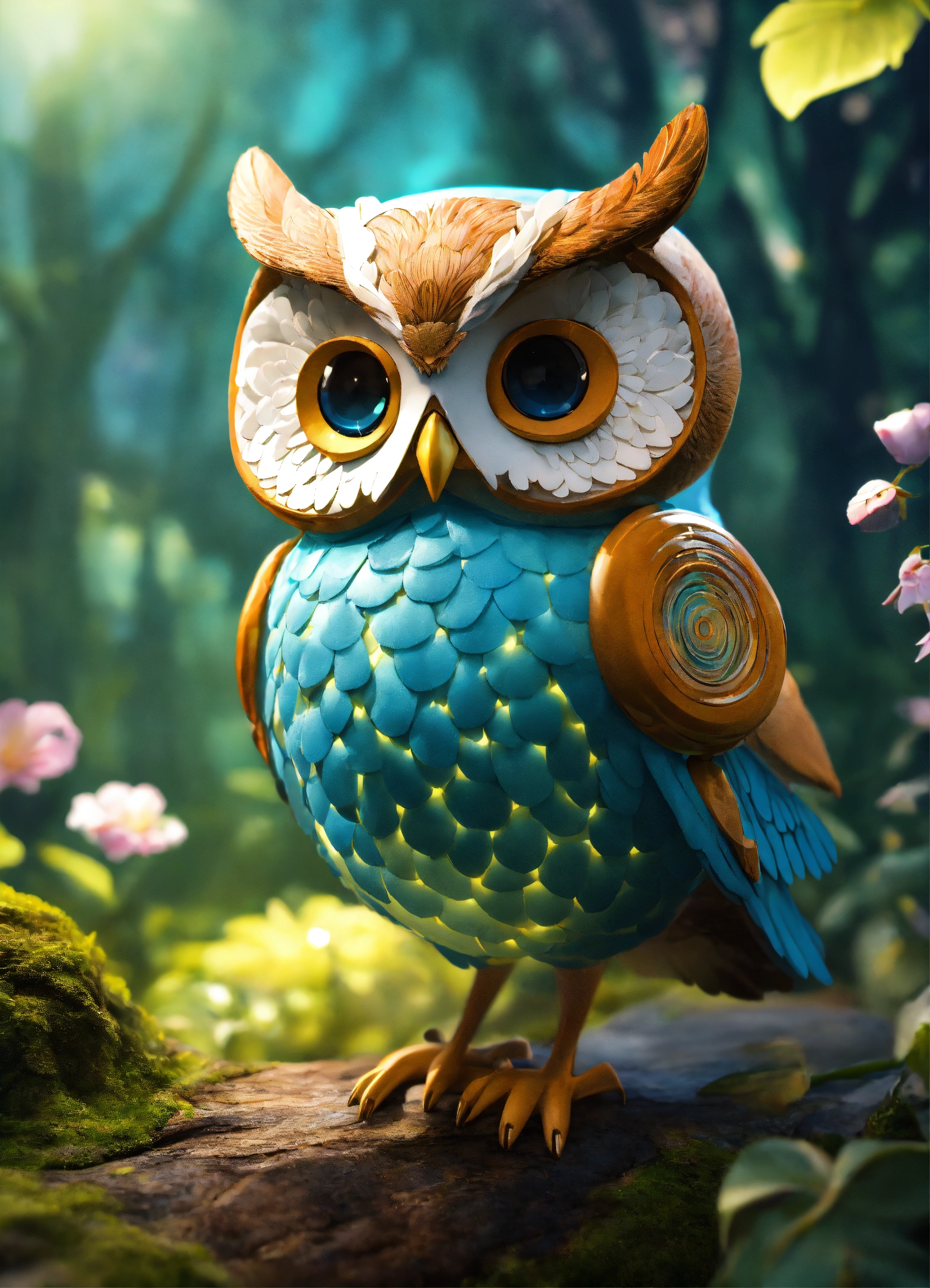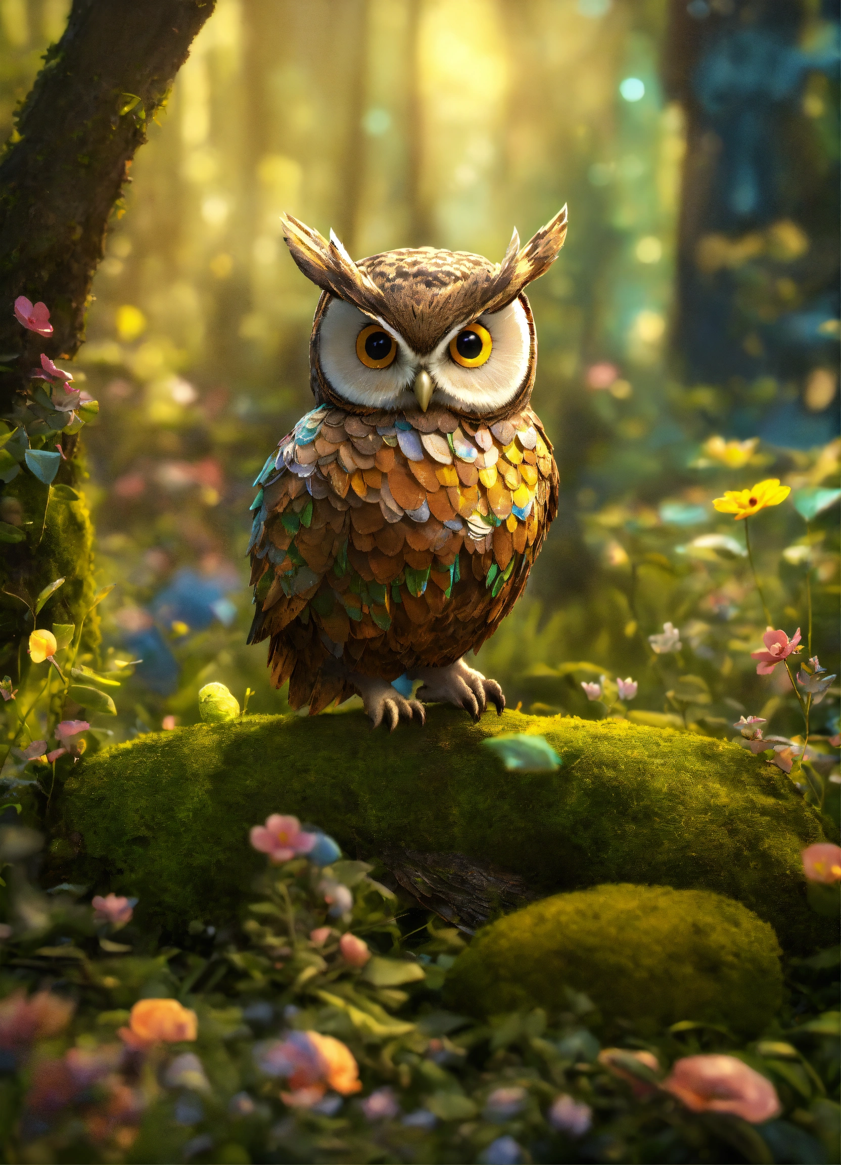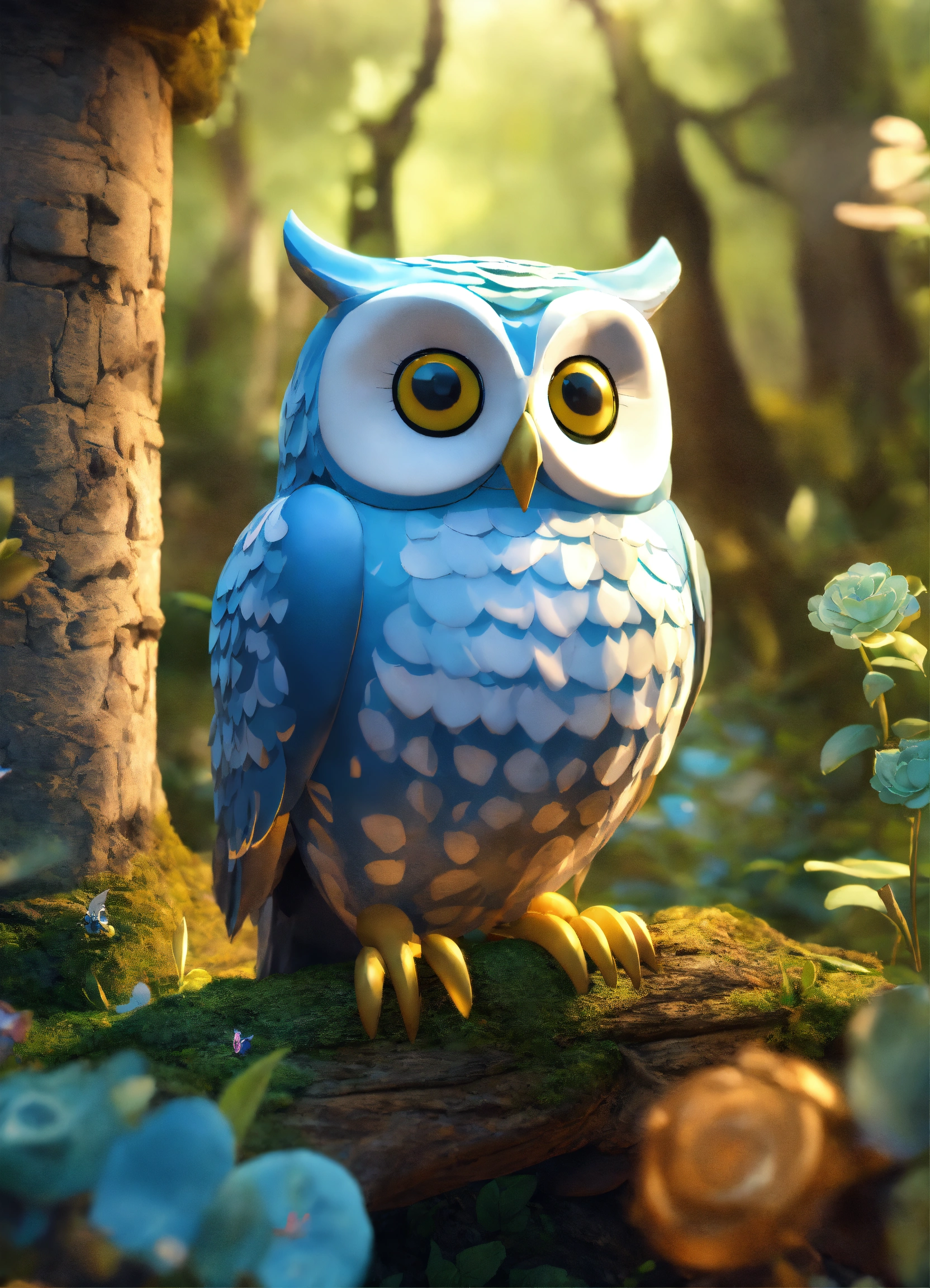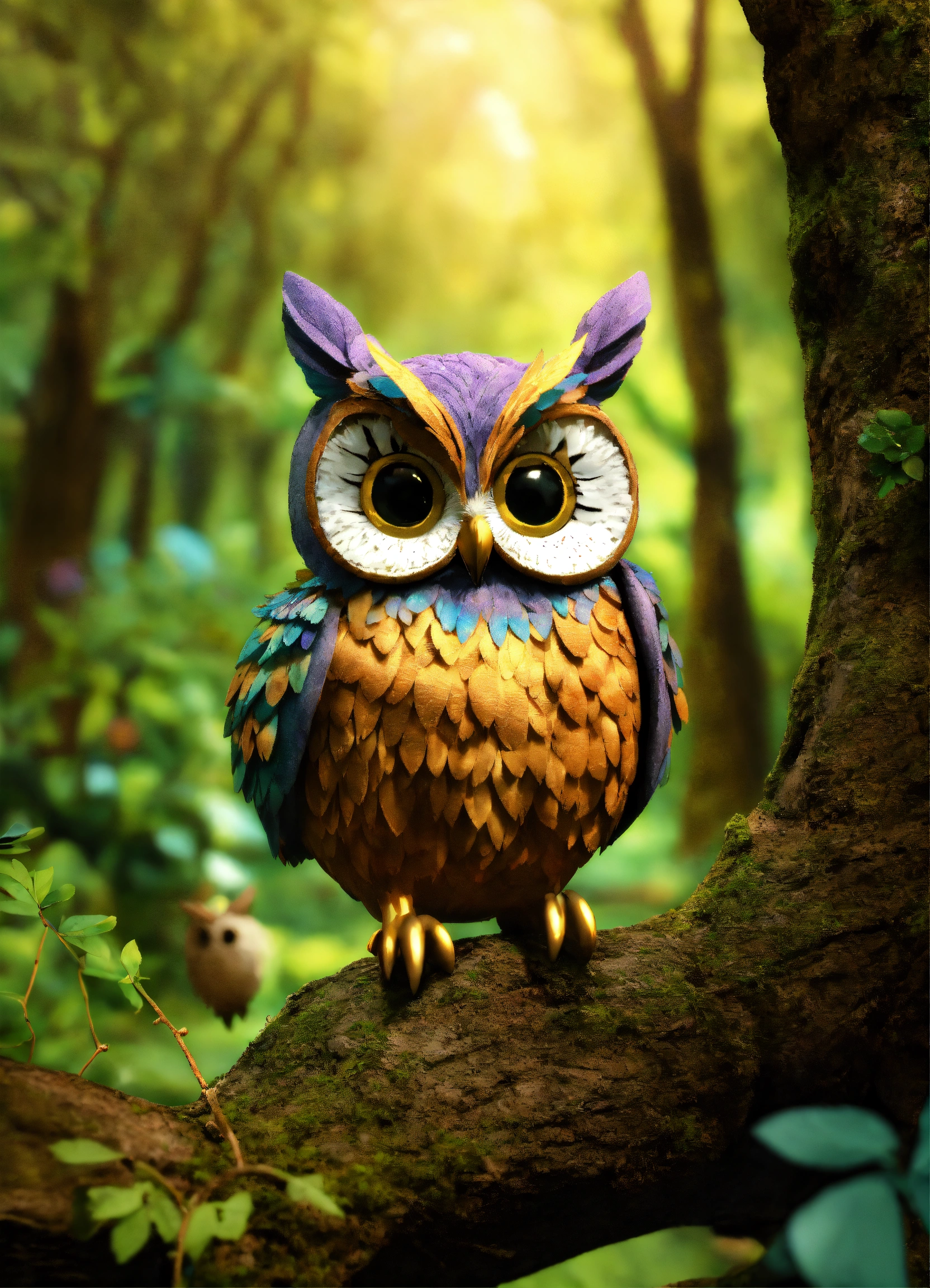 The image must have luna the owl enchanted flying enchanted florest the curious friends decide to explore without hesitation resolution 3d