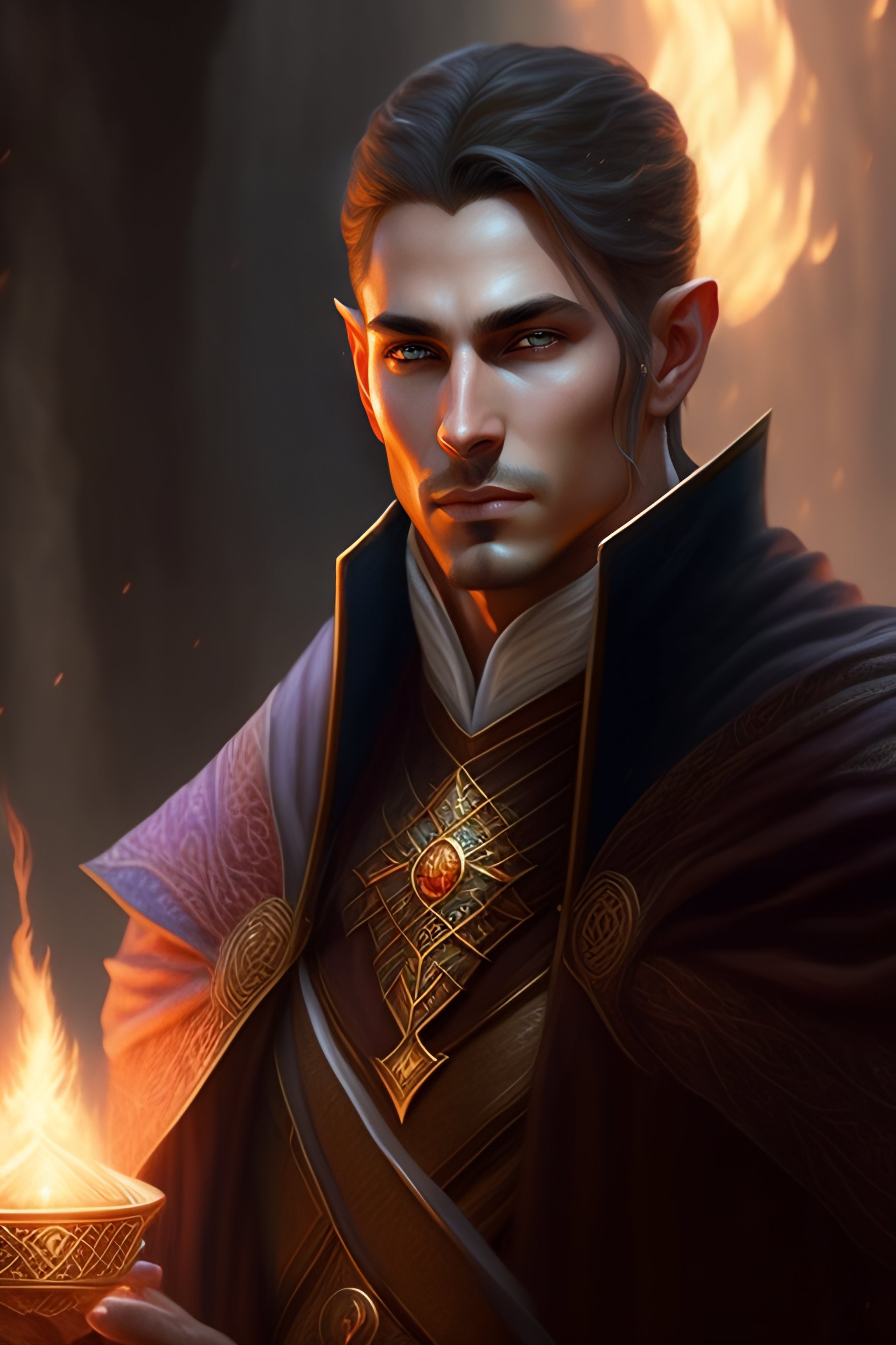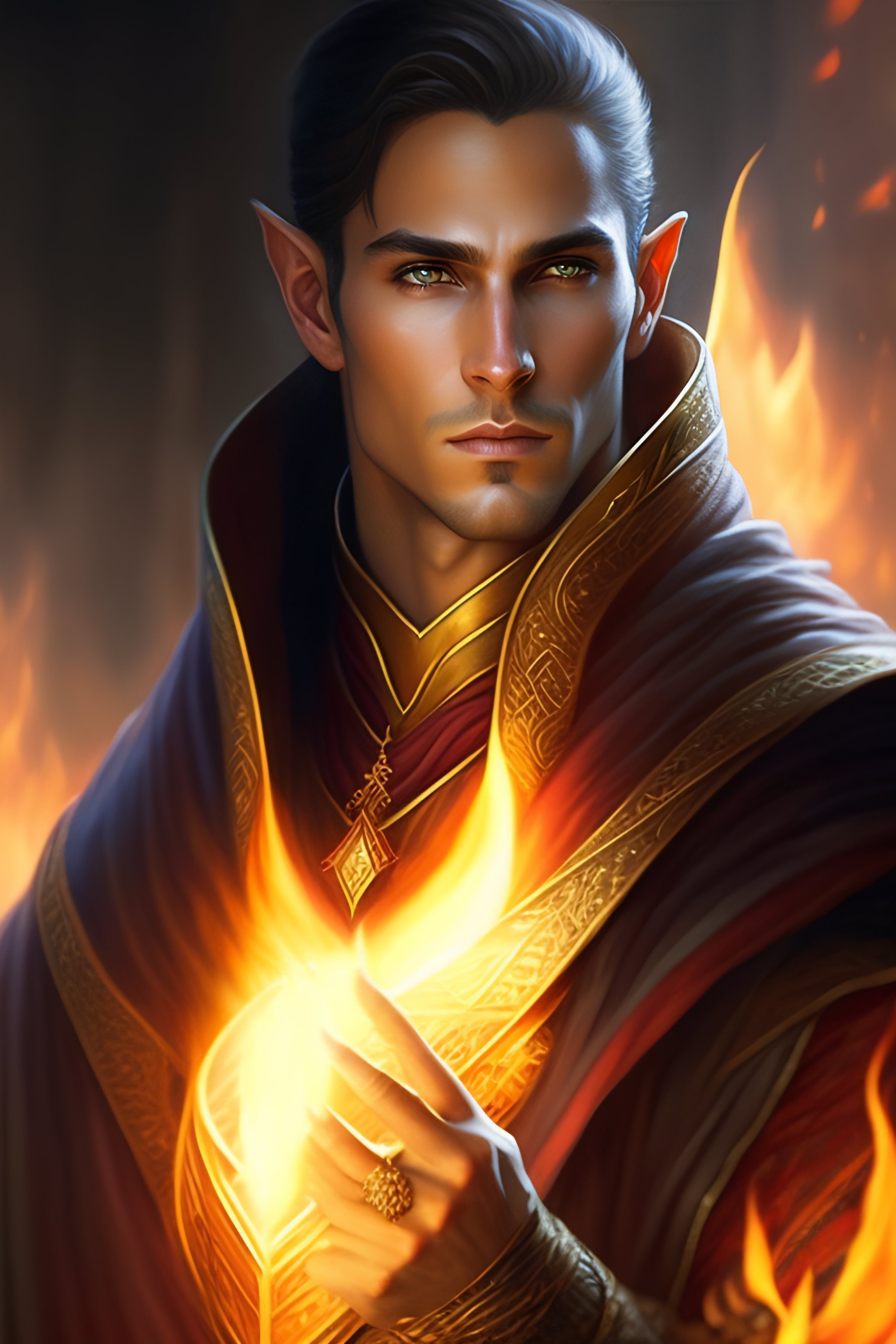 A male elvish sorcerer with ring of fire on his finger | | pencil sketch, realistic shaded, fine details, realistic shaded lighting poster by greg rutkowski, magali villeneuve, artgerm, jeremy lipkin and michael garmash and rob rey