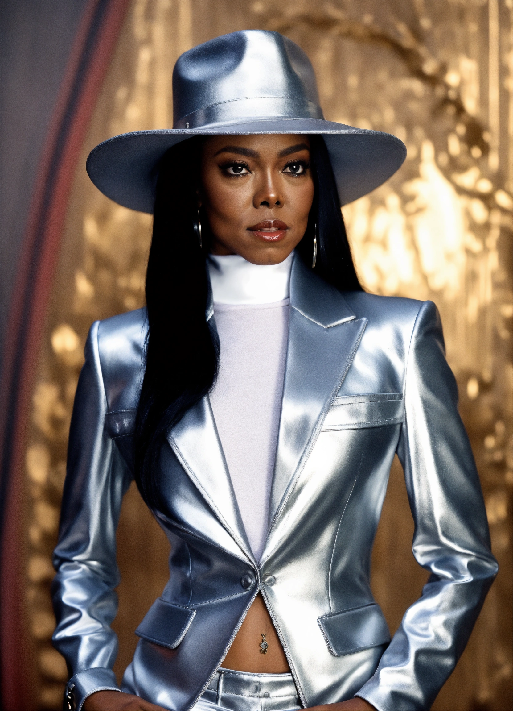 Aaliyah metallic silver janet jackson style suit with hat