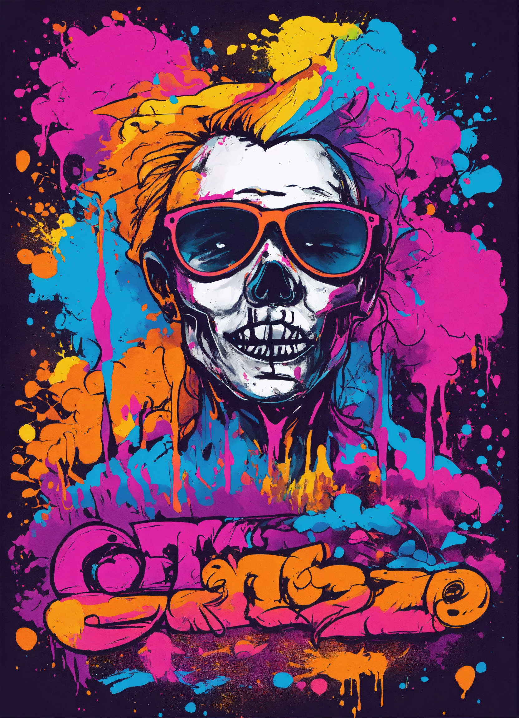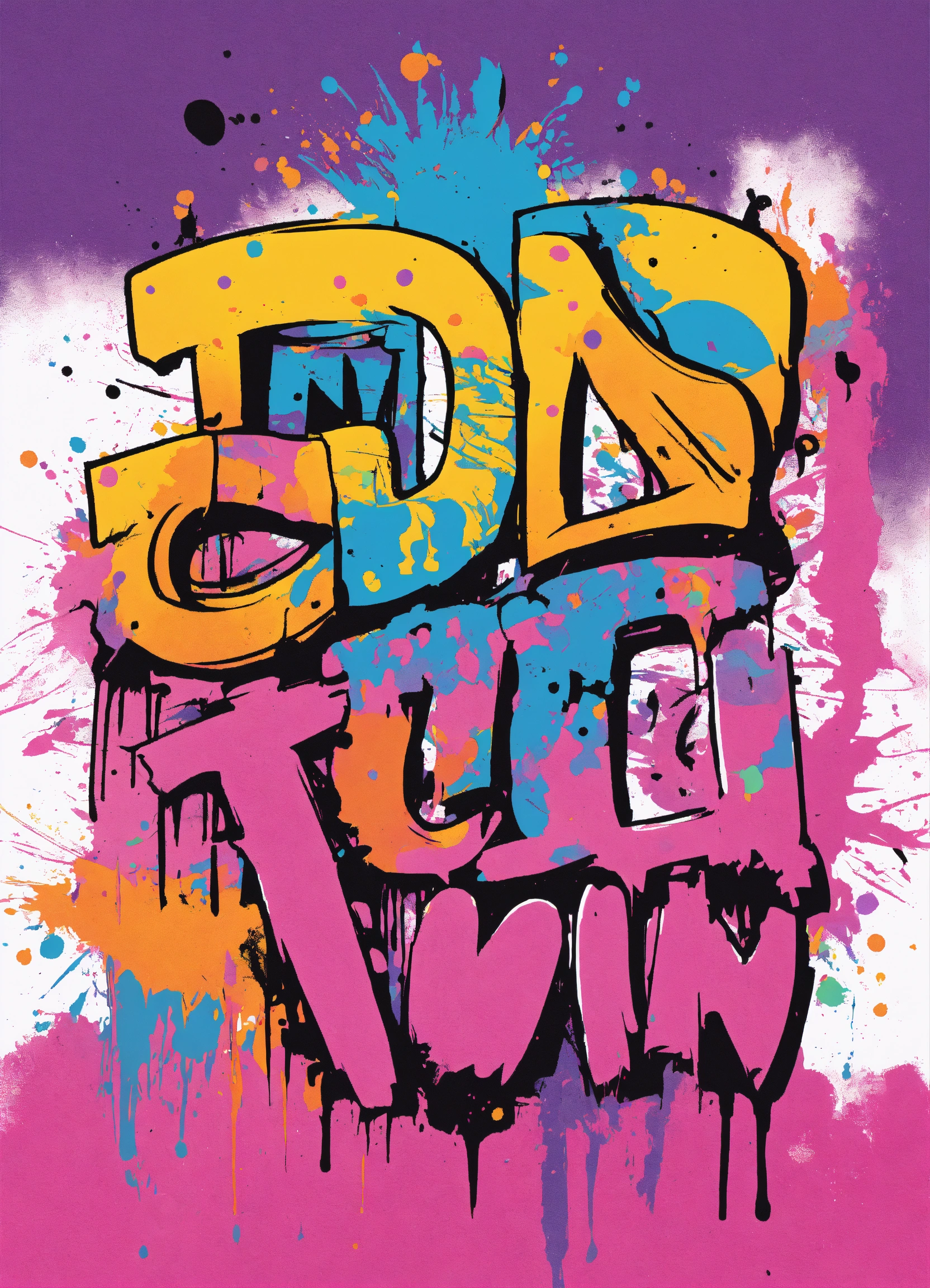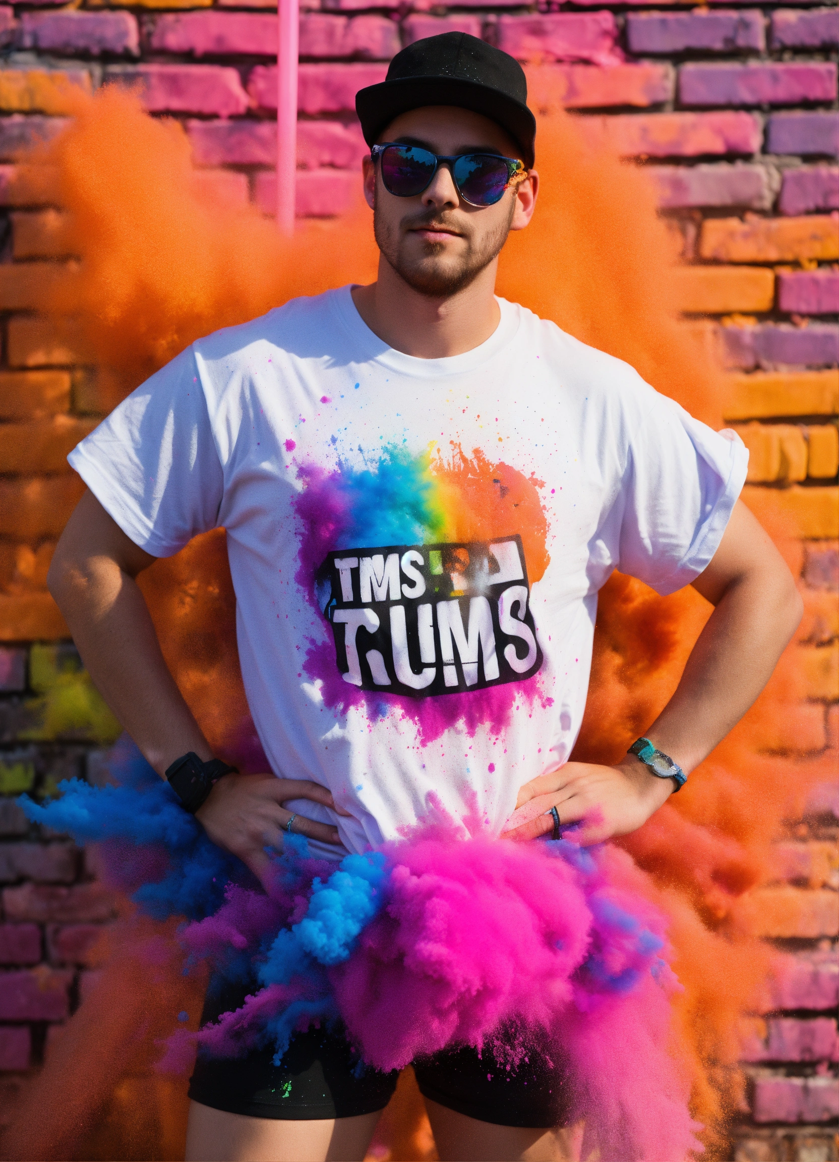 T-shirt design for a color run. on a white t-shirt, with black, pink, blue, orange and purple colors. text on the shirt should say tms on top and colorpalooza underneath it. theme should be graffitti