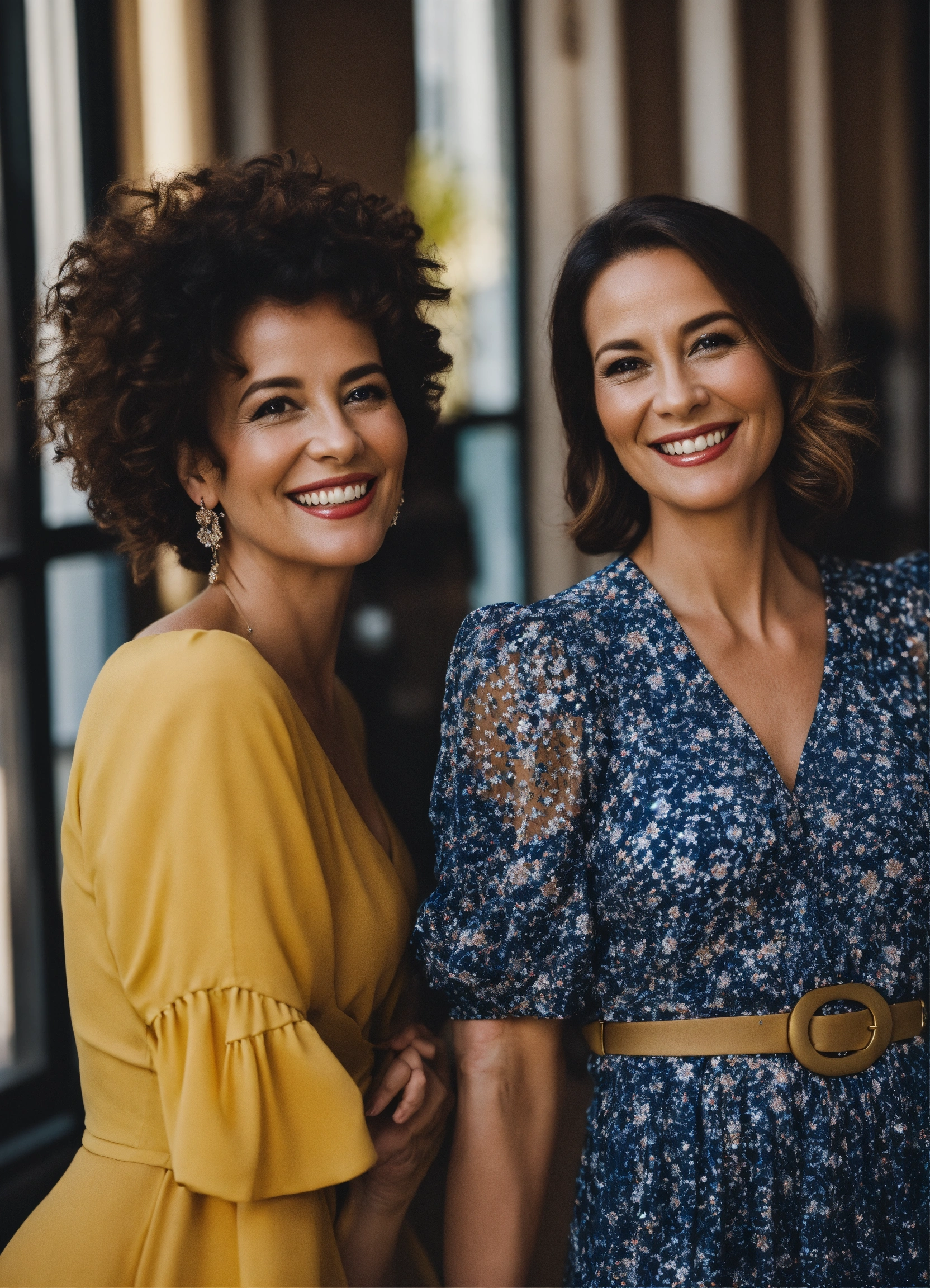 joyful ladies smiling