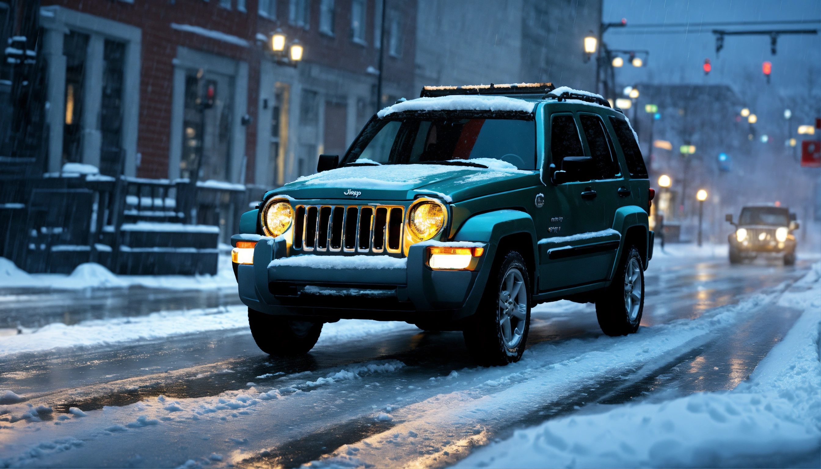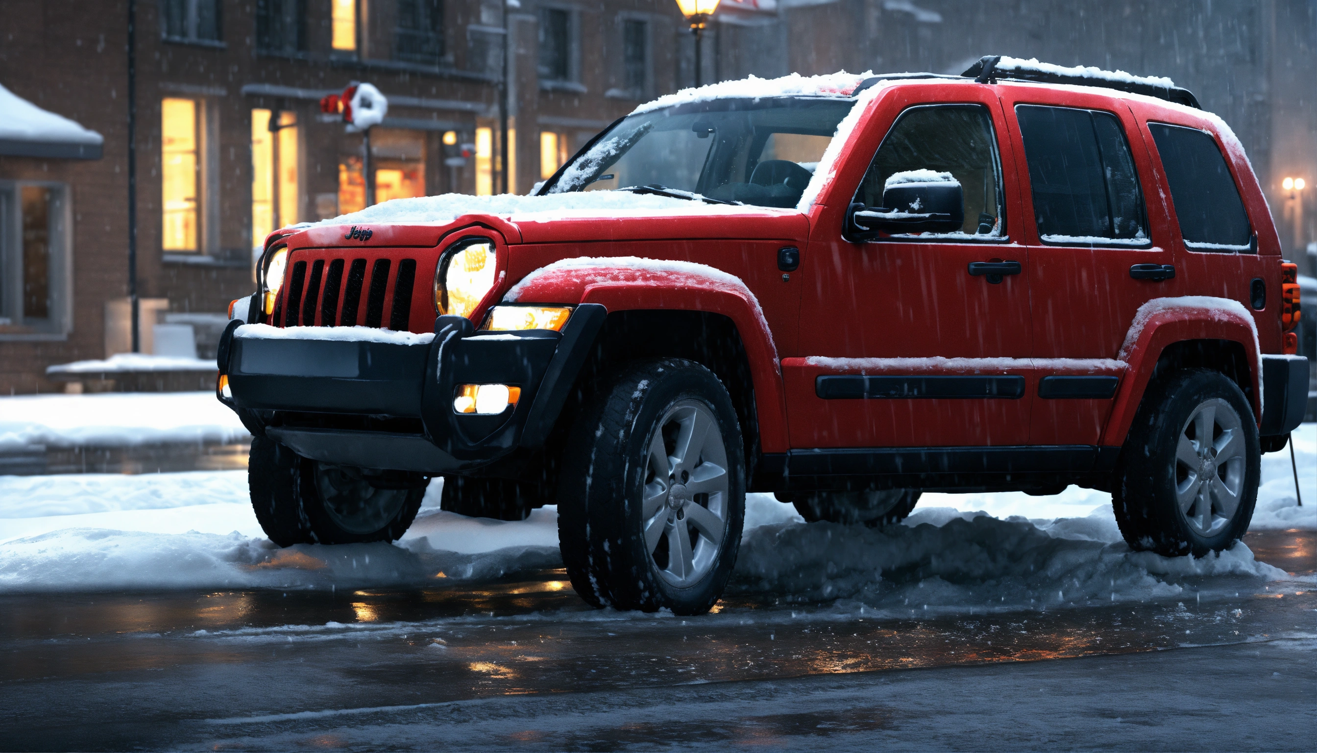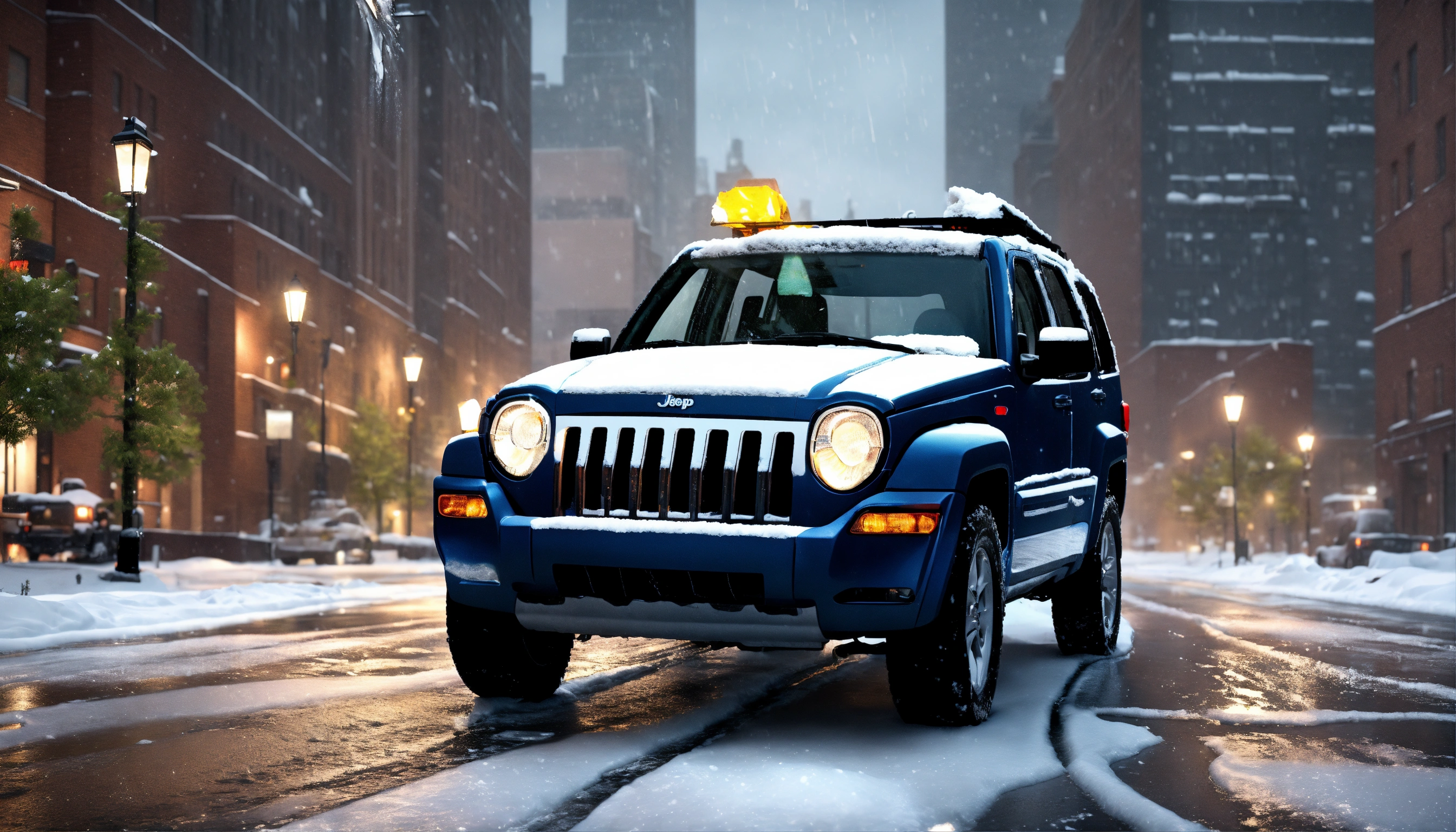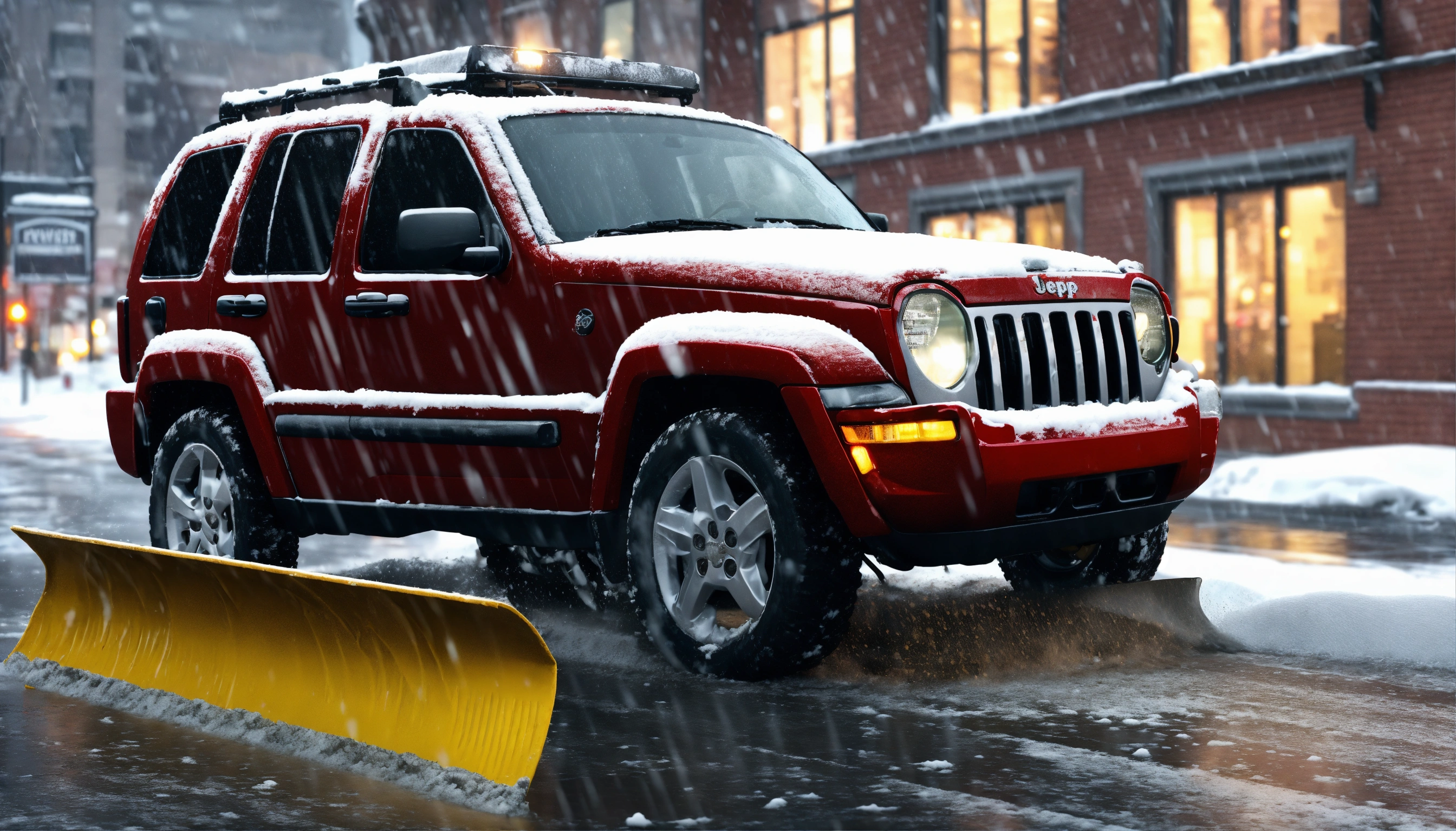 Jeep liberty 2006 with mounted snow plow in front