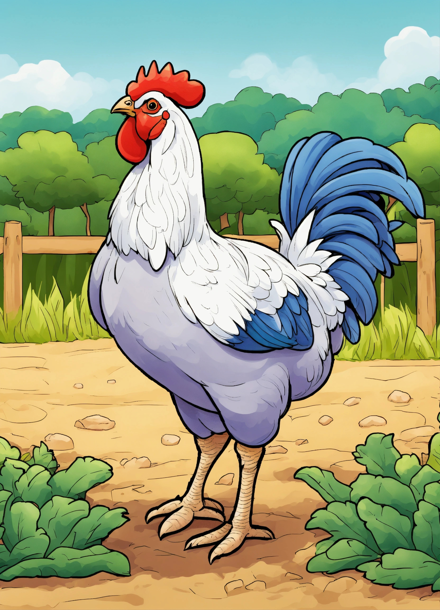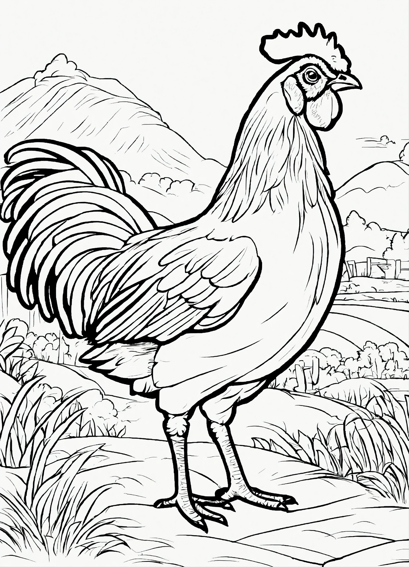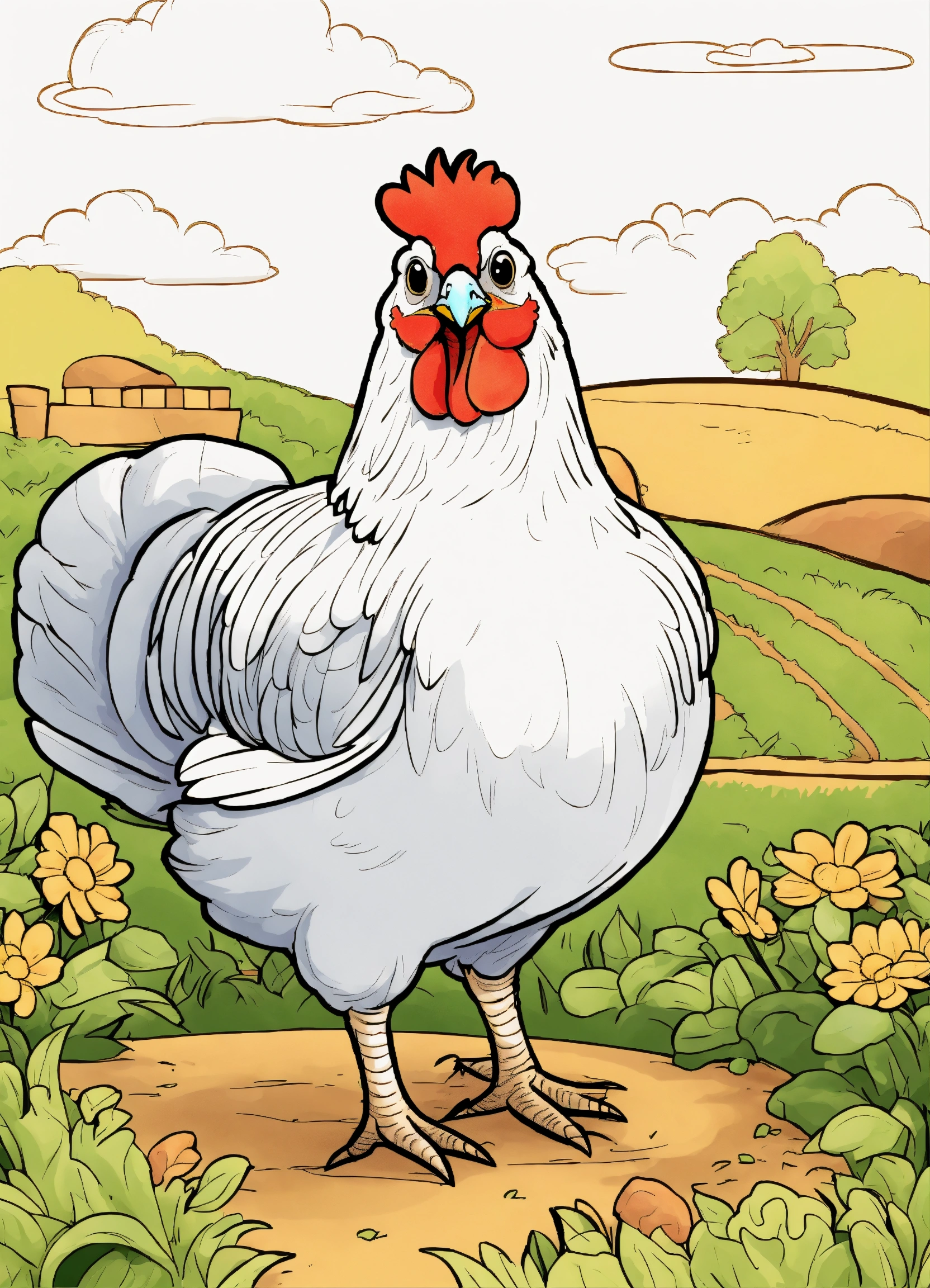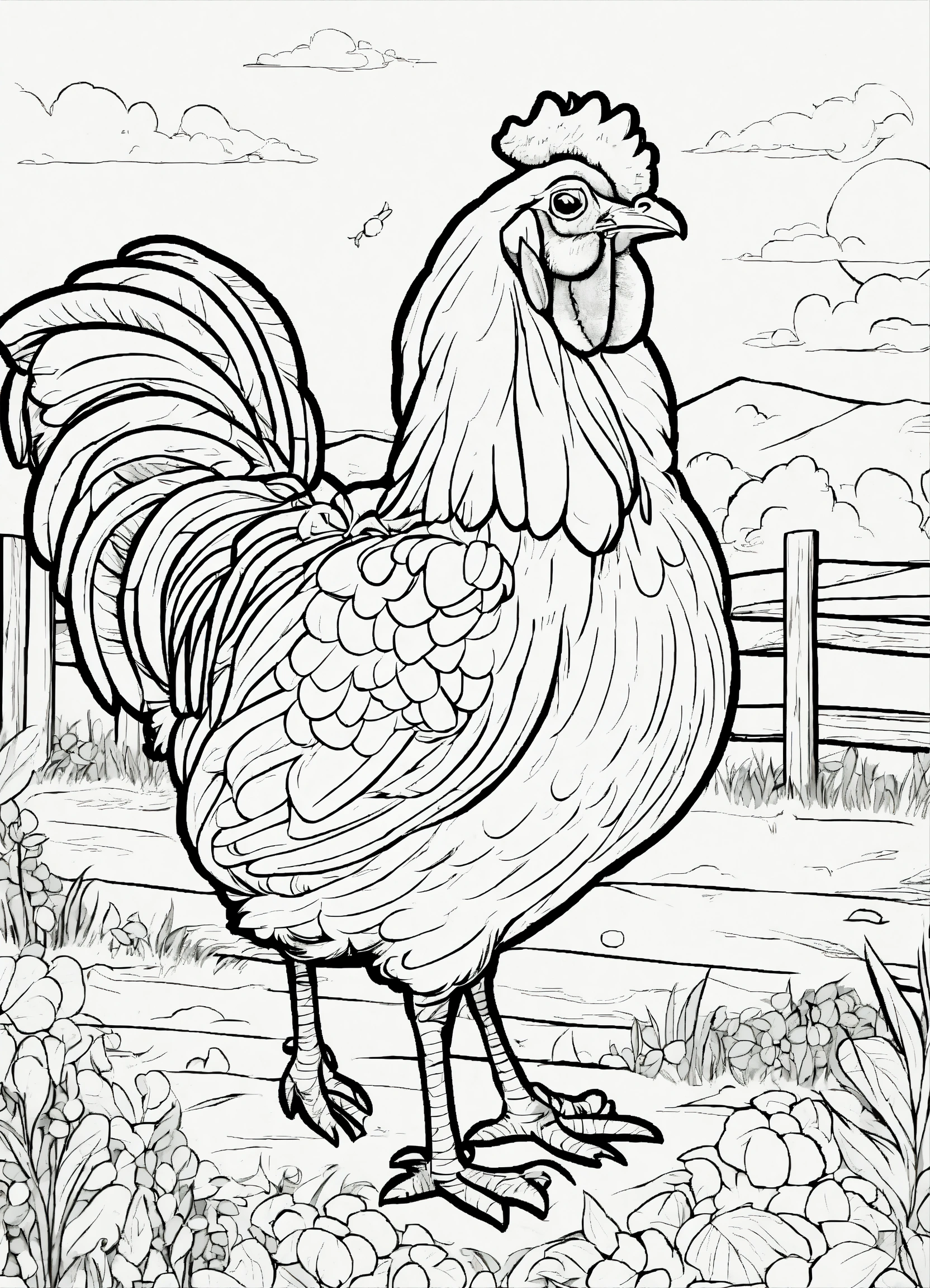 Generate a cute capon of the farm illustration, resolution, cartoon-sticker style with clear lines on a pure white background suitable for a children's coloring book.