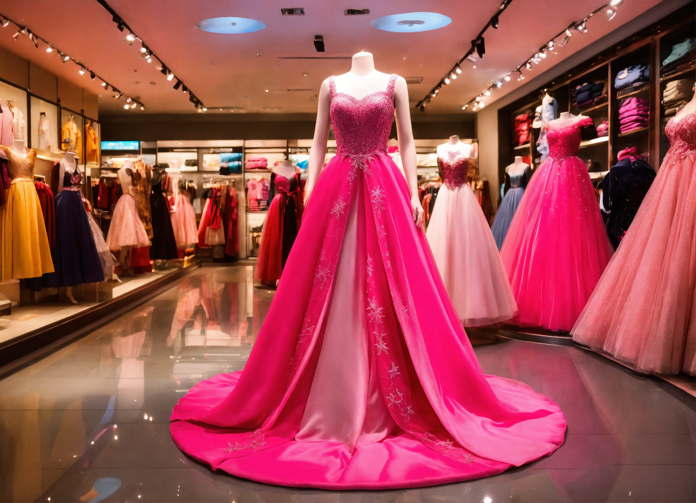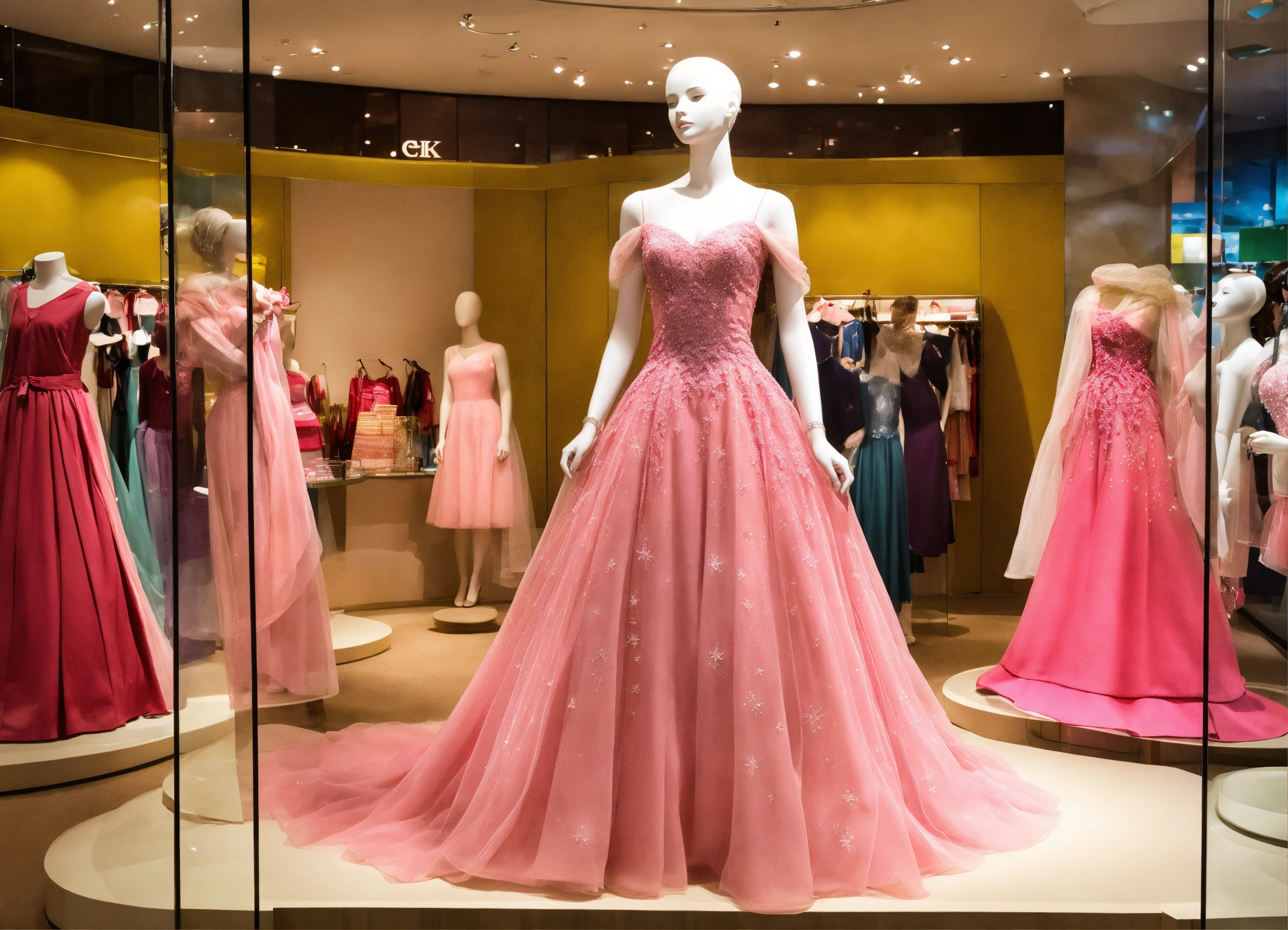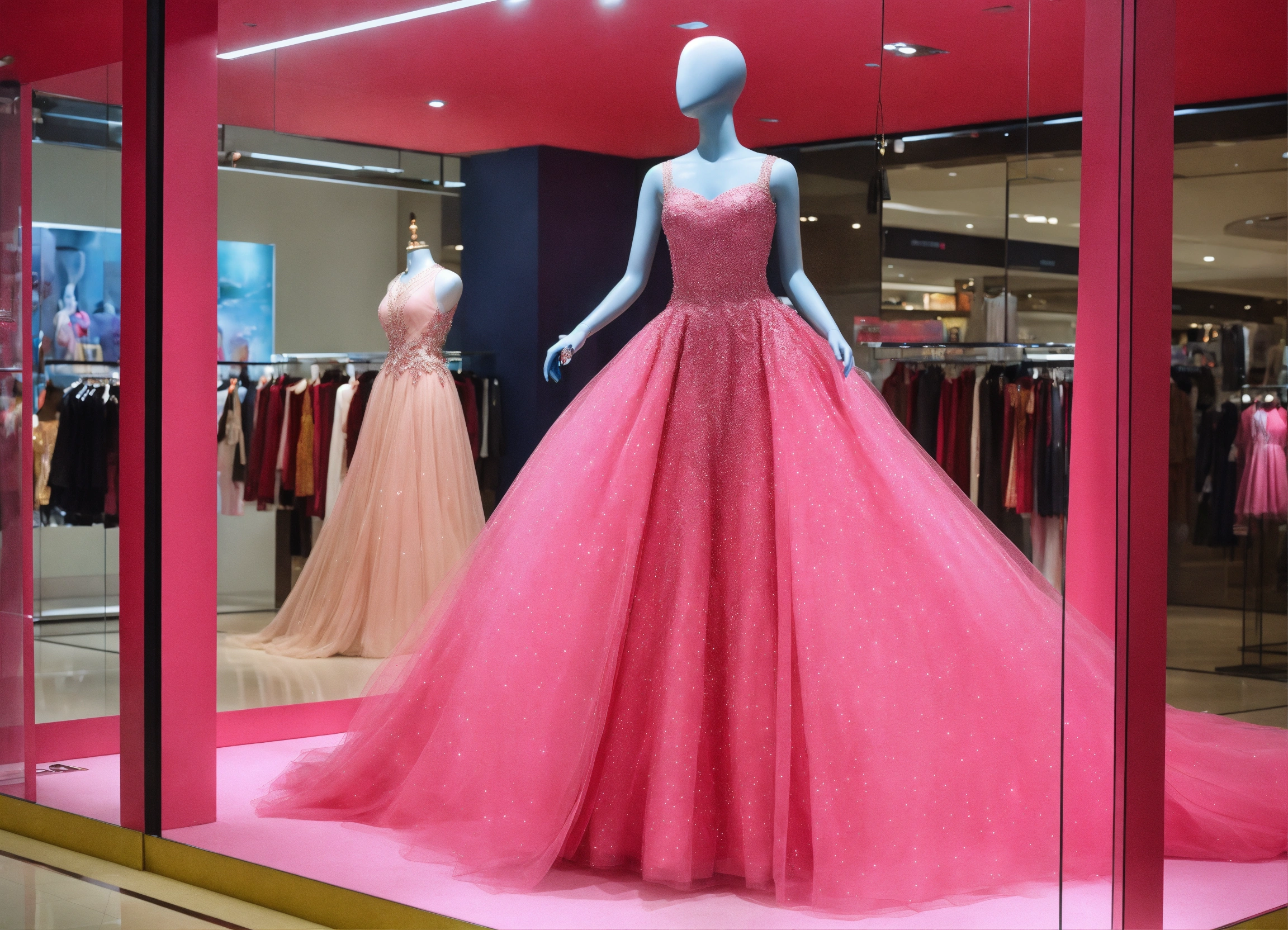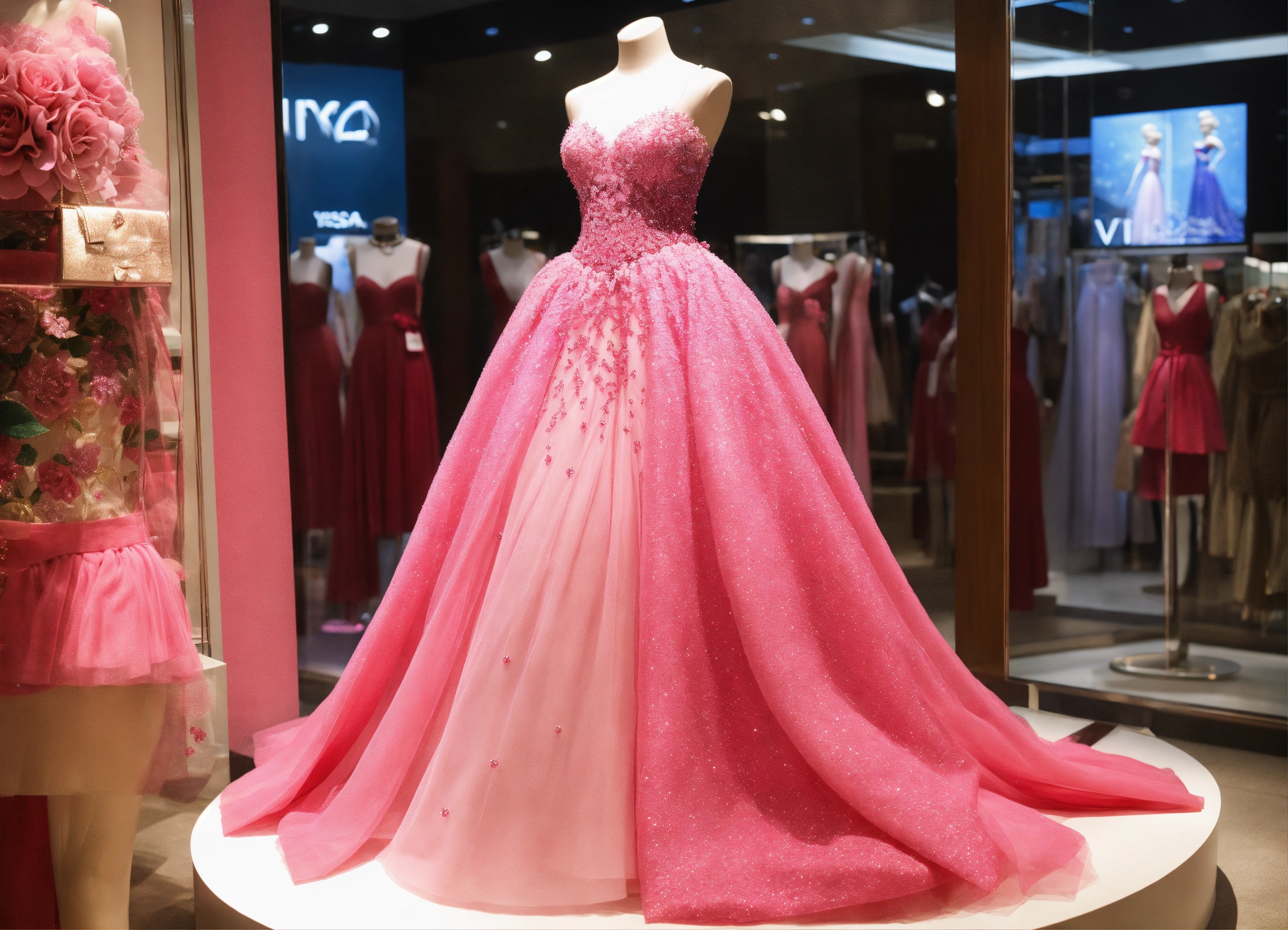 com manequim de vestido rosa longo do desenho elsa com brilho