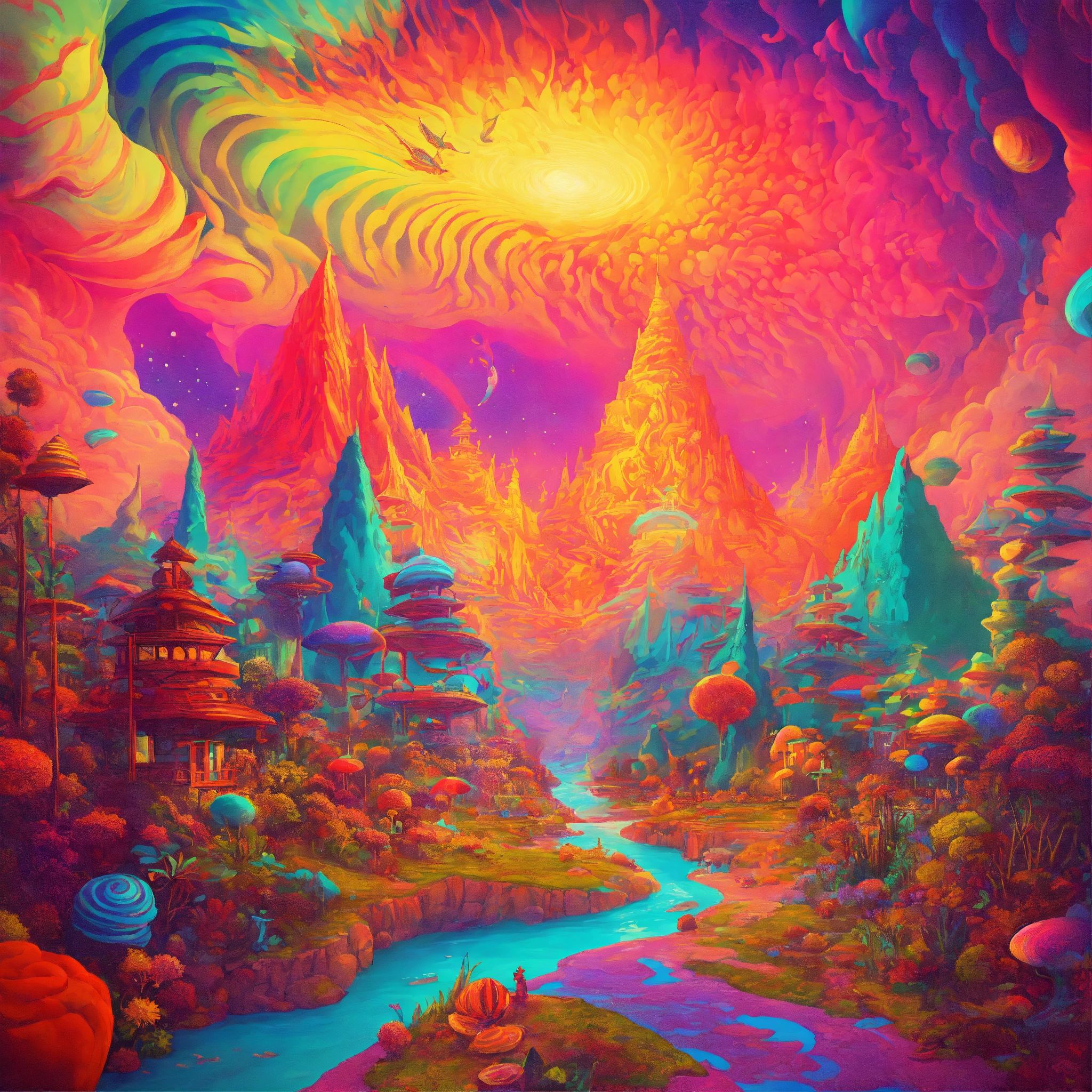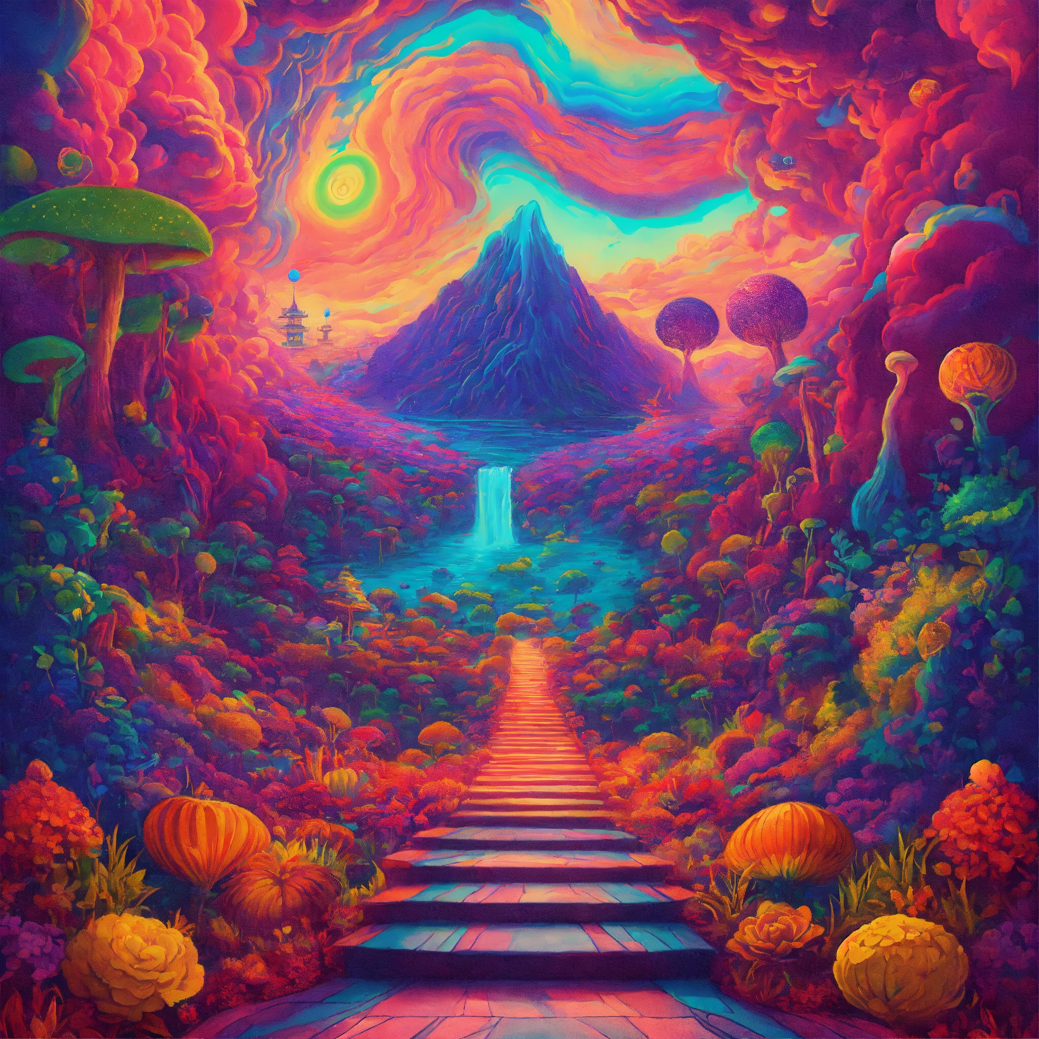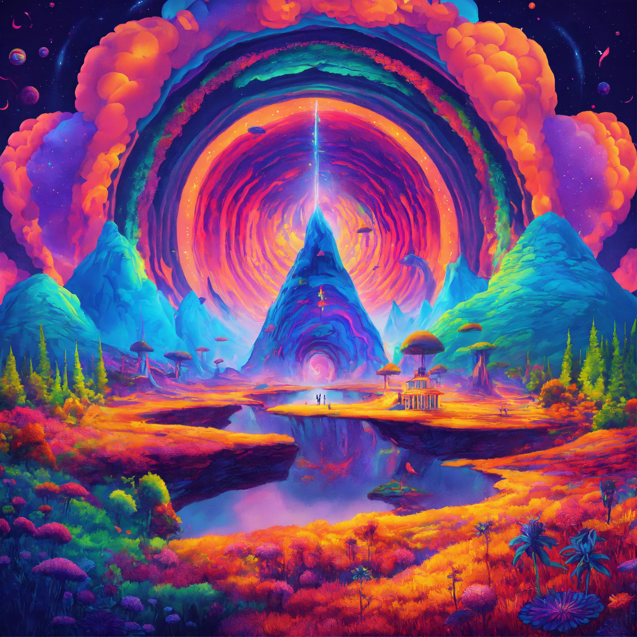 Colorful mind-altering trippy and psychedelic adventure