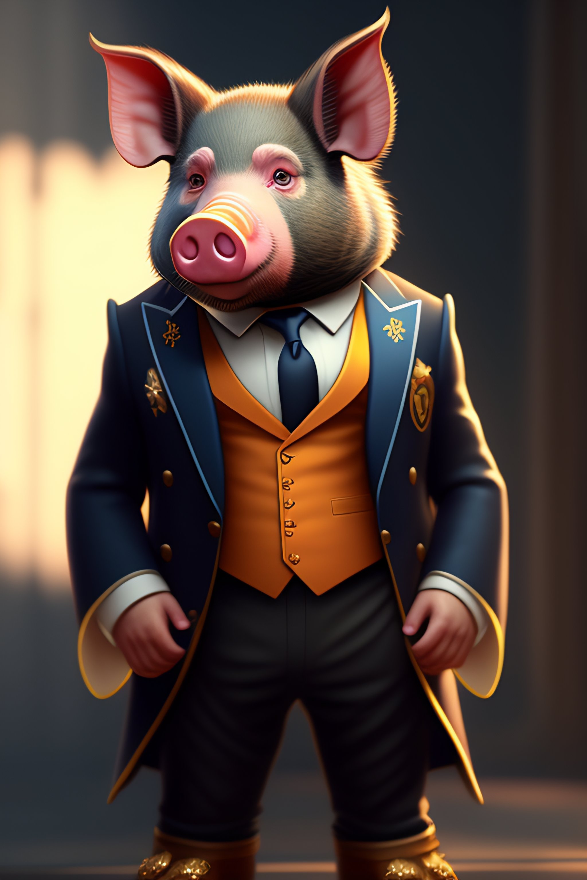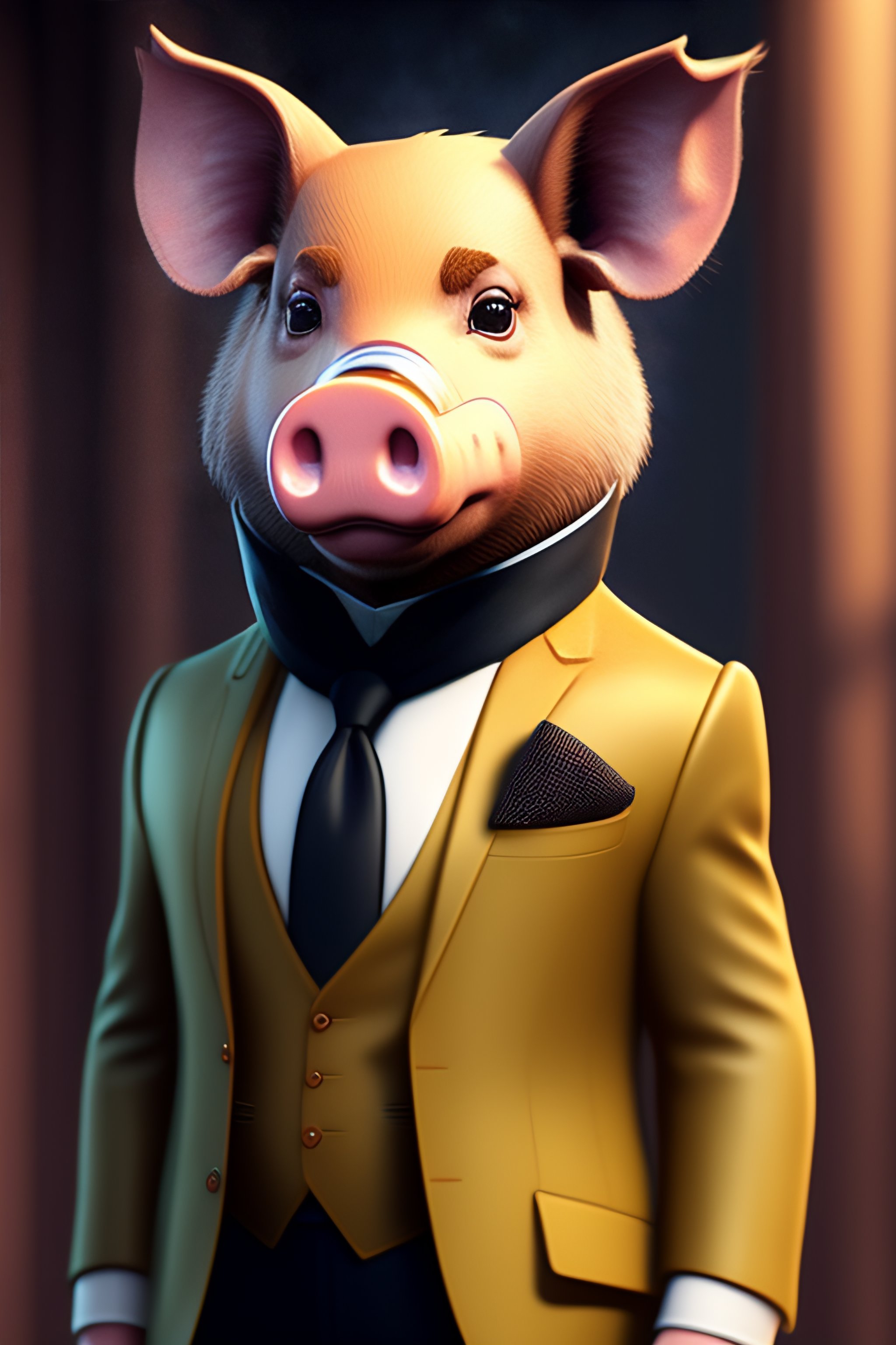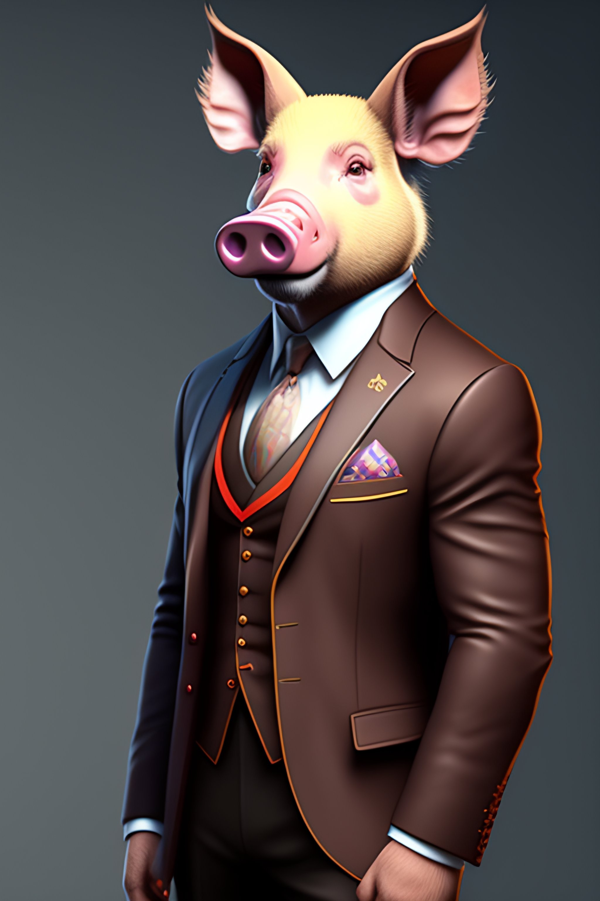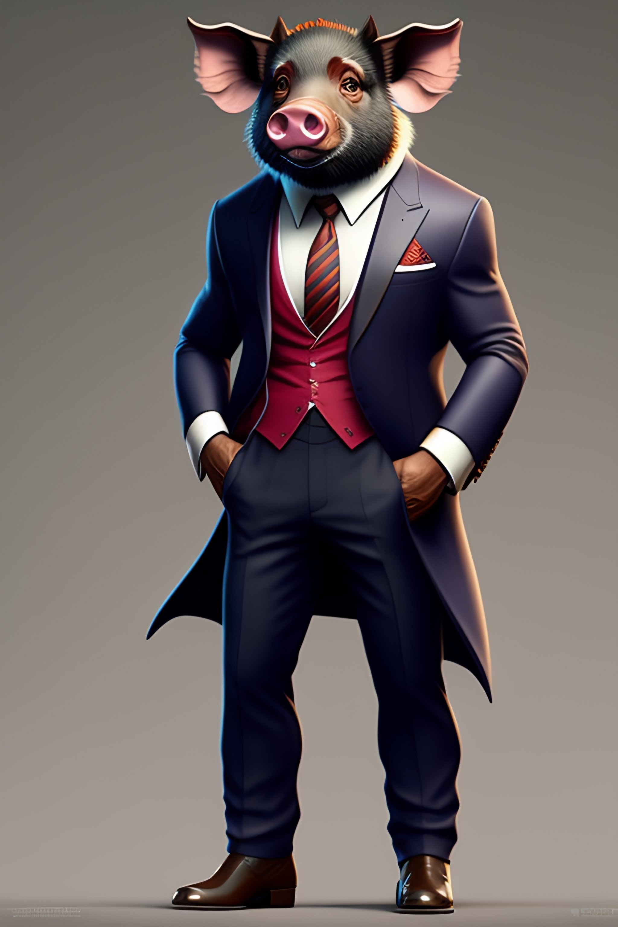 Anthro furry humanoid pig, three piece suit, character concept design, painting, detailed, vivid, trending on artstation