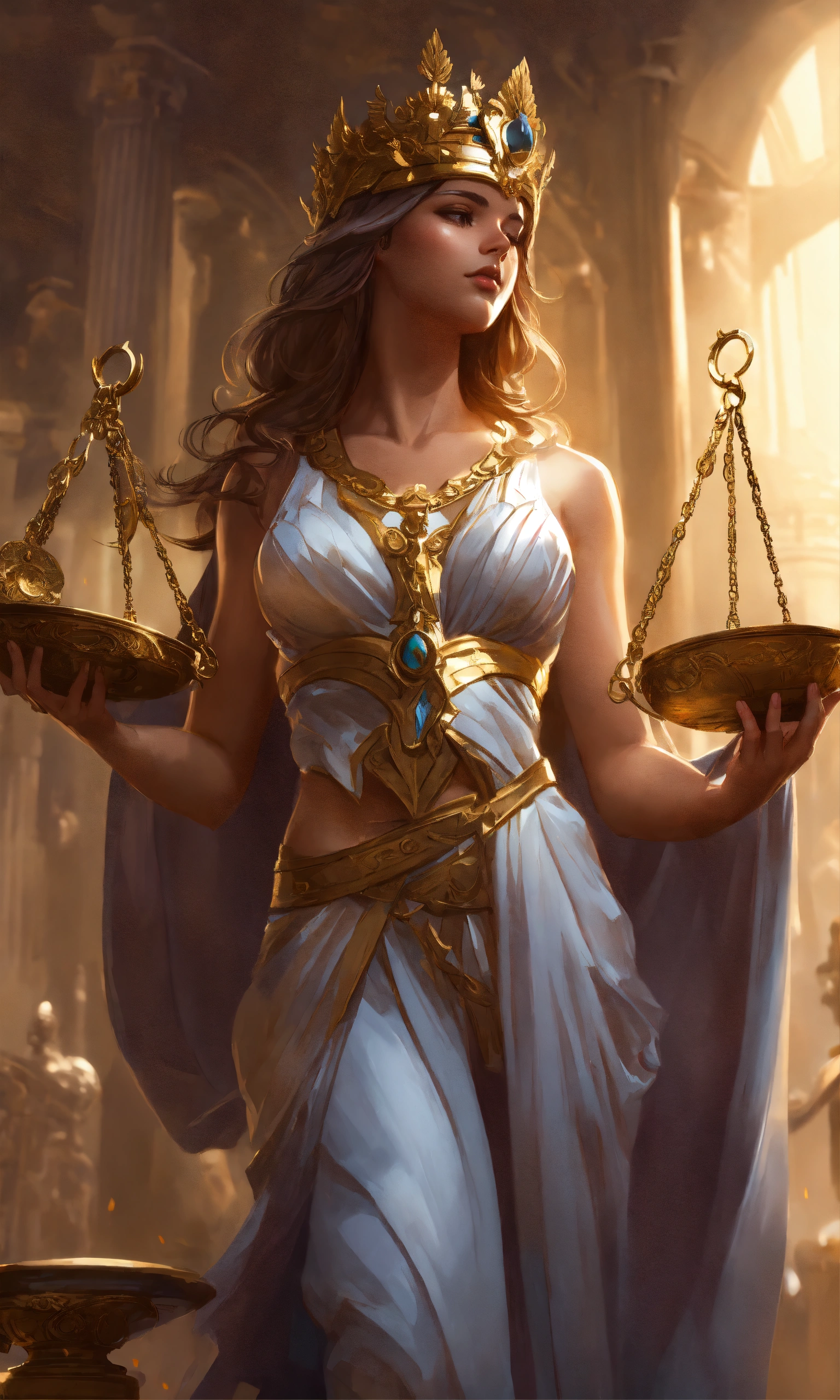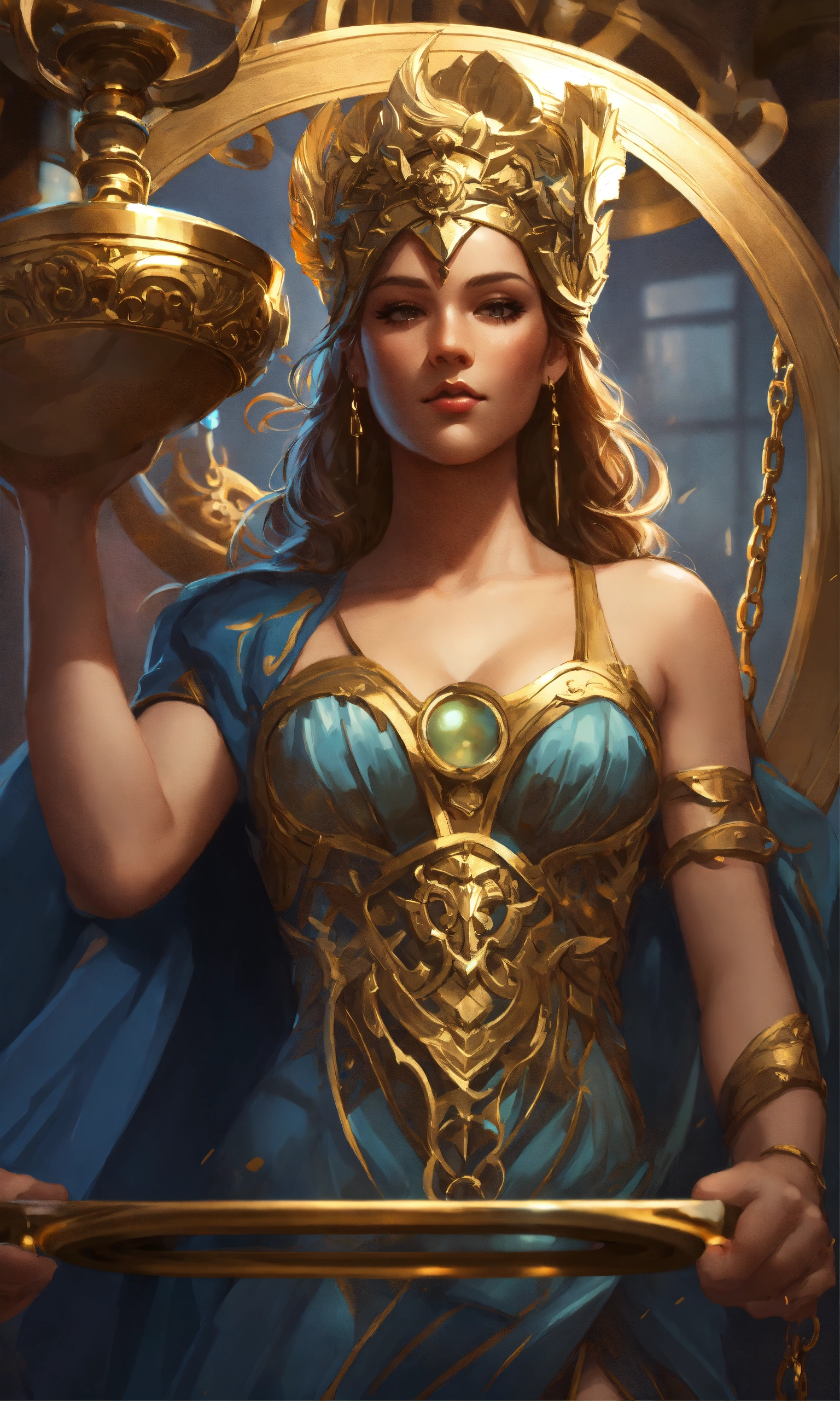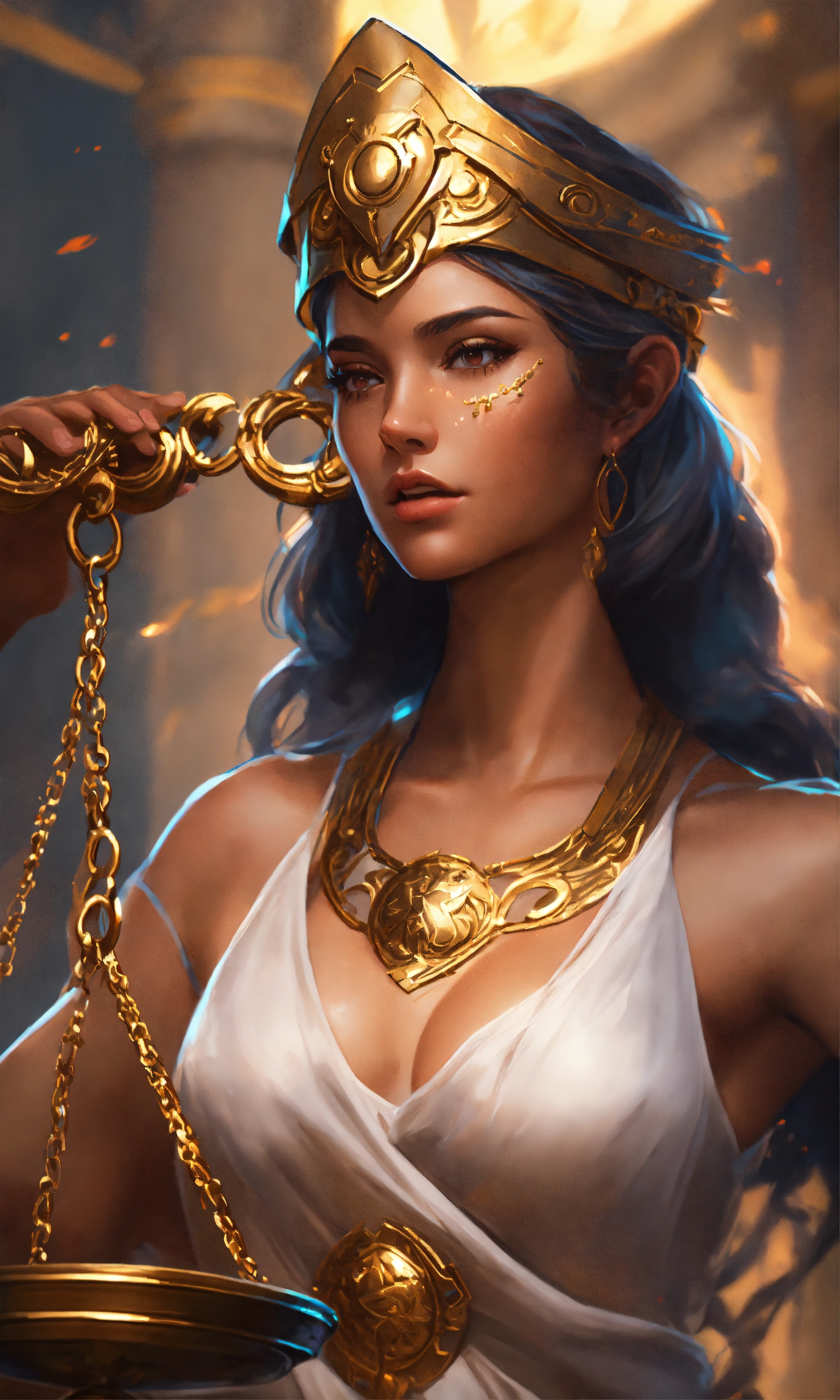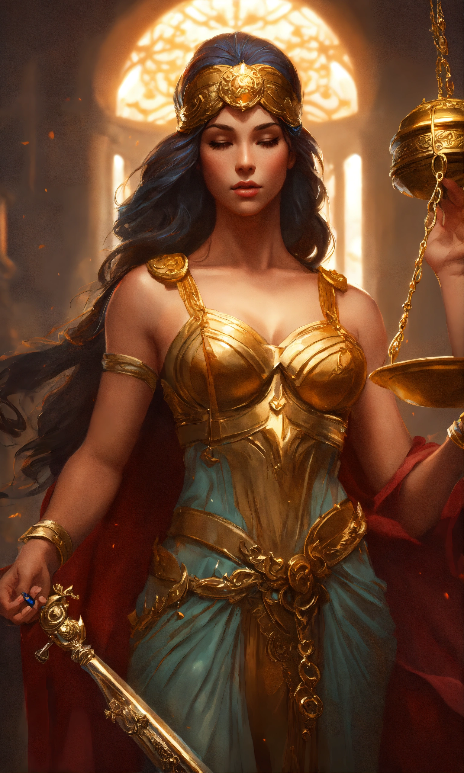 Goddess of justice holding balance scales. blindfolded. intricate, elegant, highly detailed, digital painting, artstation, concept art, sharp focus, illustration, by justin gerard and artgerm, 8k