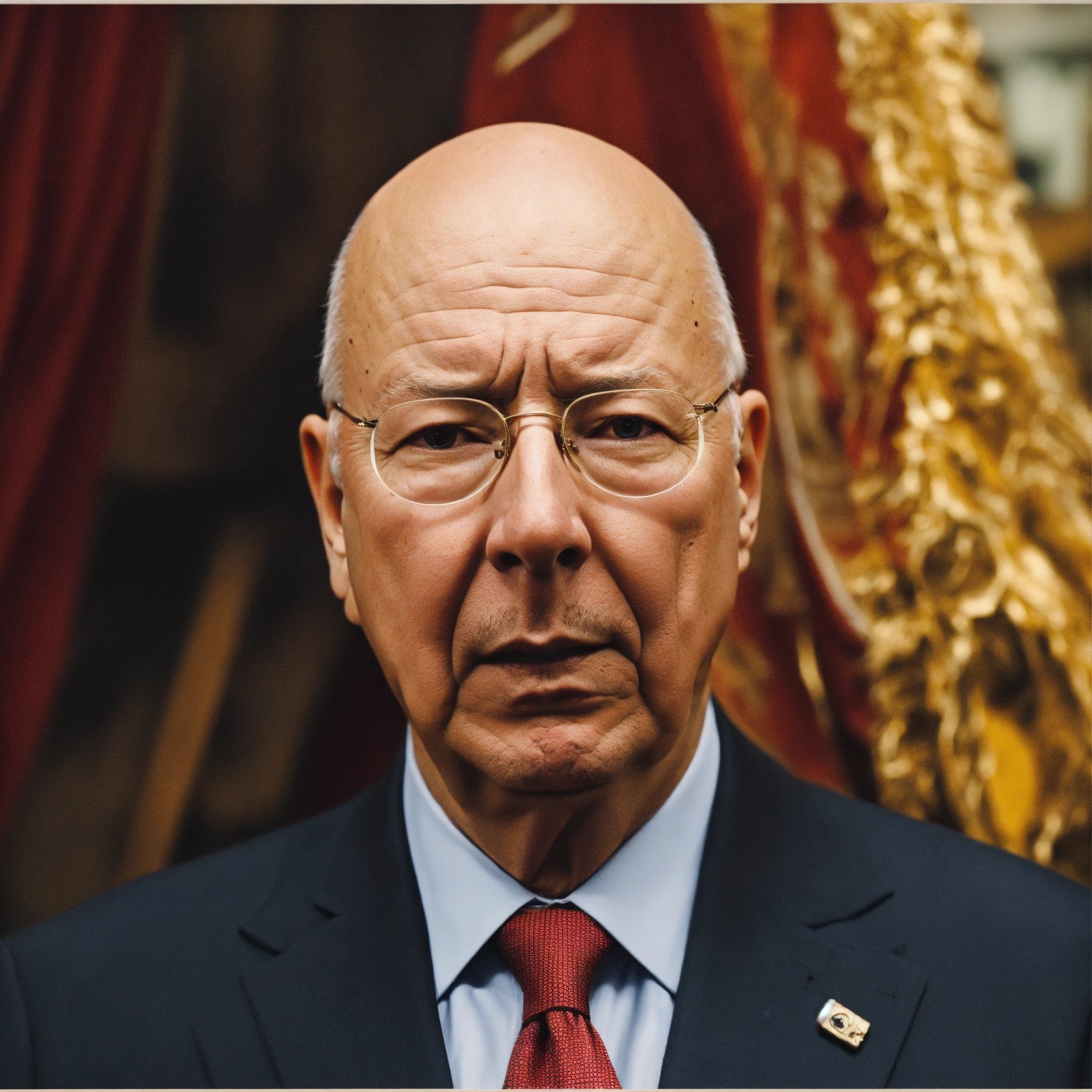 Very old klaus schwab, pointed upper lip, droopy eyes, closed eyes, long pointy head, mad, angry, yelling