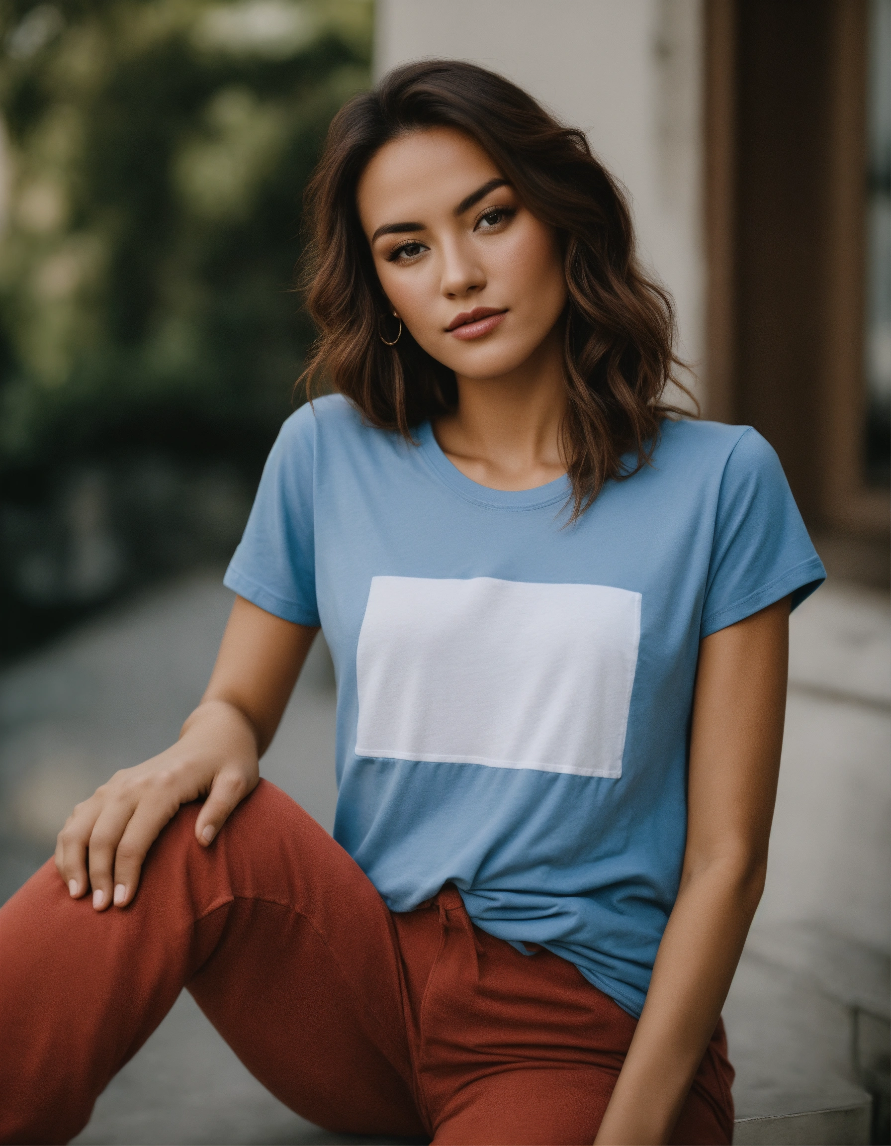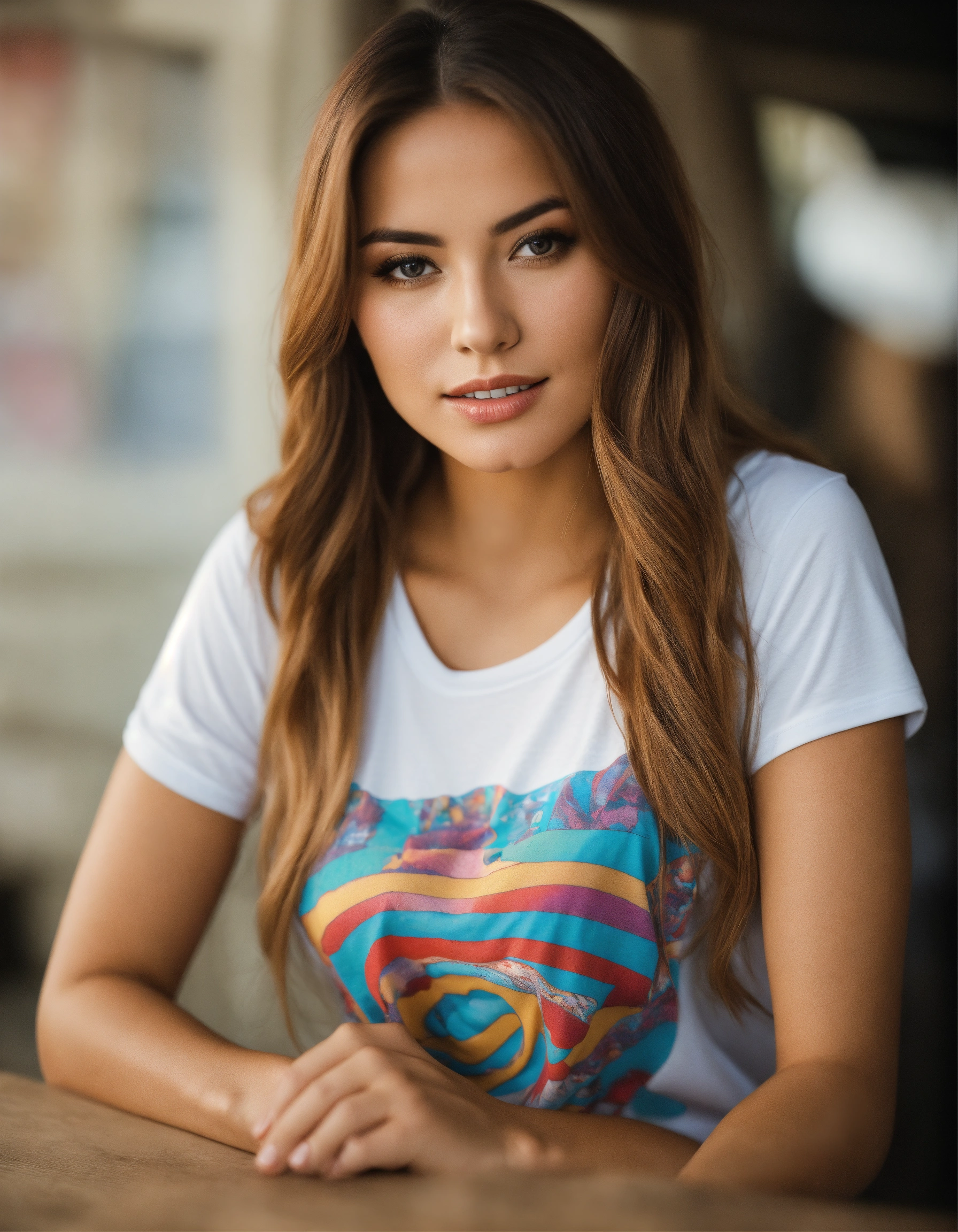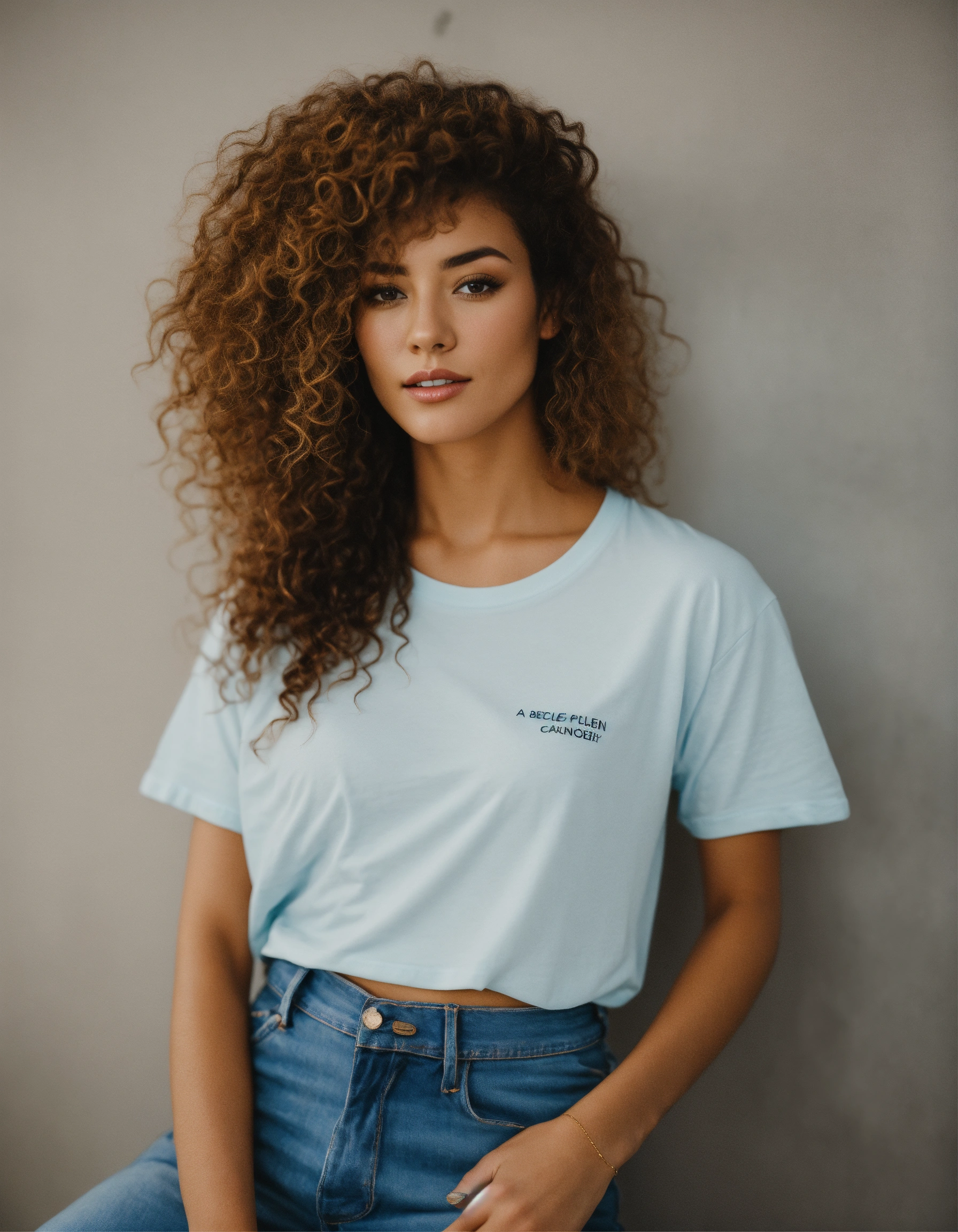 A photo of a beautiful woman wearing a t-shirt