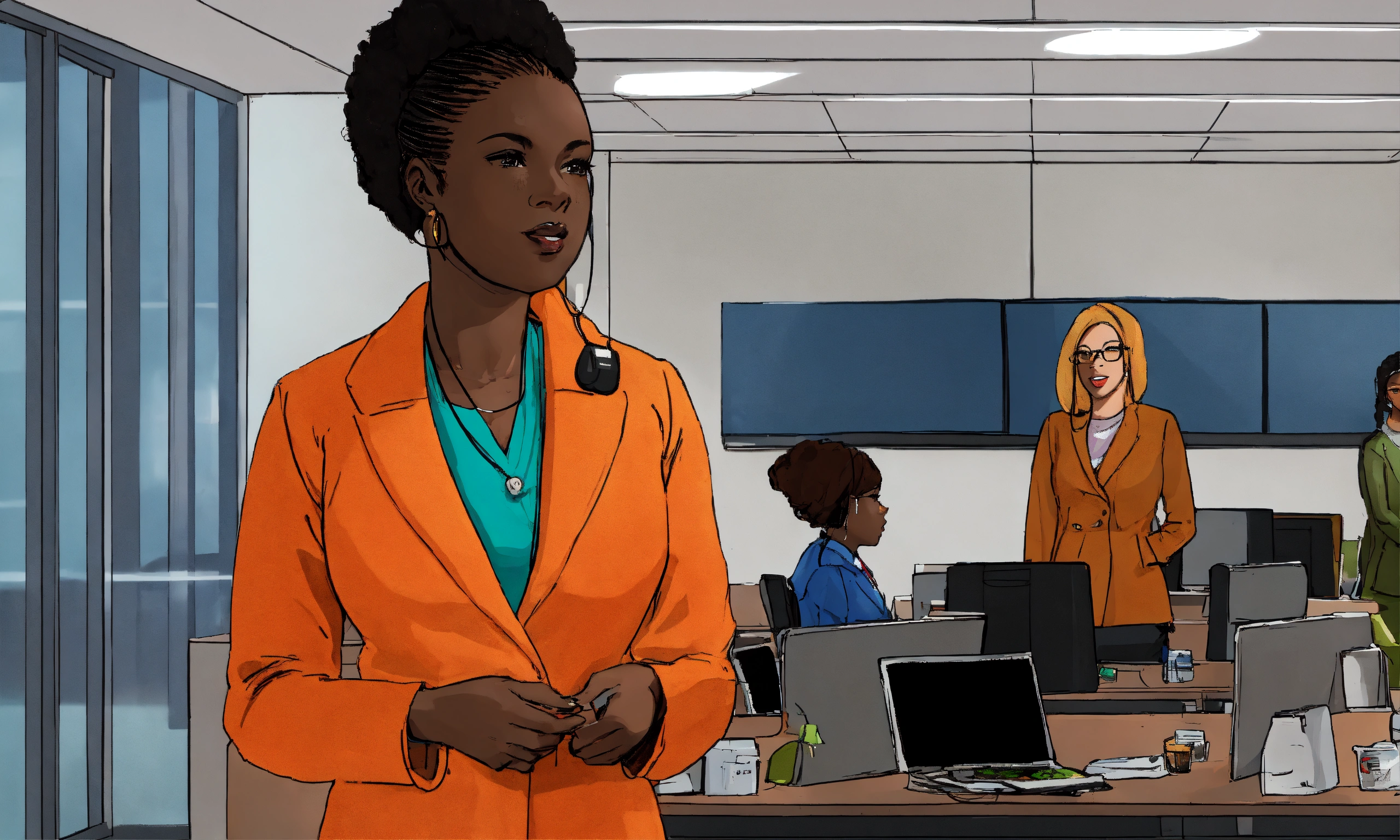 standing and talking in office illustration