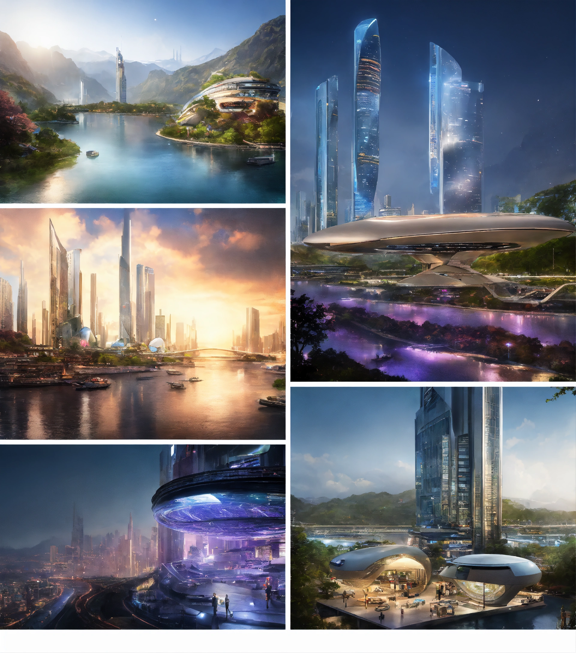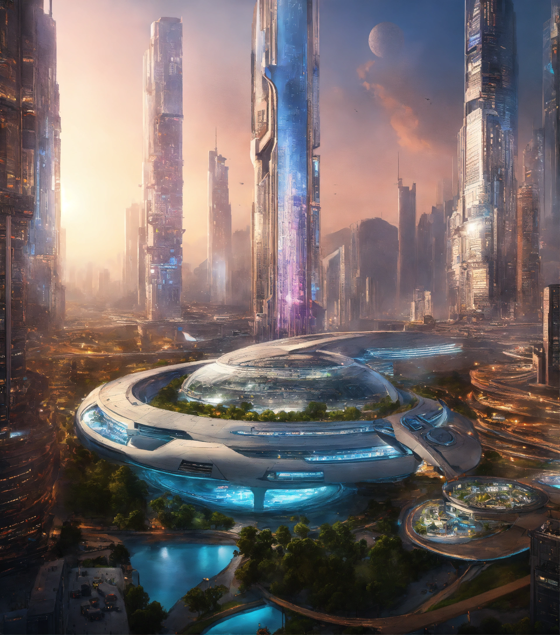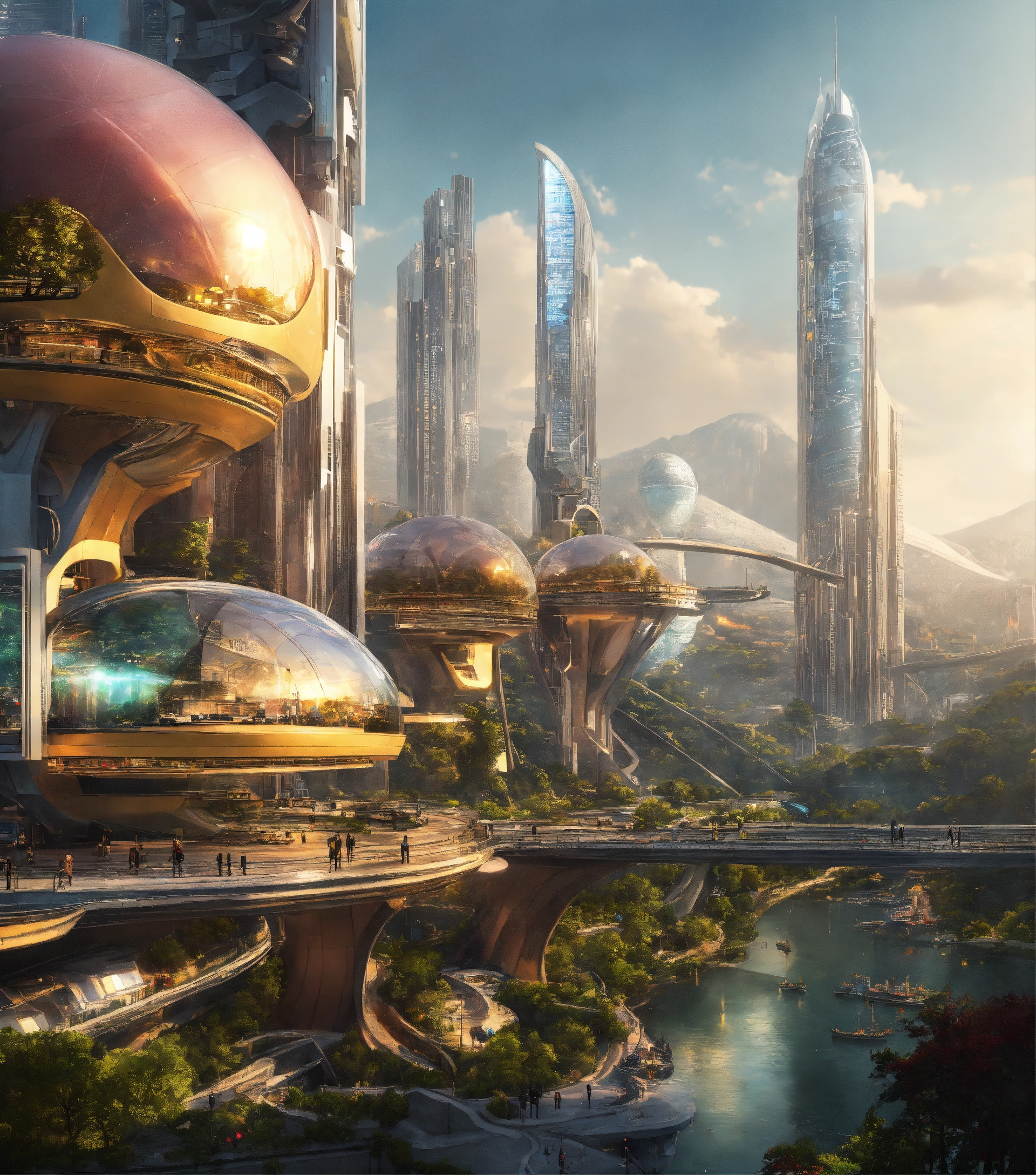 Pictures of the futuristic city of utopia showcasing the technological advances that have transformed society