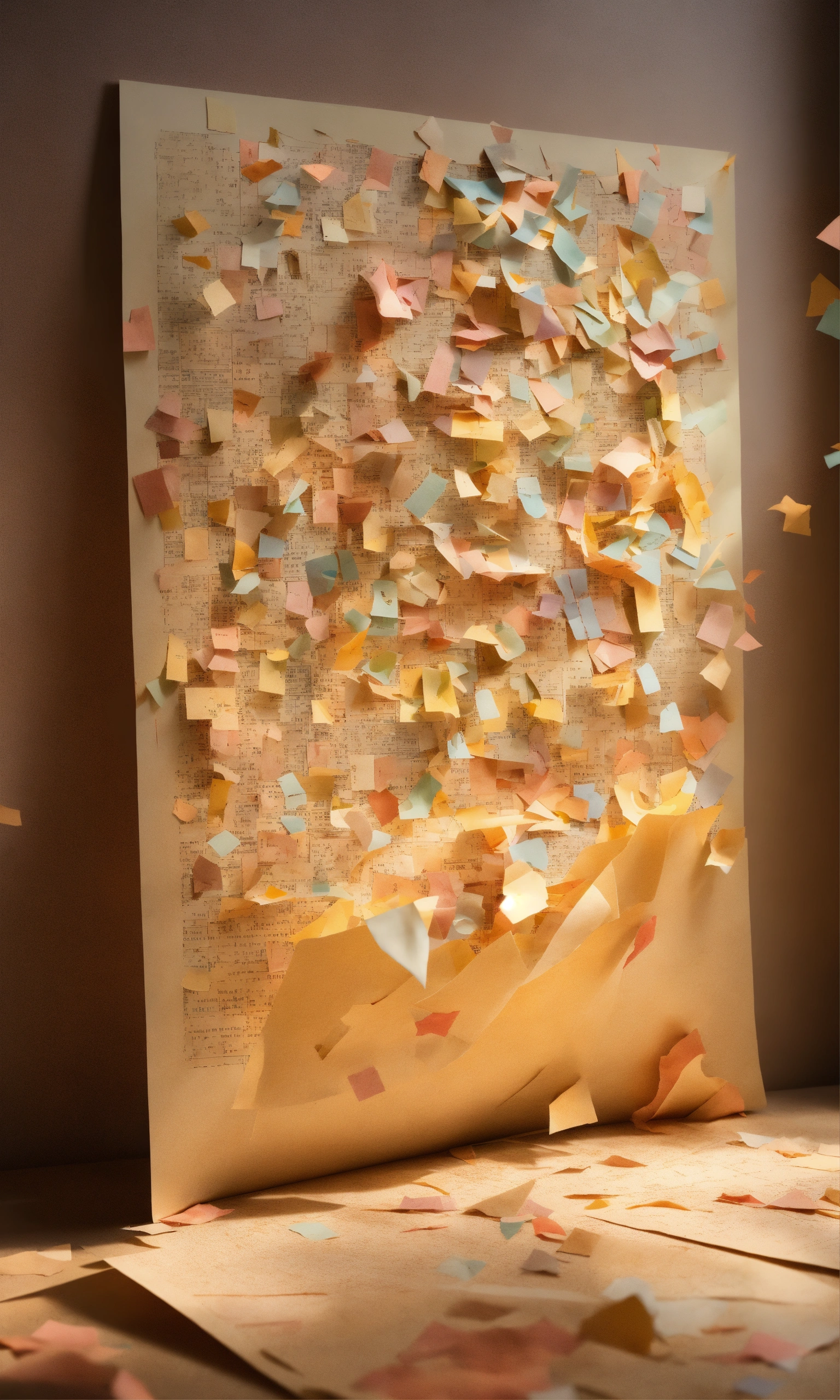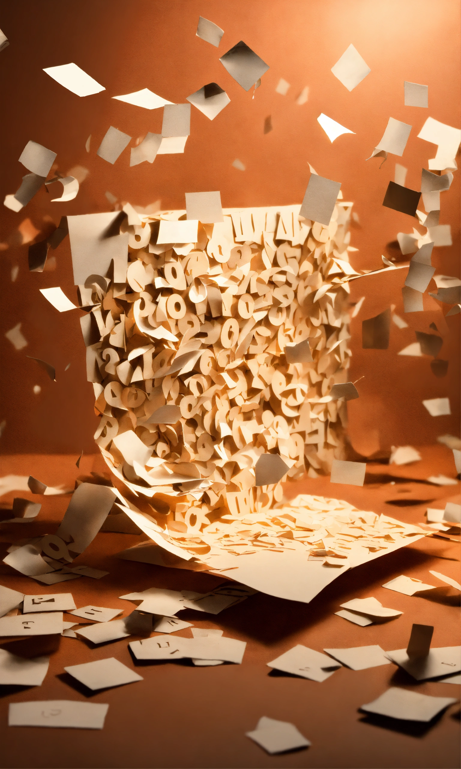 Create an image of a piece of paper with letters and numbers peeling off and floating upwards. the background should resemble a classroom or study area, with soft, gentle lighting, and a color palette that evokes a sense of order and academic achievement.