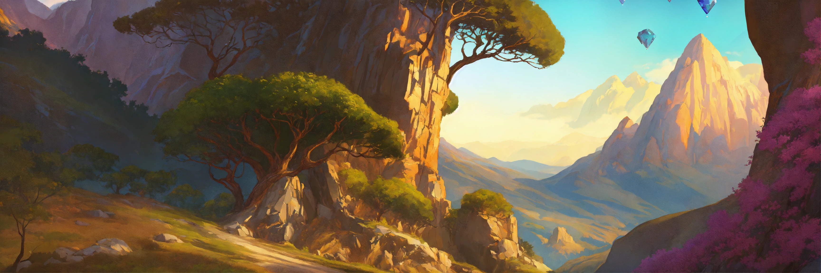 Turkish mountains, mystical, glowing gems, weird trees and rock formations, highly detailed, digital painting, artstation, concept art, smooth, sharp focus, illustration, art by artgerm and greg rutkowski and alphonse mucha, erte, 8 k