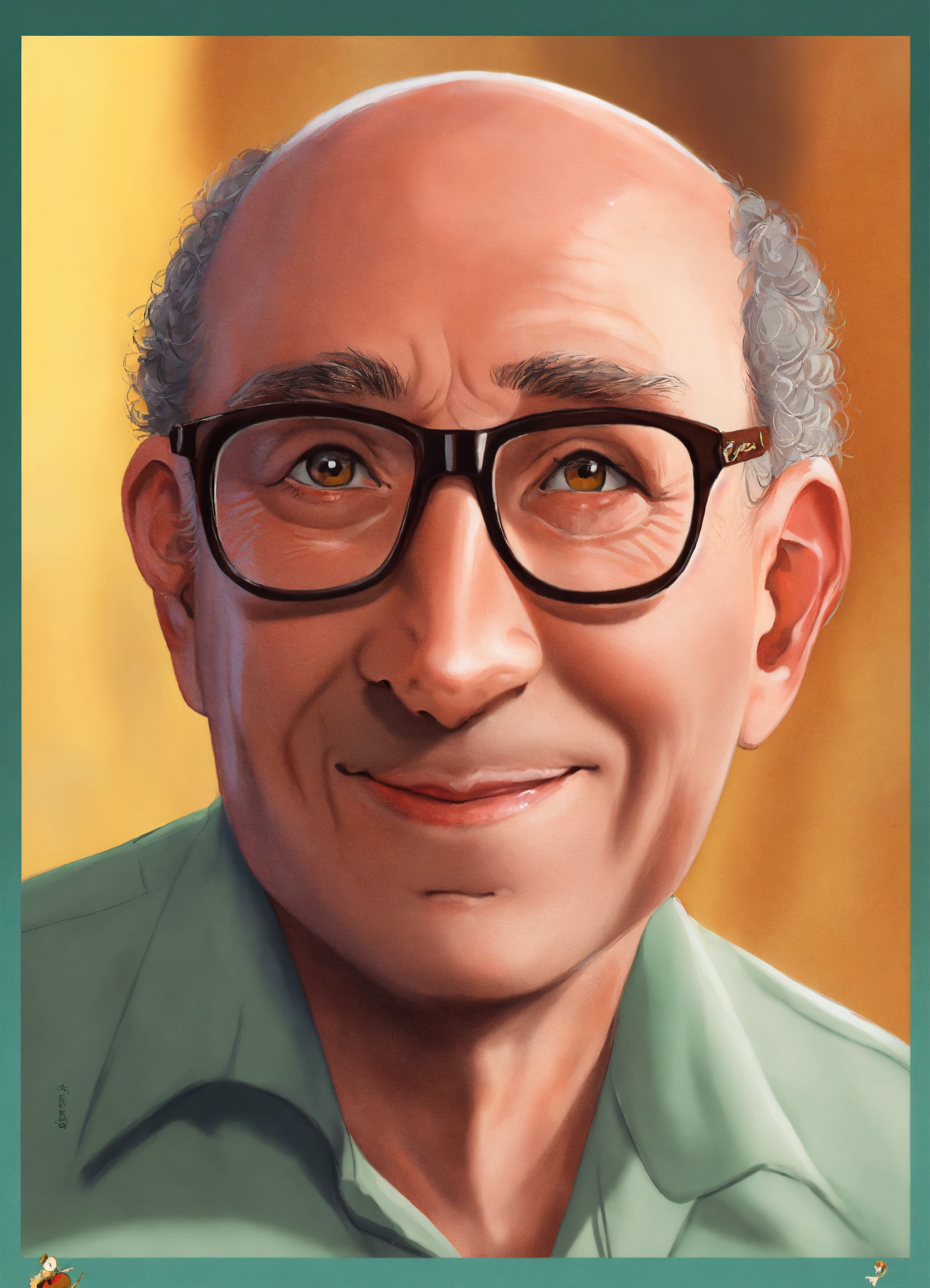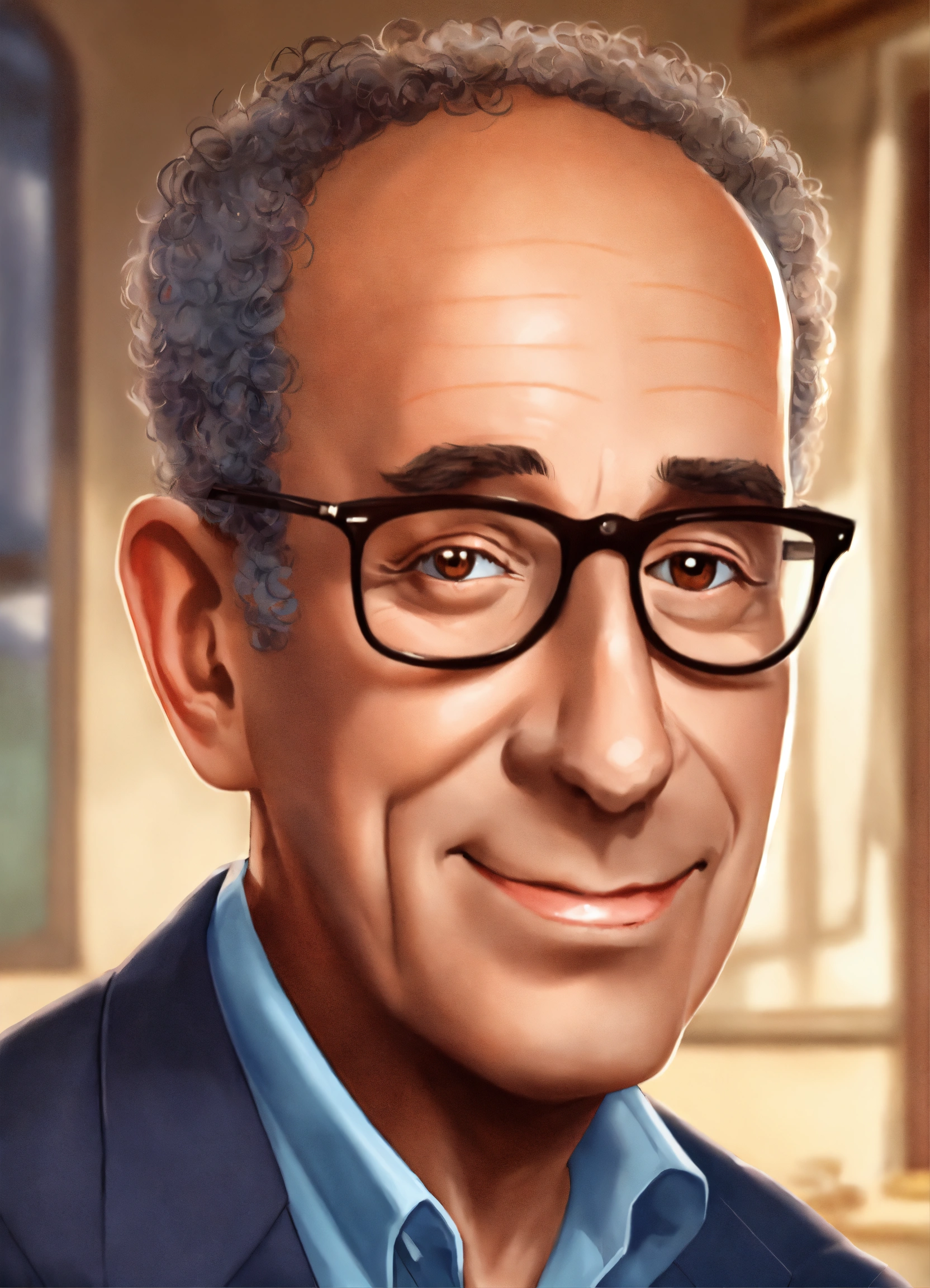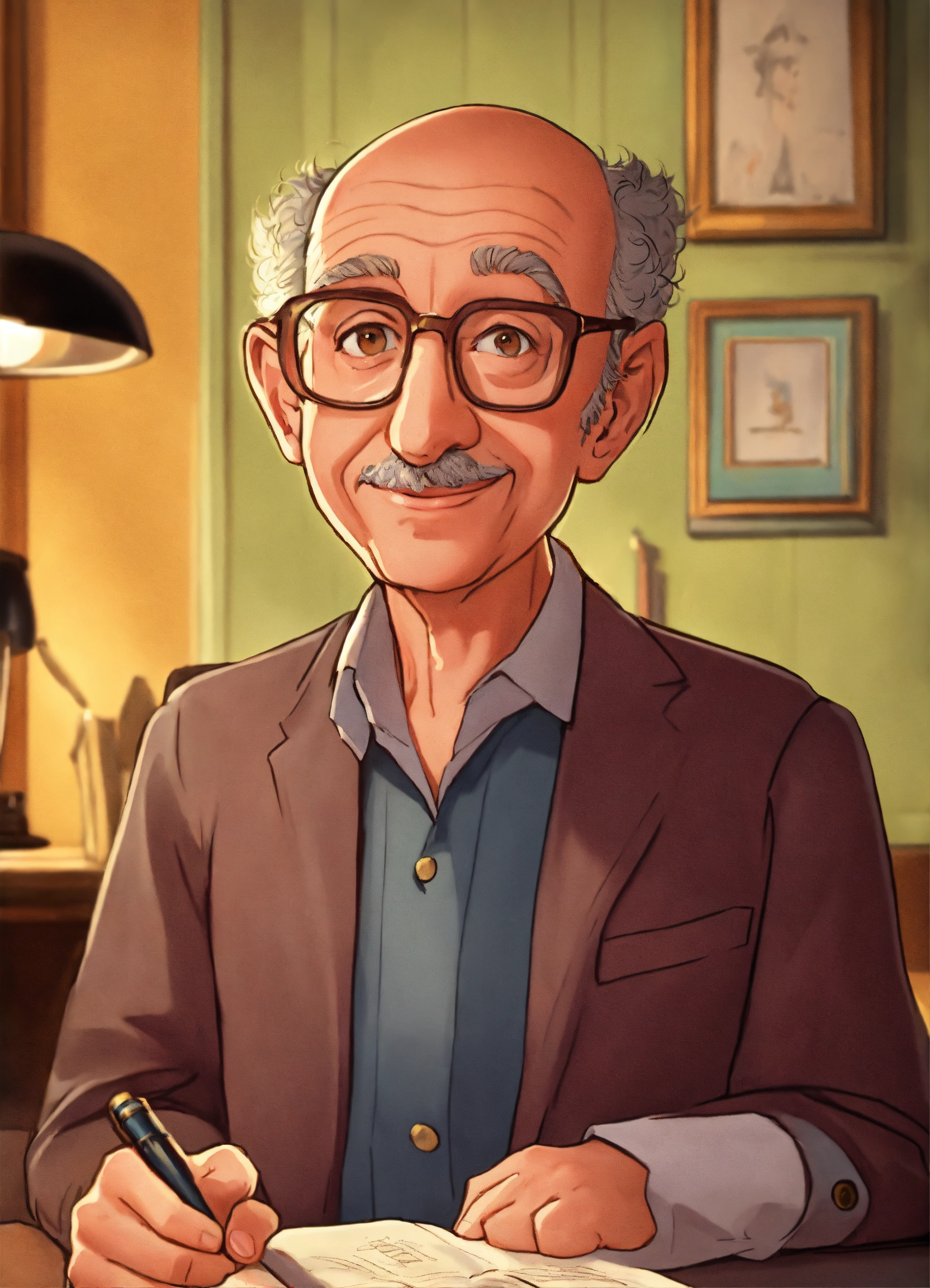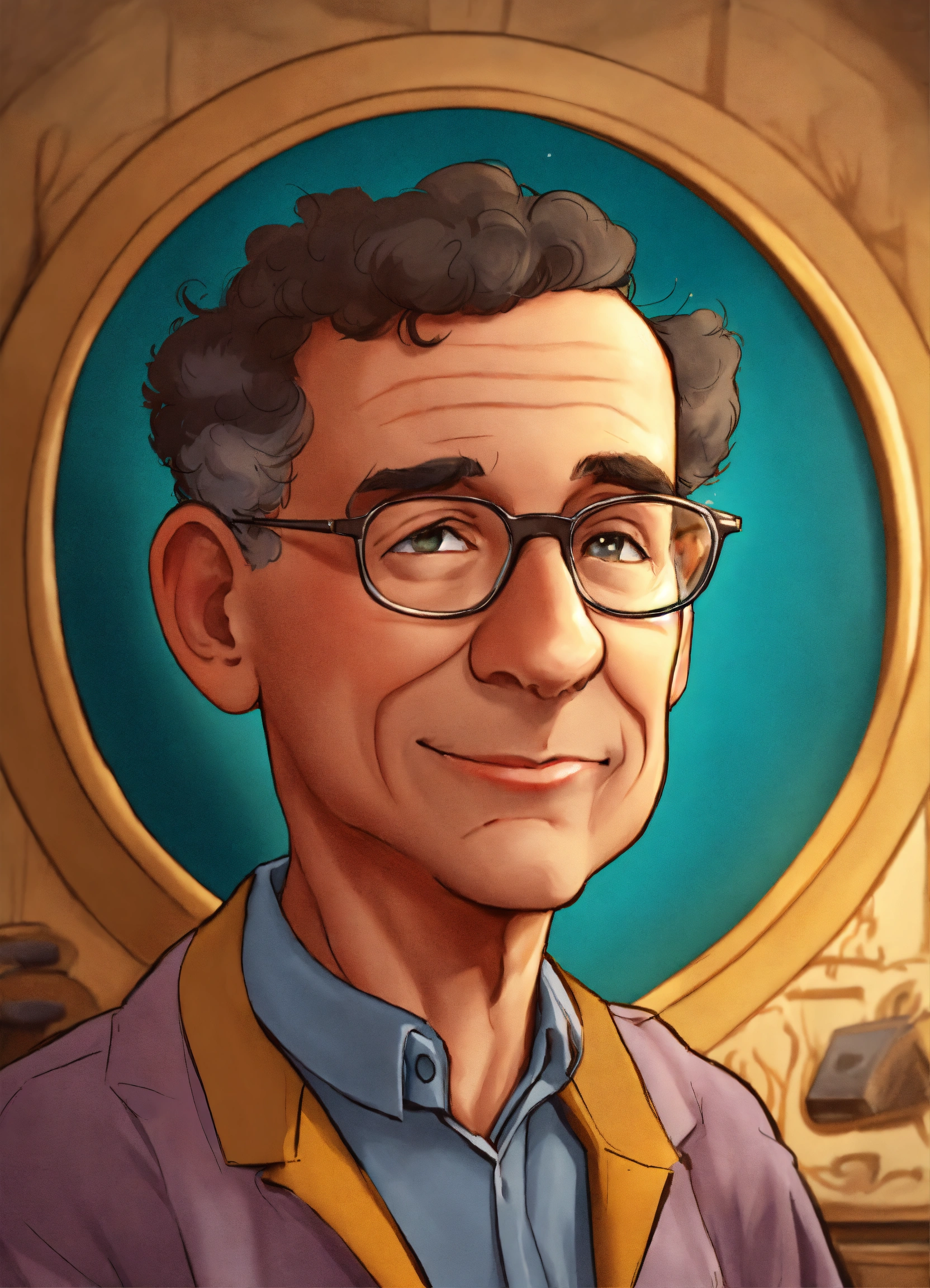 A portrait de " bernard werber" writter of "les fourmis" on animated cartoon style