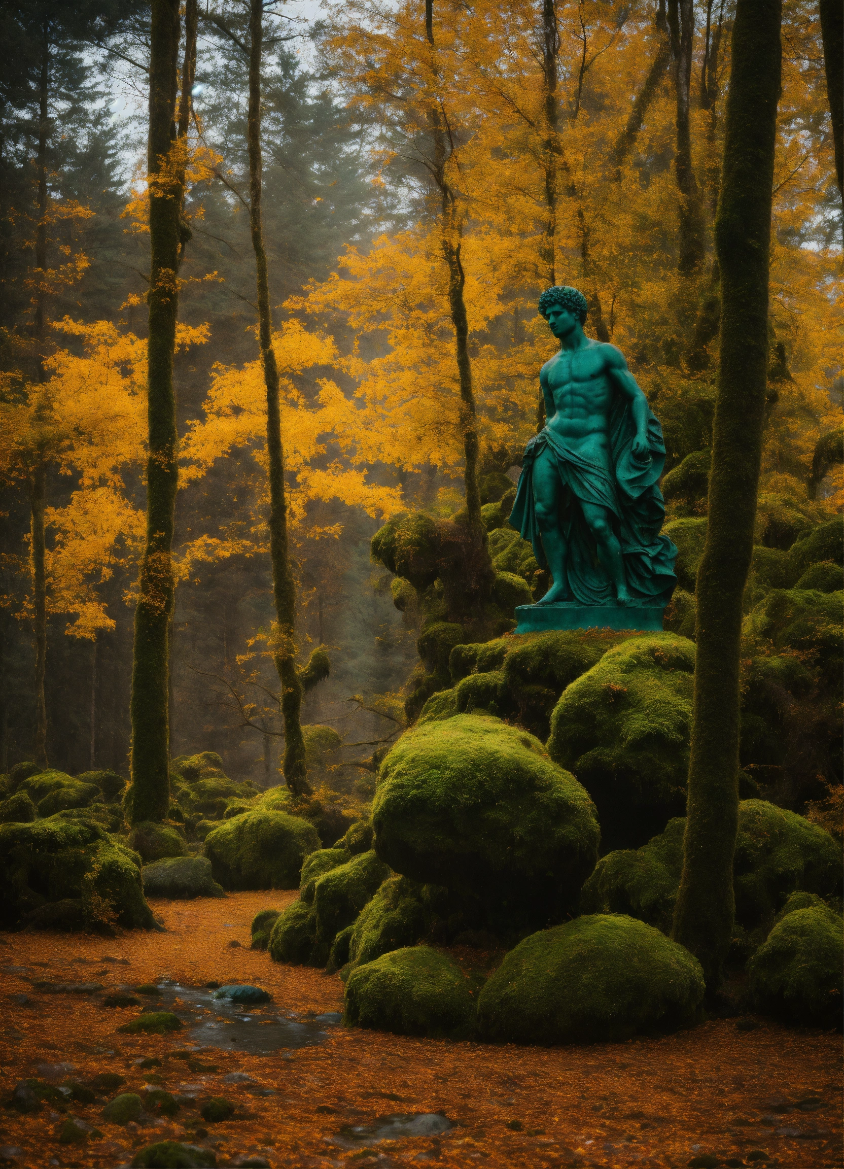A satue of nero among the trees