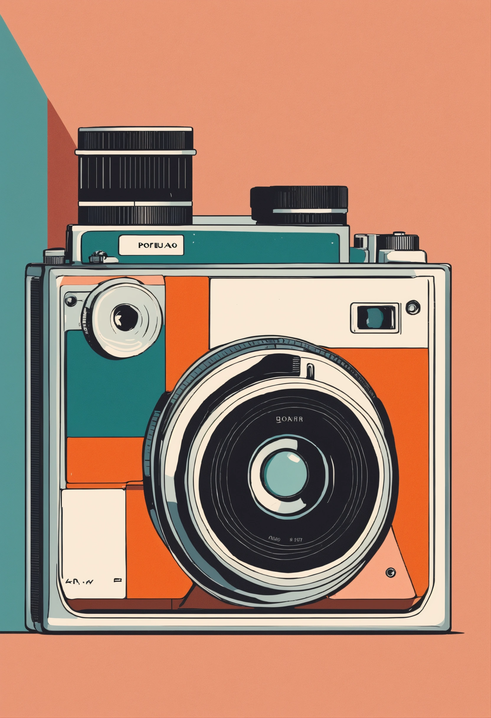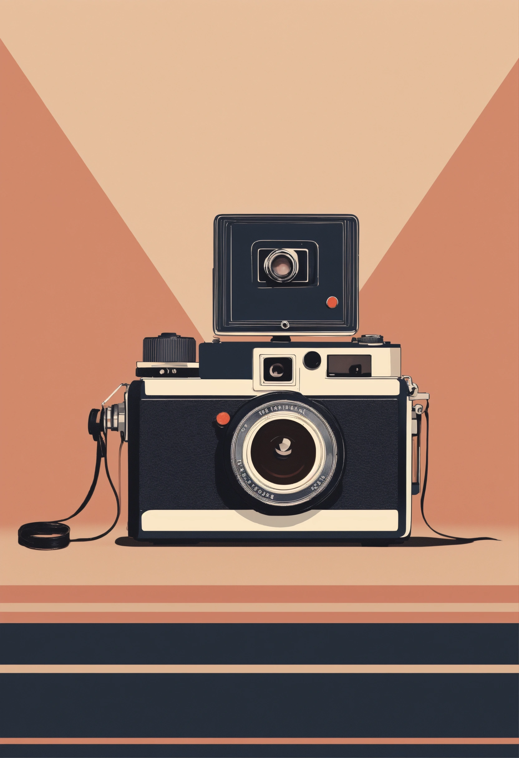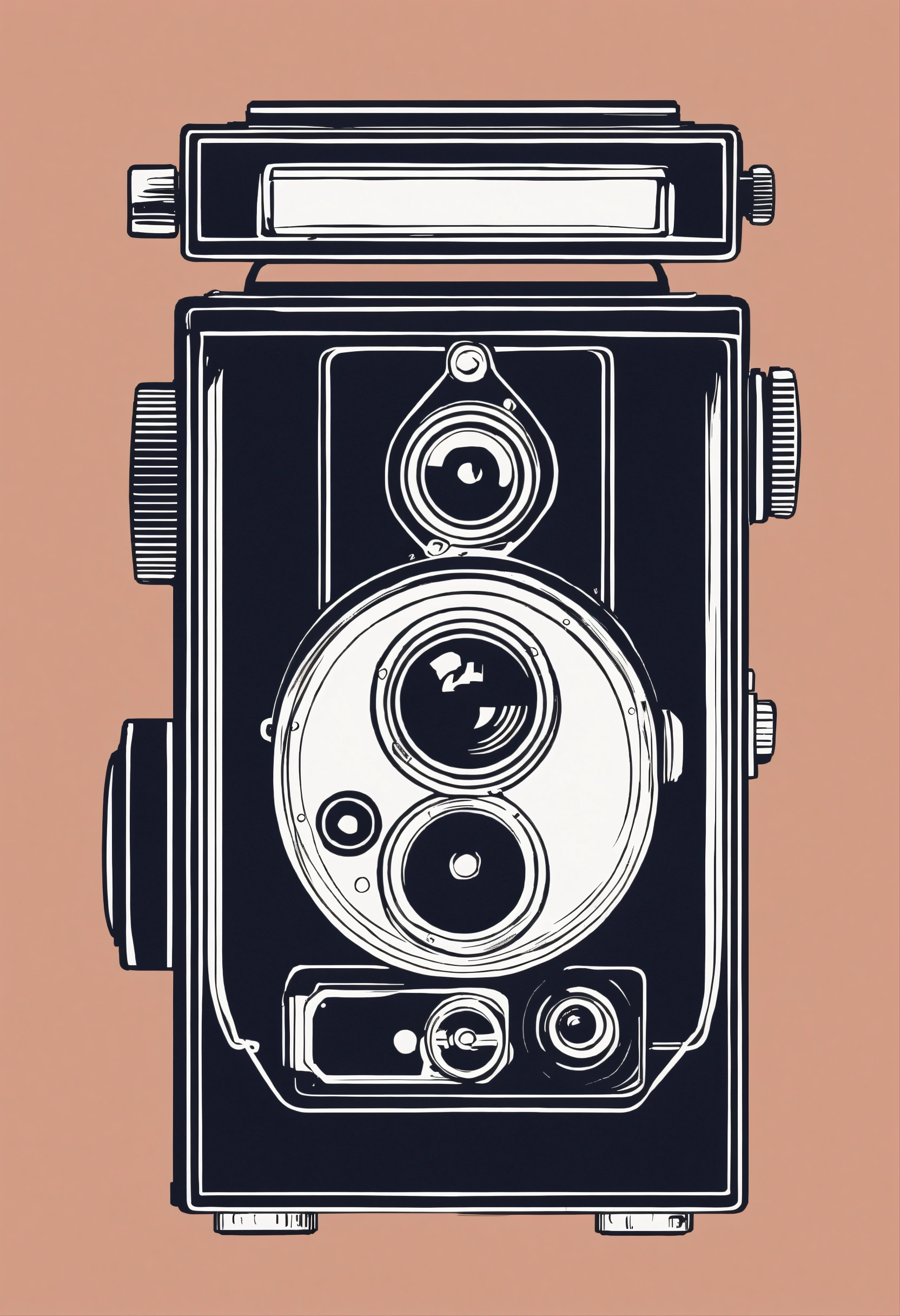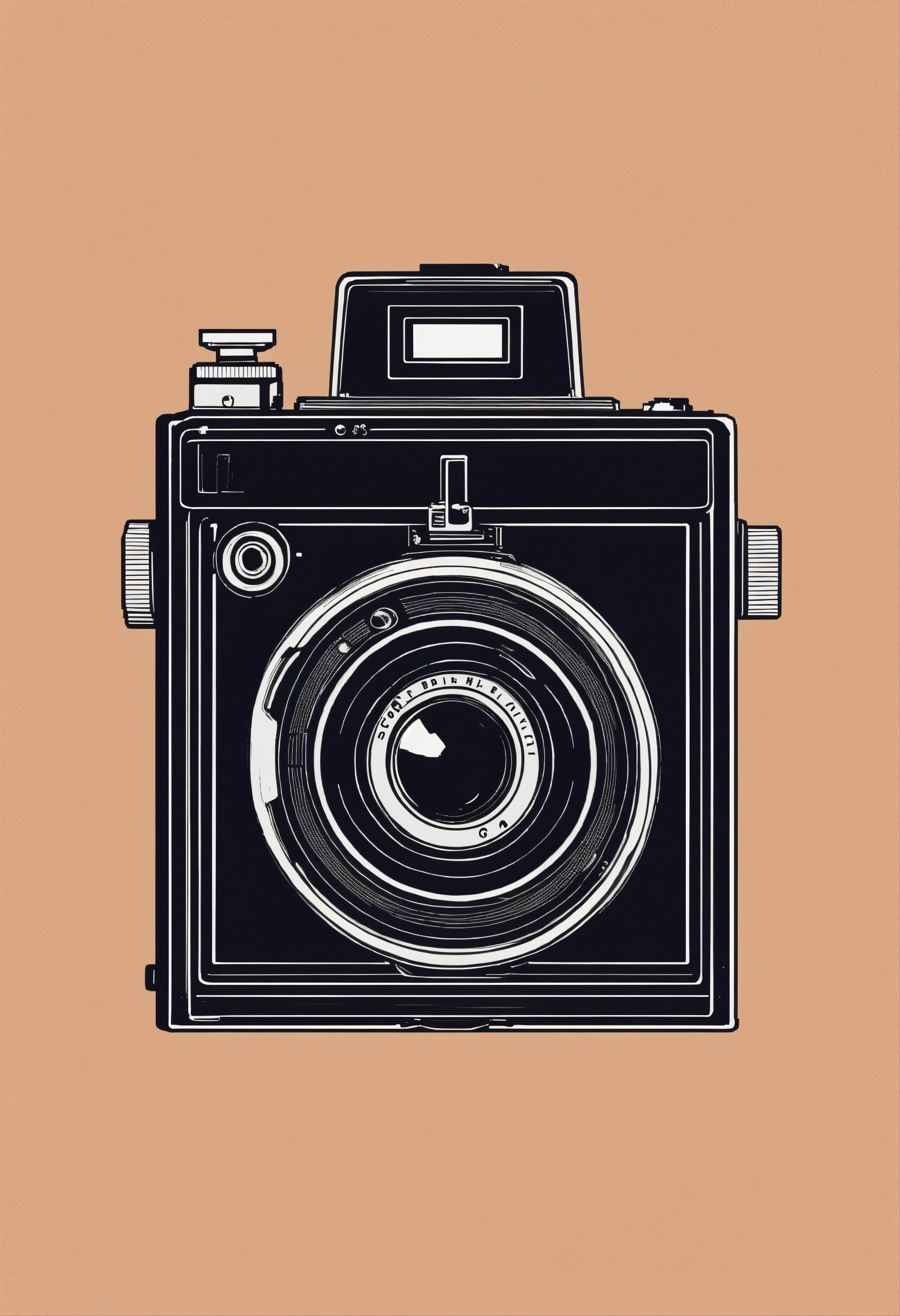 A minimalistic illustration of a vintage camera, capturing its essence with clean lines and simplified forms, perfect for printing on art prints and tote bags.