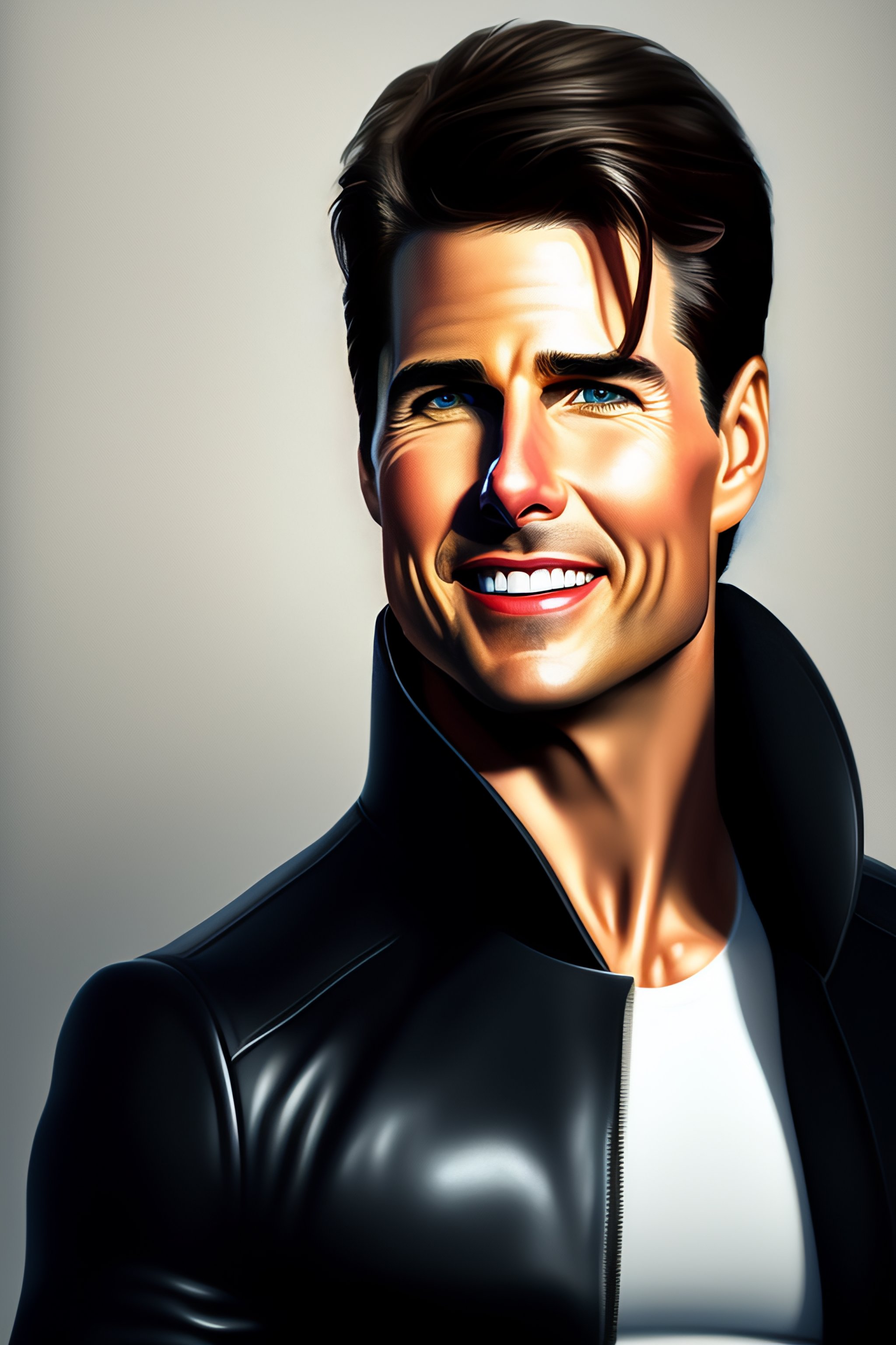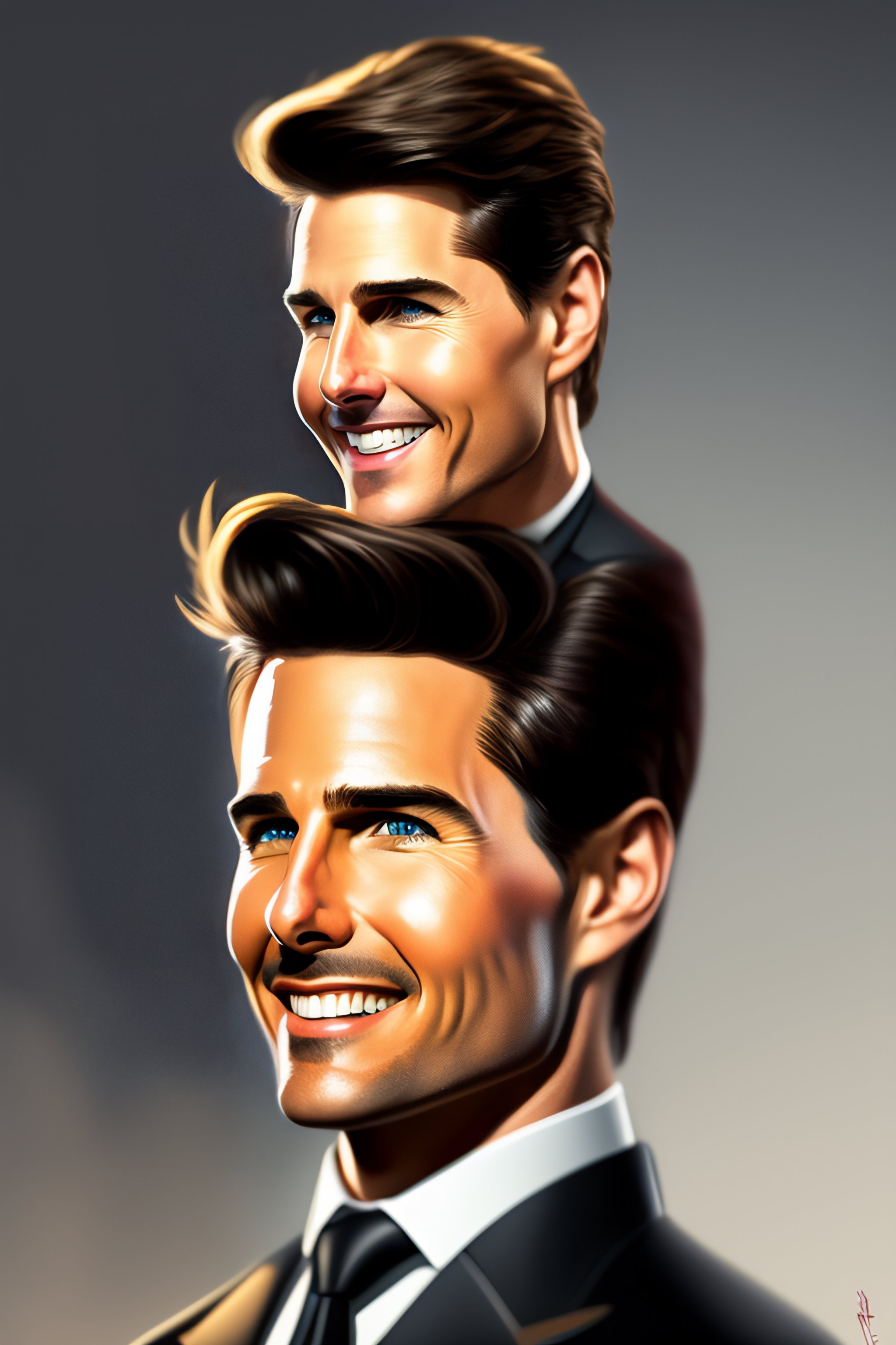 Tom cruise with surprised, elongated!!!!! eyes and an elongated neck!!!!!, caricature!!!, illustrated by tom richmond, trending on artstation, artstation caricature, 4 k, 8 k